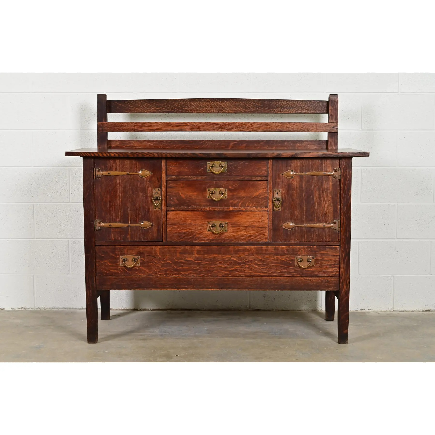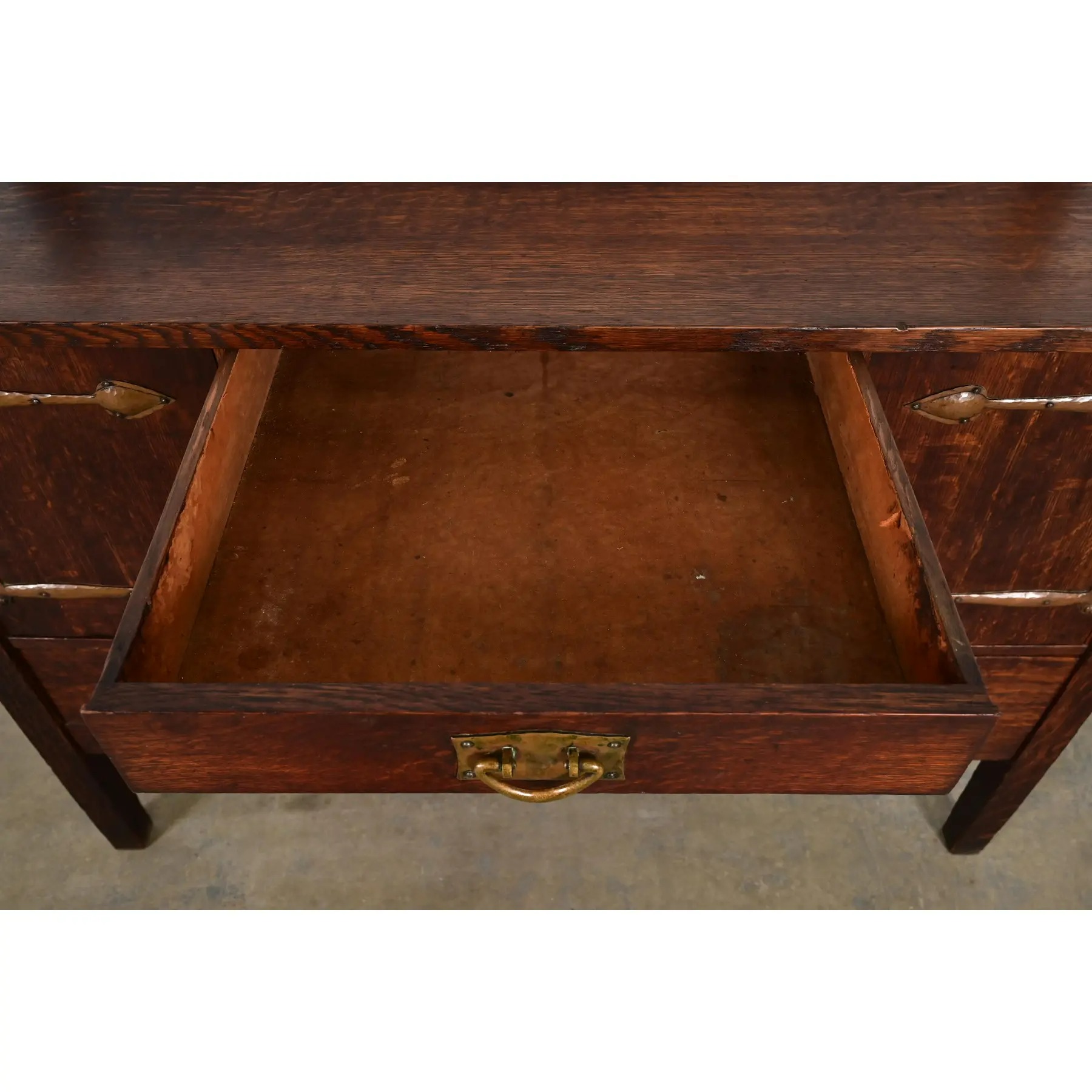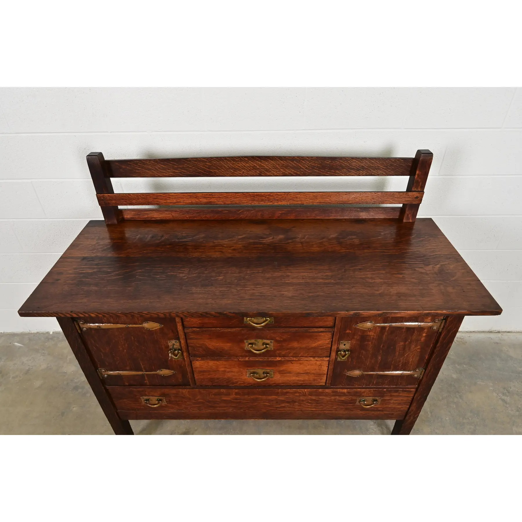 Gustav Stickley Antique Mission Oak Arts & Crafts Strap Hinge Sideboard, Circa 1910