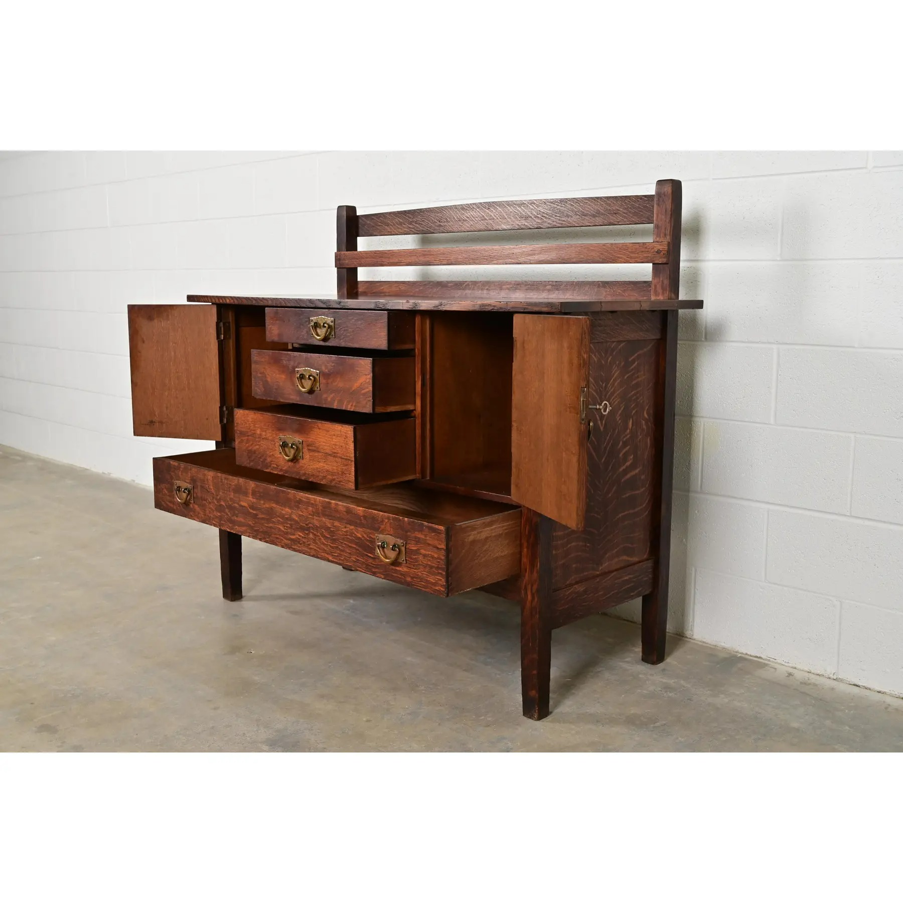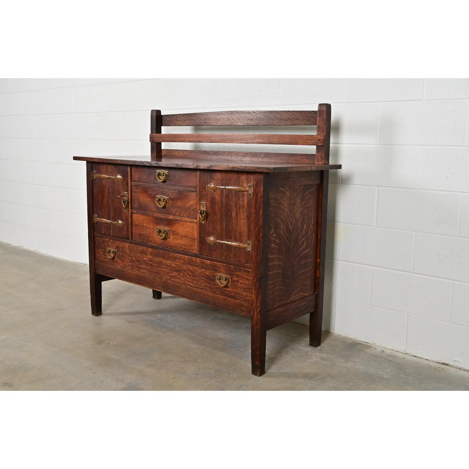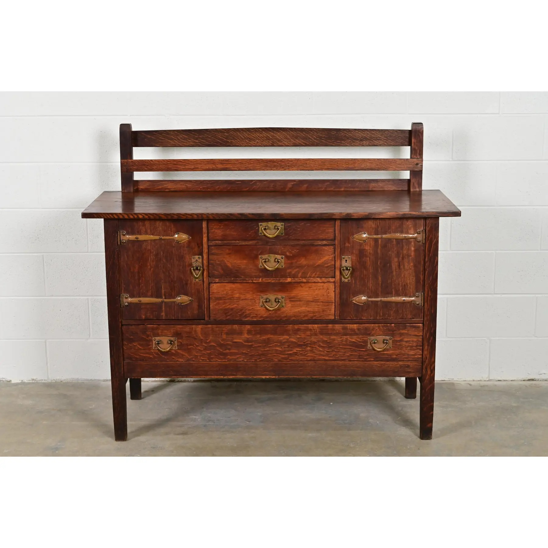 Gustav Stickley Antique Mission Oak Arts & Crafts Strap Hinge Sideboard, Circa 1910