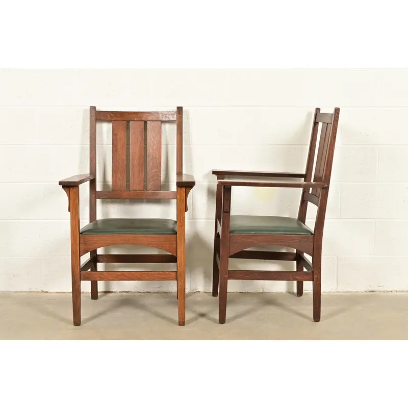 Quarter sawn oak frames, with leather upholstered seats.