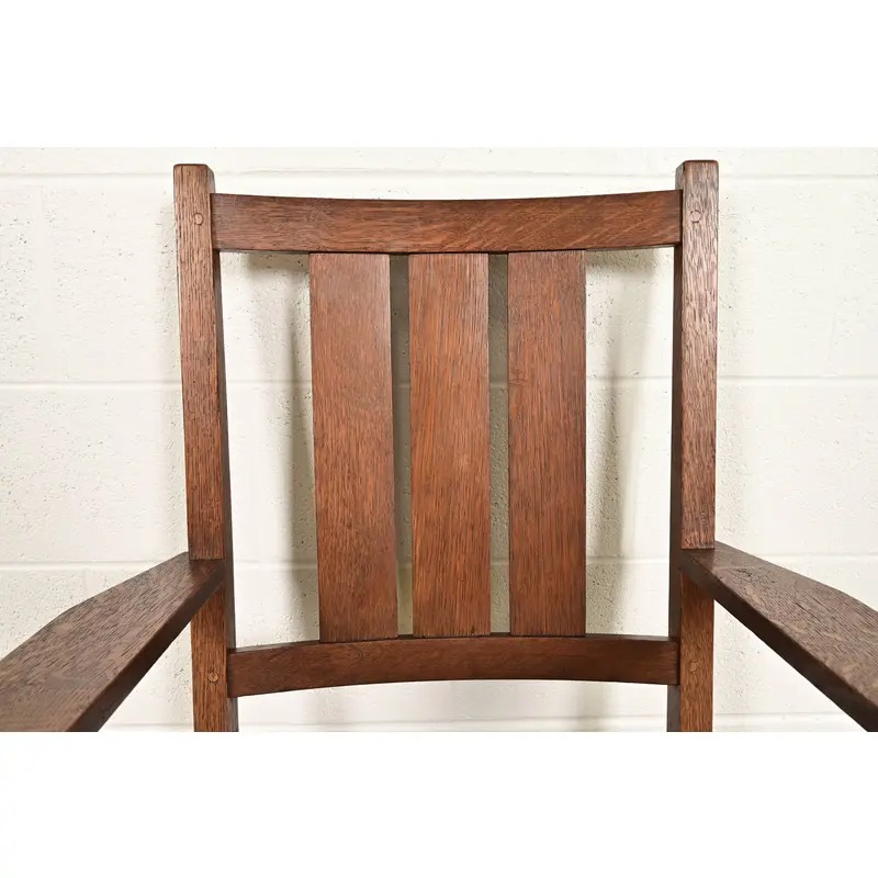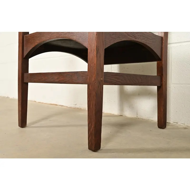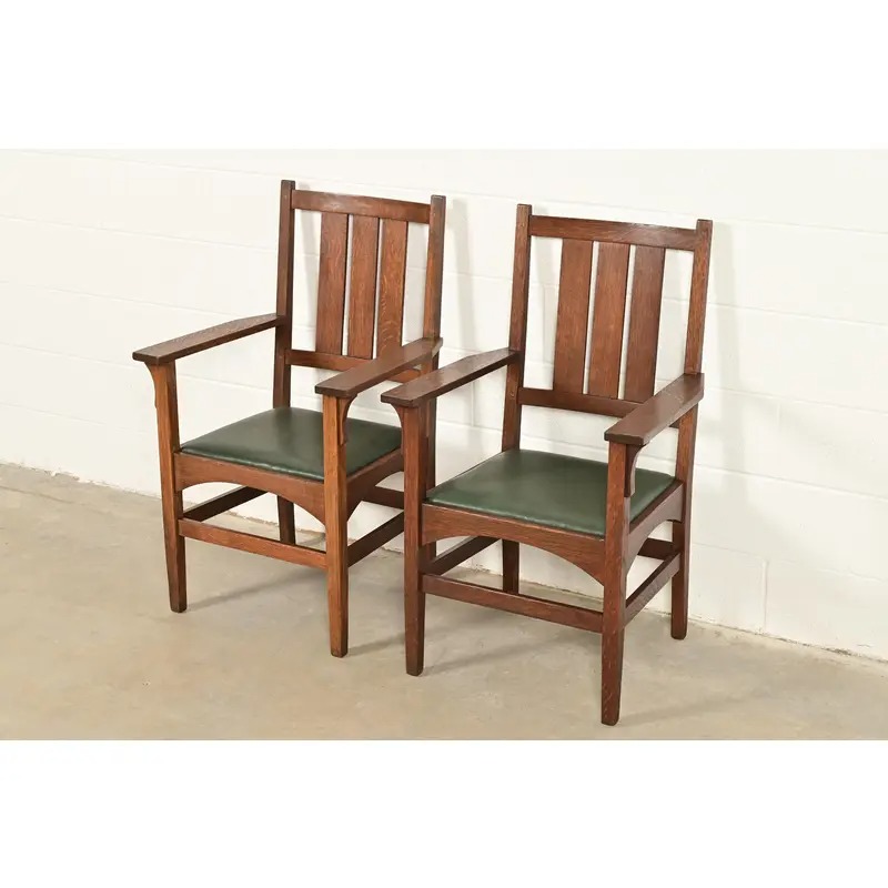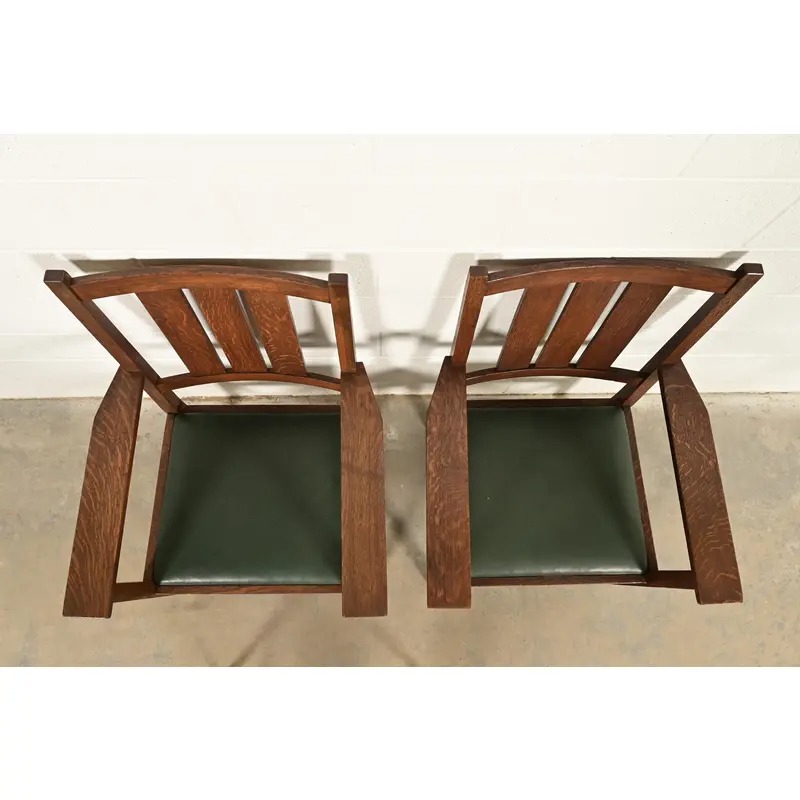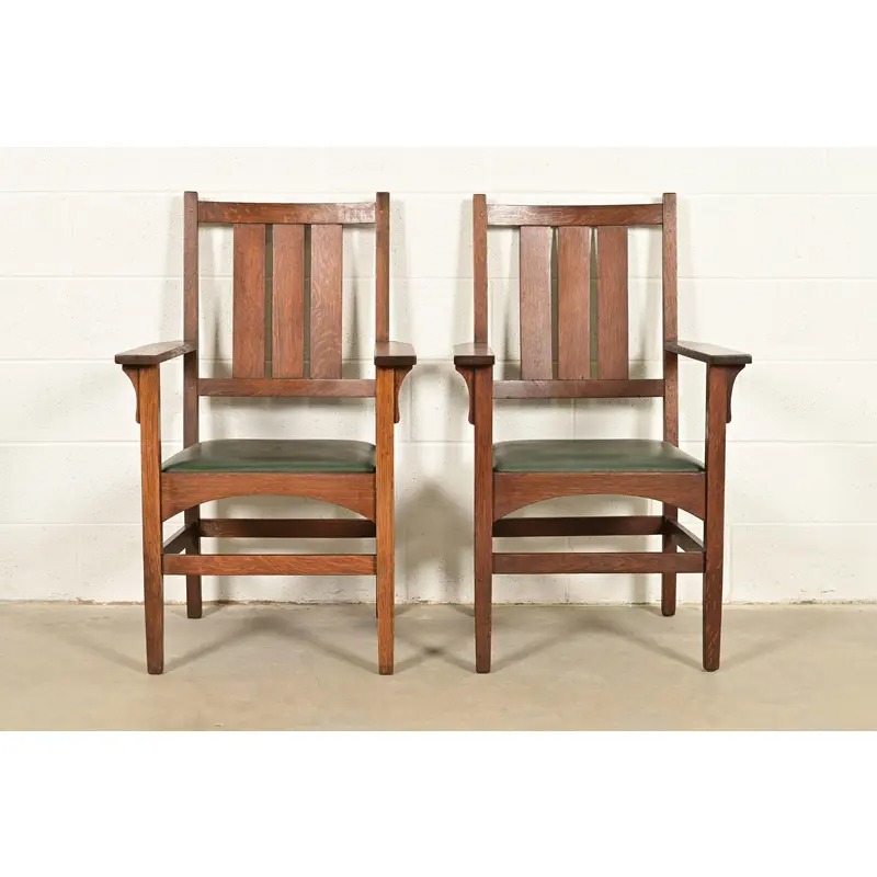 A rare and exceptional pair of antique Mission or Arts & Crafts period armchairs or dining captain chairs
