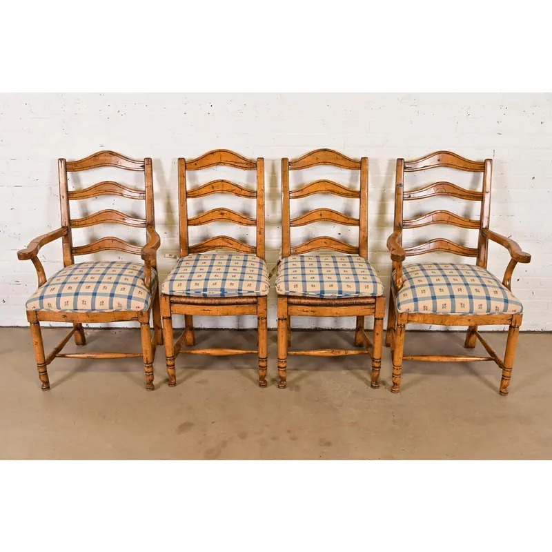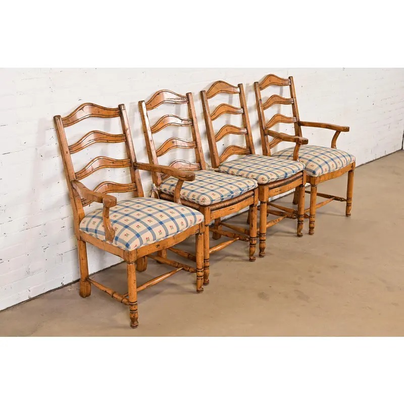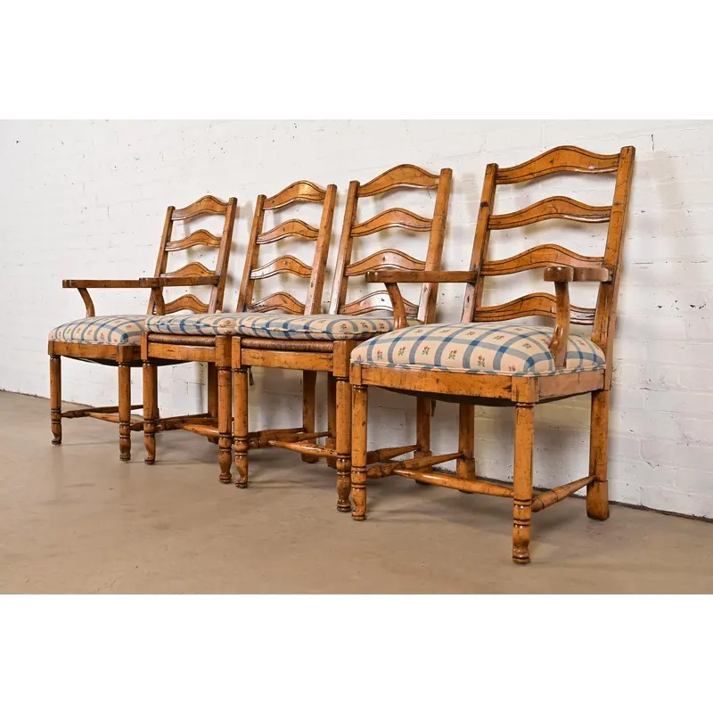 An exceptional set of four English Country or Rustic European style ladder back dining chairs