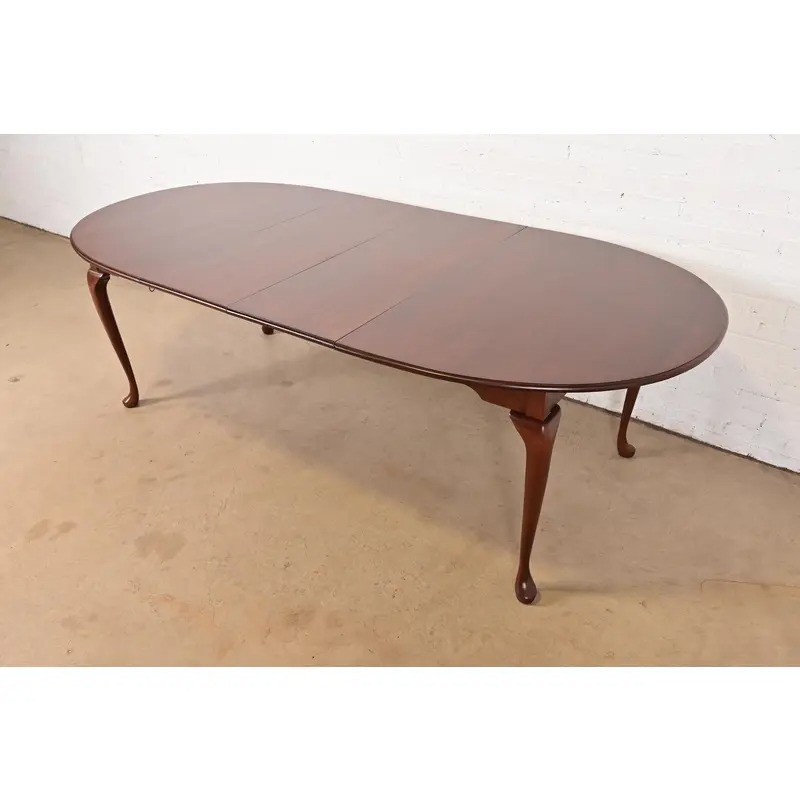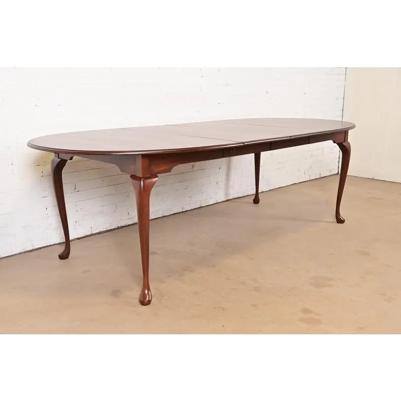 An exceptional Queen Anne or Georgian style solid cherry wood extension dining table