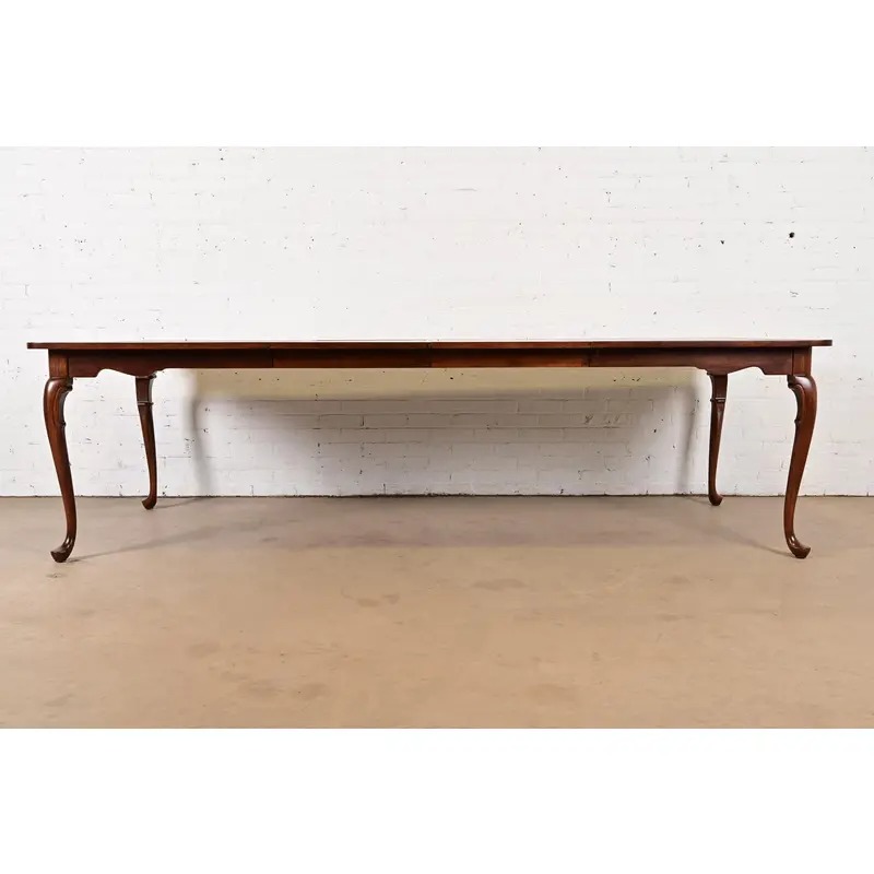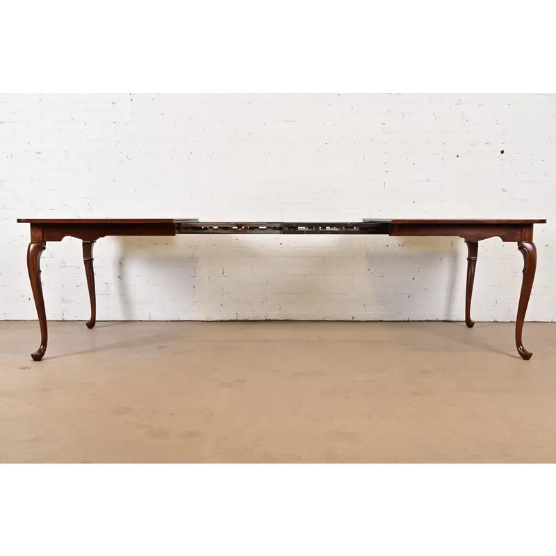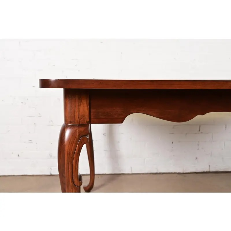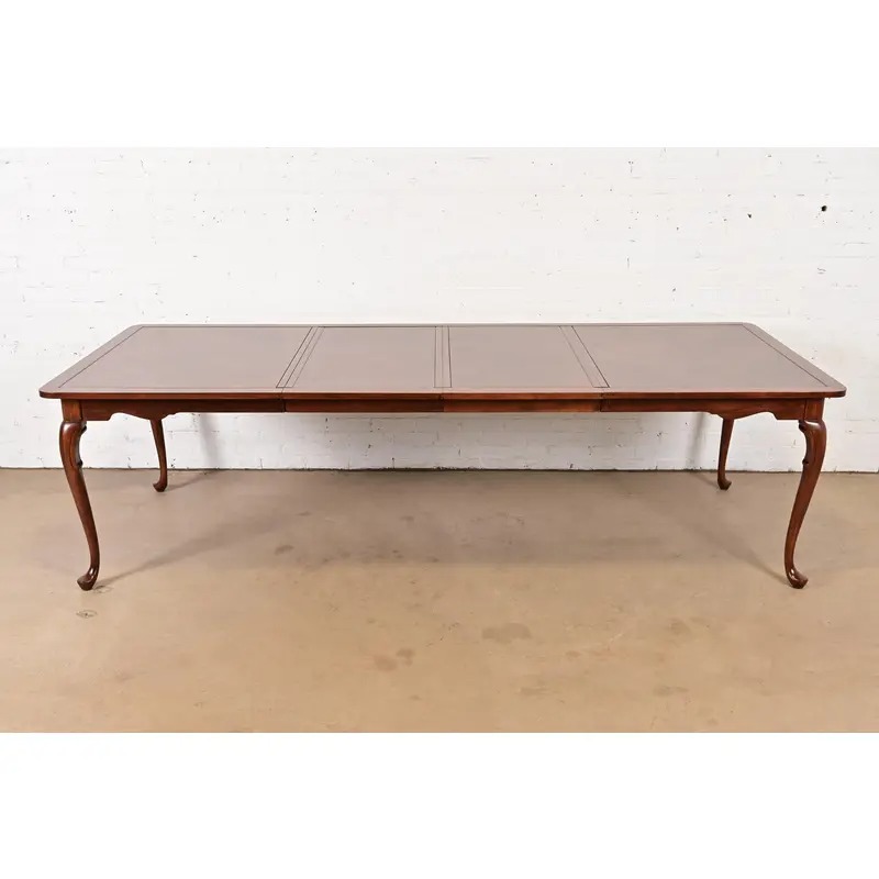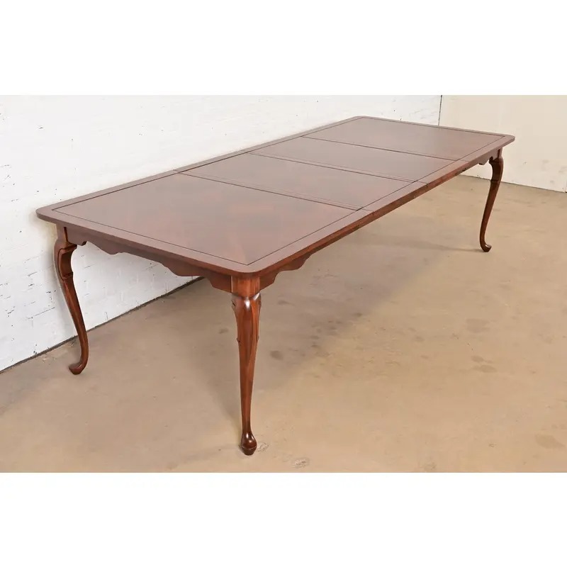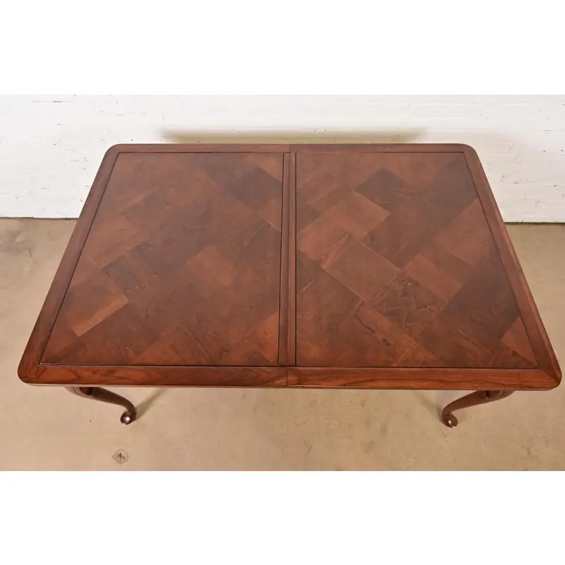 An exceptional Queen Anne or Georgian style solid cherry wood parquet top extension dining table