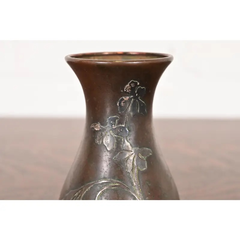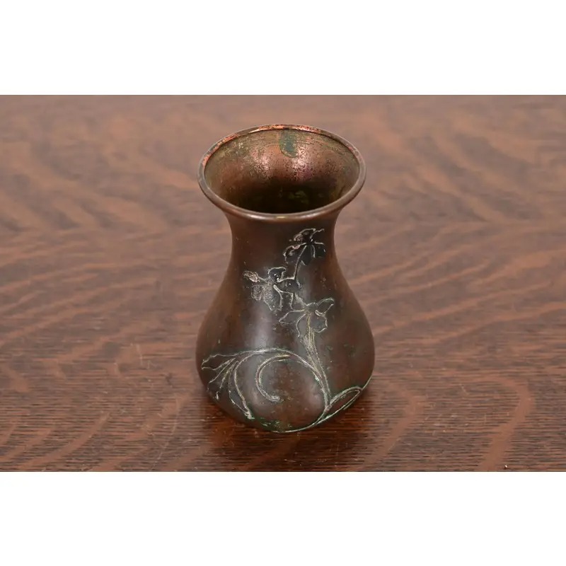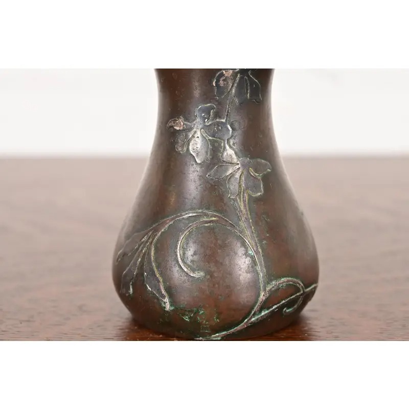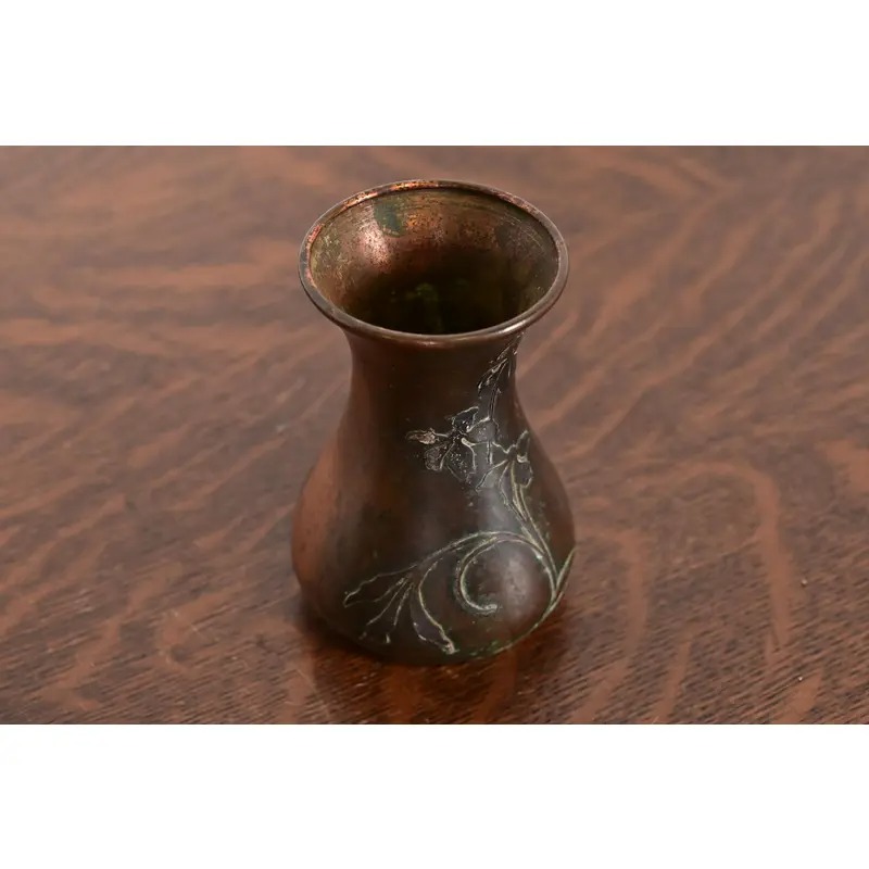 A beautiful Arts & Crafts period sterling silver on bronze petite vase with floral motif