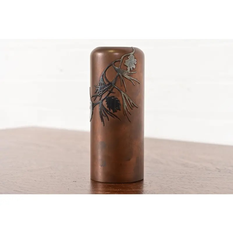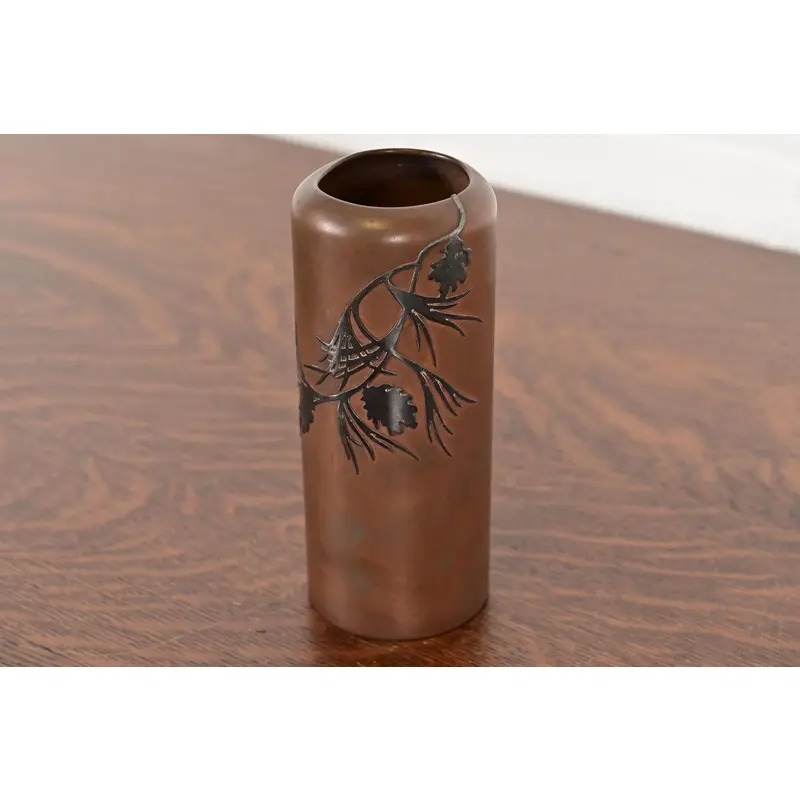 A beautiful Arts & Crafts period sterling silver on bronze cylinder vase with floral motif
