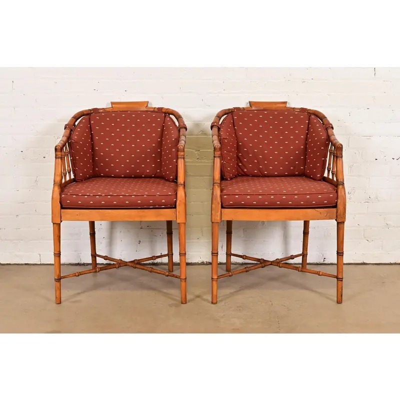 A gorgeous pair of English Regency style armchairs or tub chairs