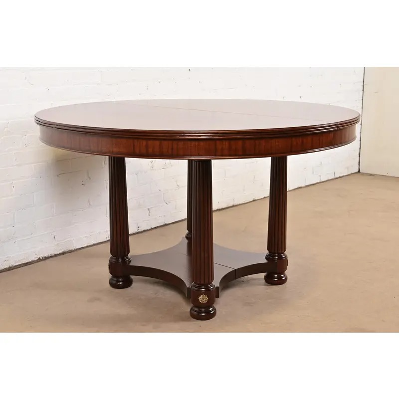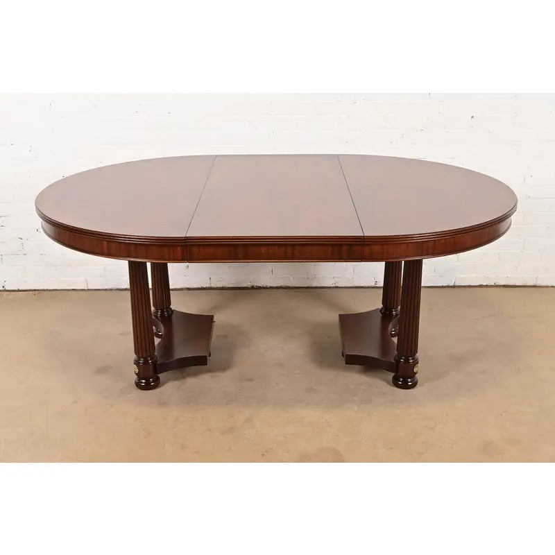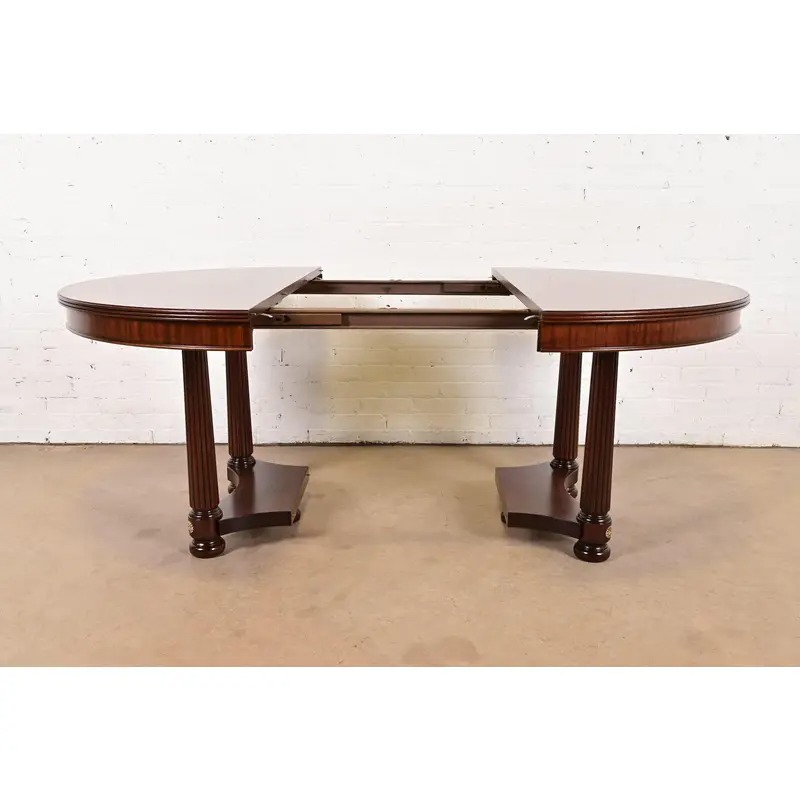 A gorgeous Biedermeier, Neoclassical, Empire, or Regency style split pedestal extension dining table