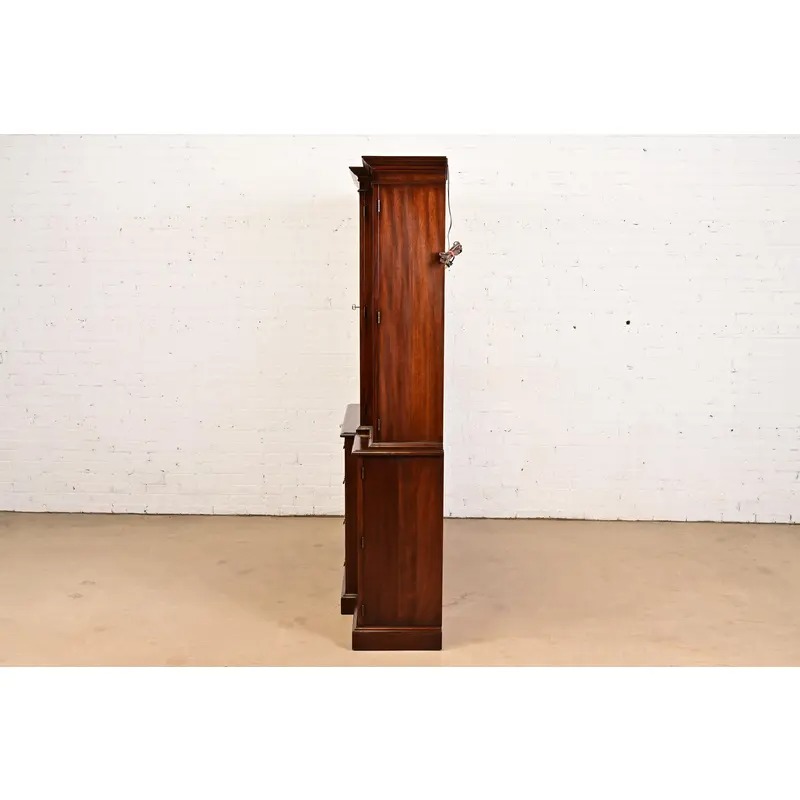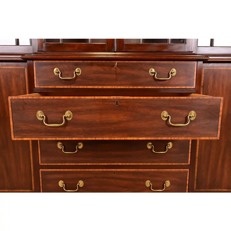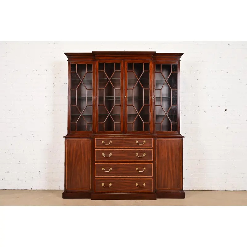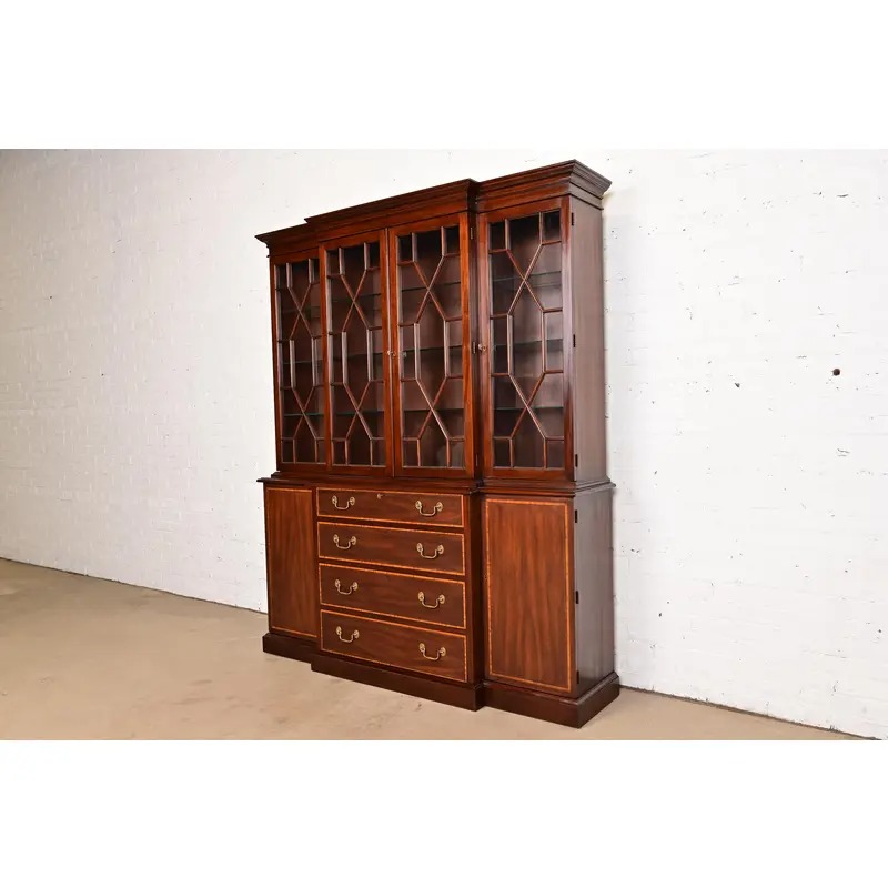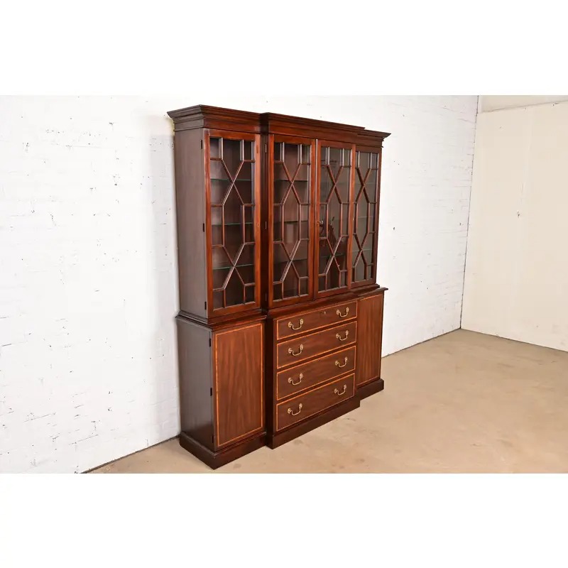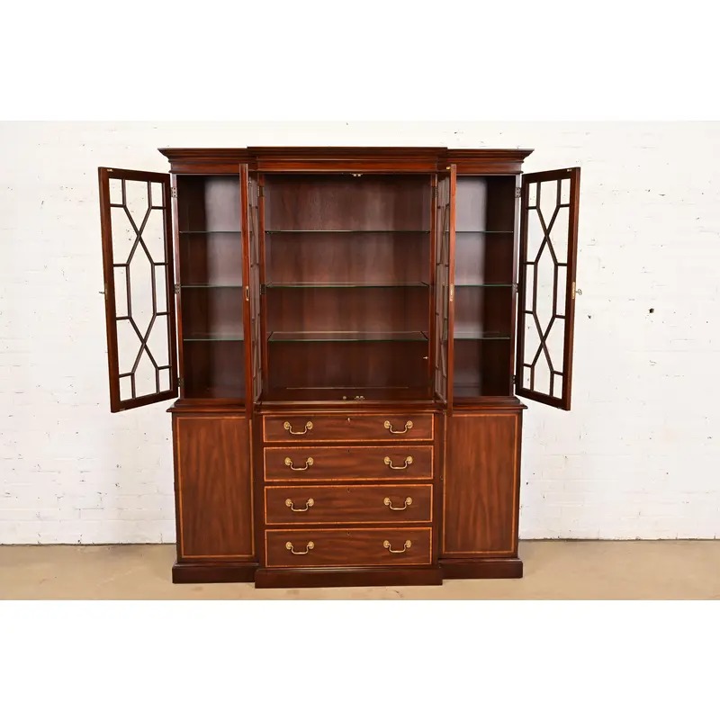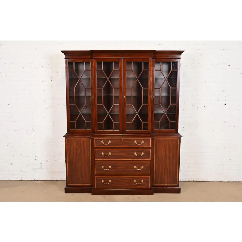 A gorgeous Georgian or Chippendale style lighted breakfront bookcase or dining cabinet