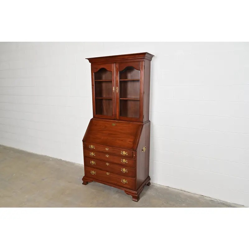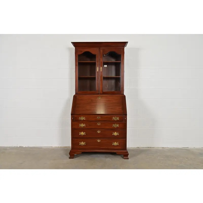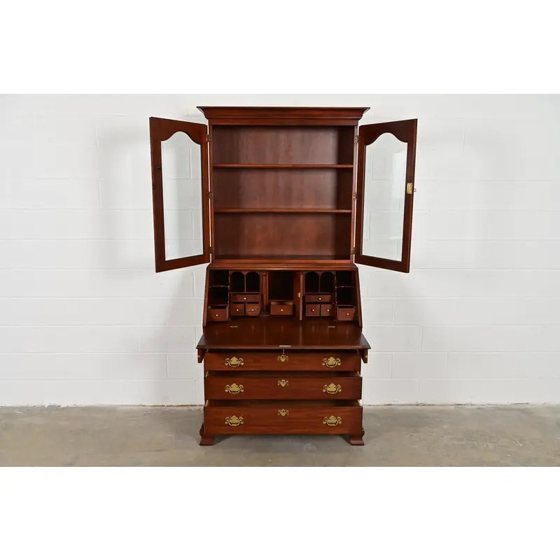 A beautiful Georgian or Chippendale style bureau with drop front secretary desk and bookcase hutch top