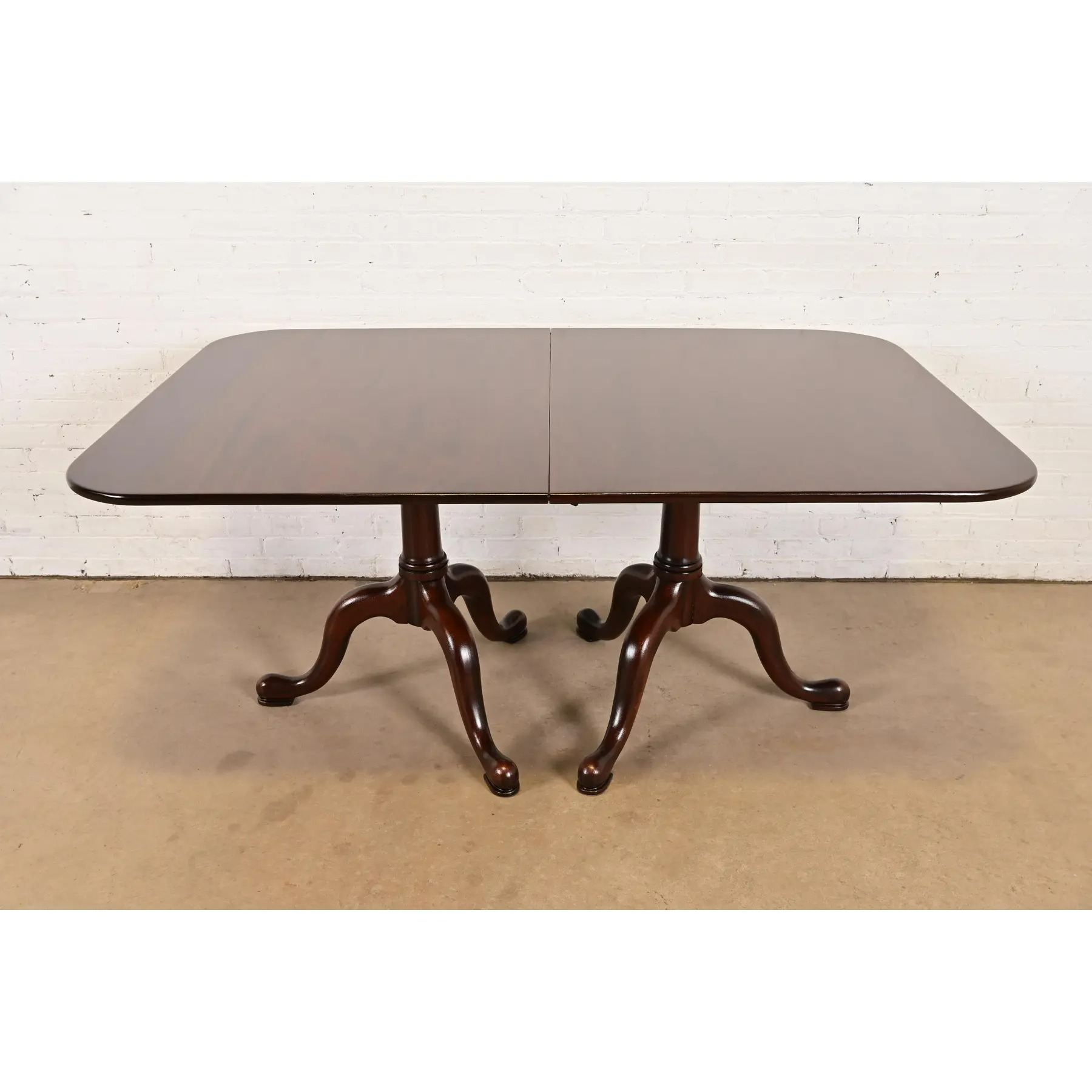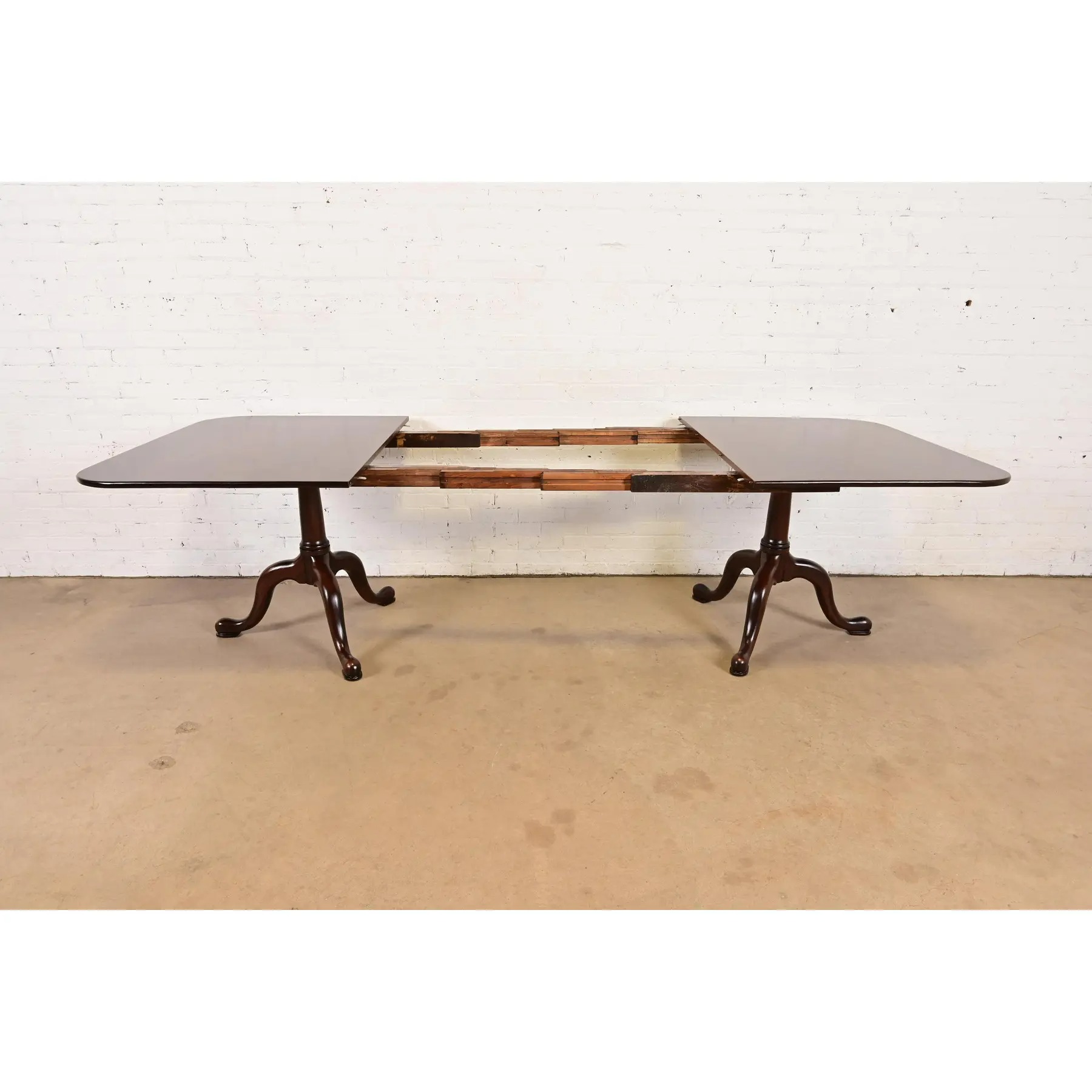 An exceptional Georgian or Regency style double pedestal extension dining table