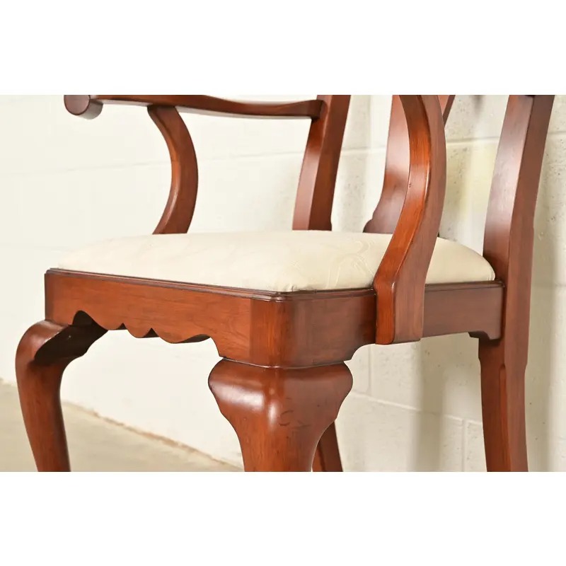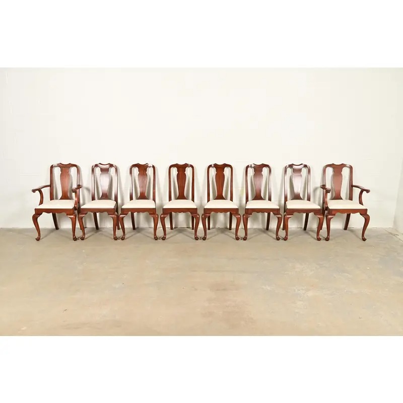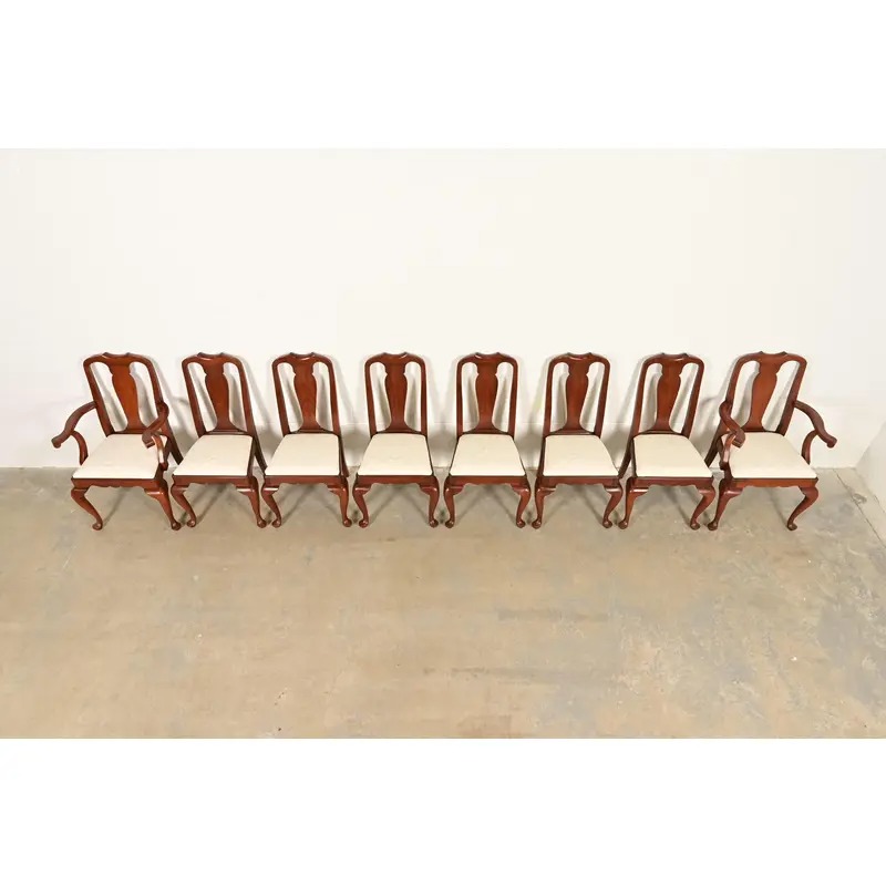 Henkel Harris Queen Anne Solid Cherry Wood Dining Chairs, Set of Eight