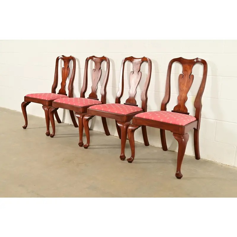 An outstanding set of four Queen Anne or Georgian style dining chairs
