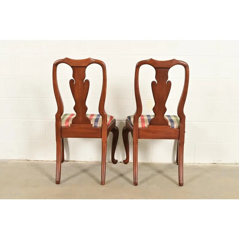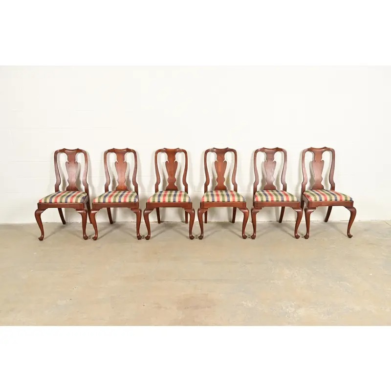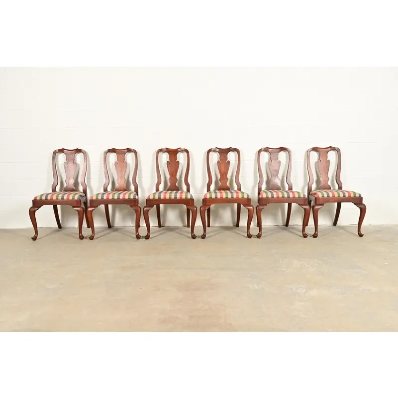 Henkel Harris Queen Anne Solid Cherry Wood Dining Chairs, Set of Six