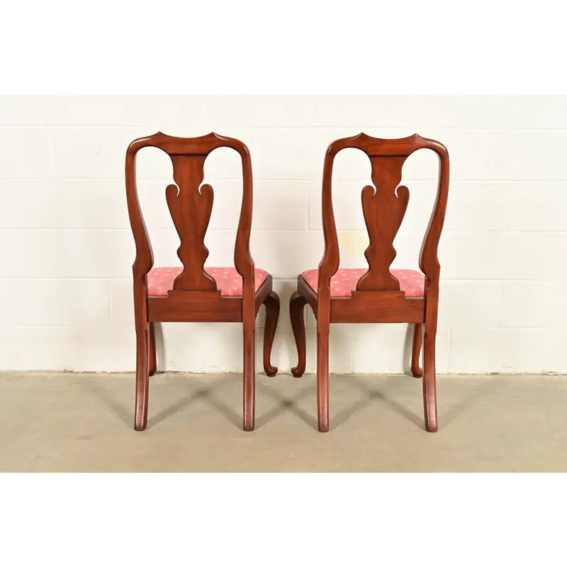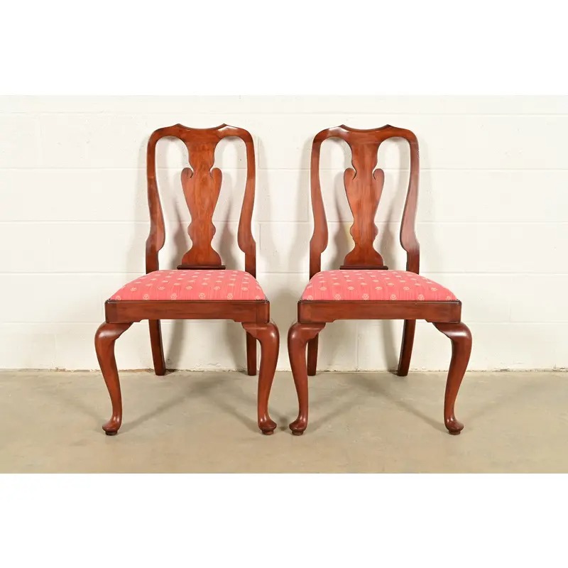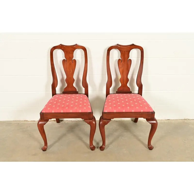 Henkel Harris Queen Anne Solid Cherry Wood Side Chairs or Dining Chairs, Pair