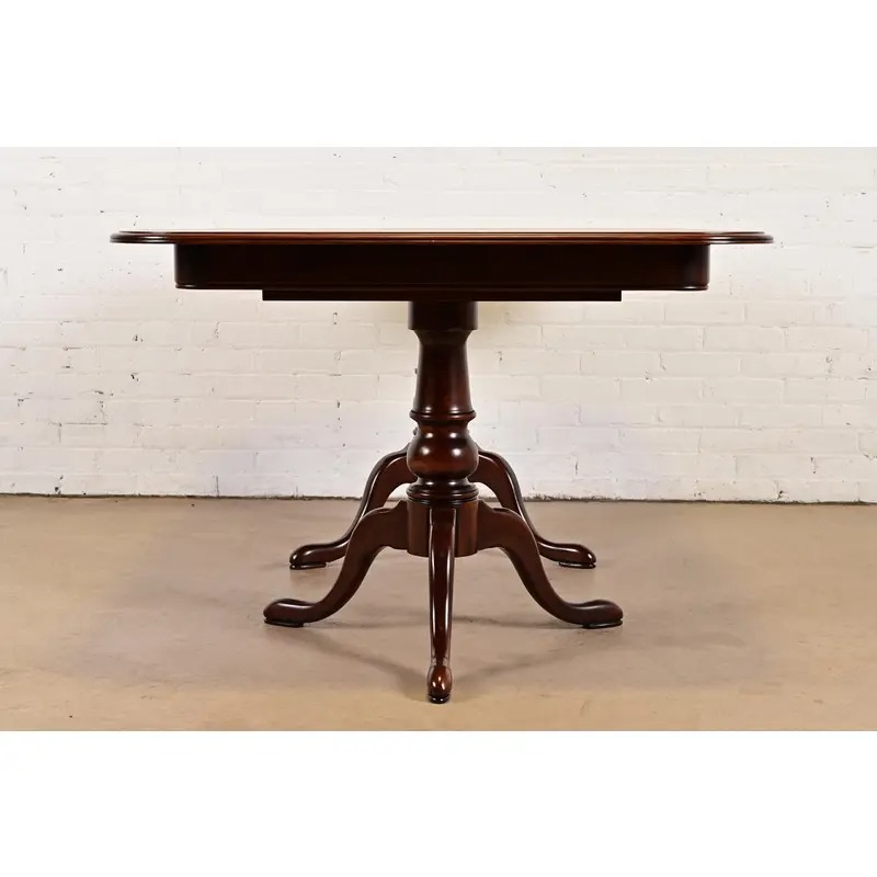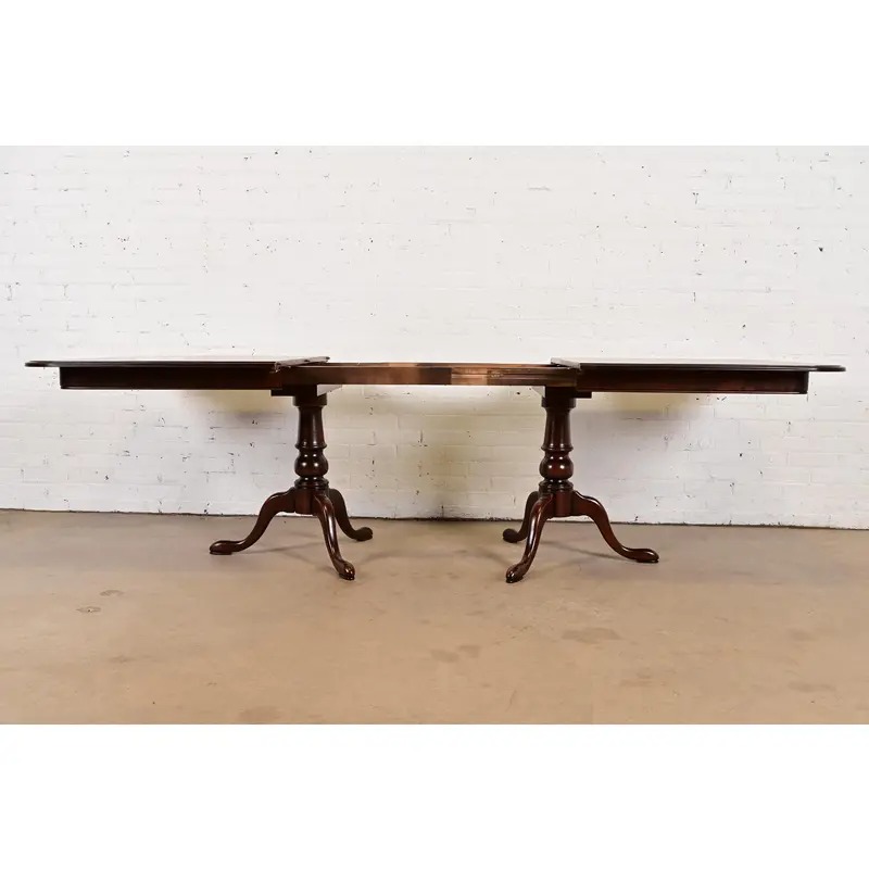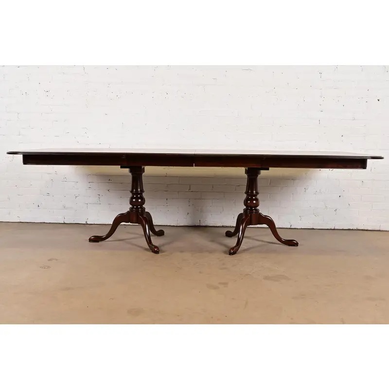 Henkel Harris Style Georgian Solid Cherry Wood Double Pedestal Extension Dining Table, Newly Refinished