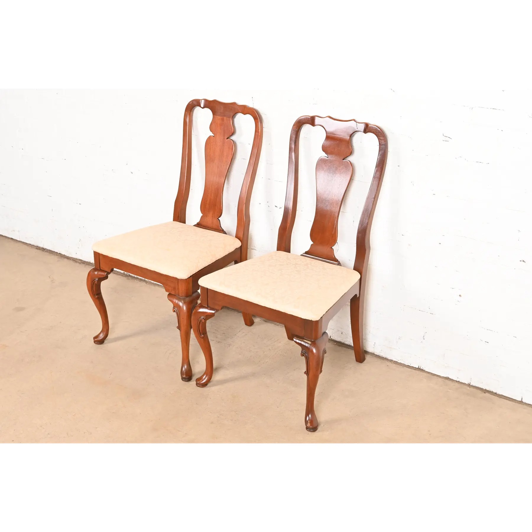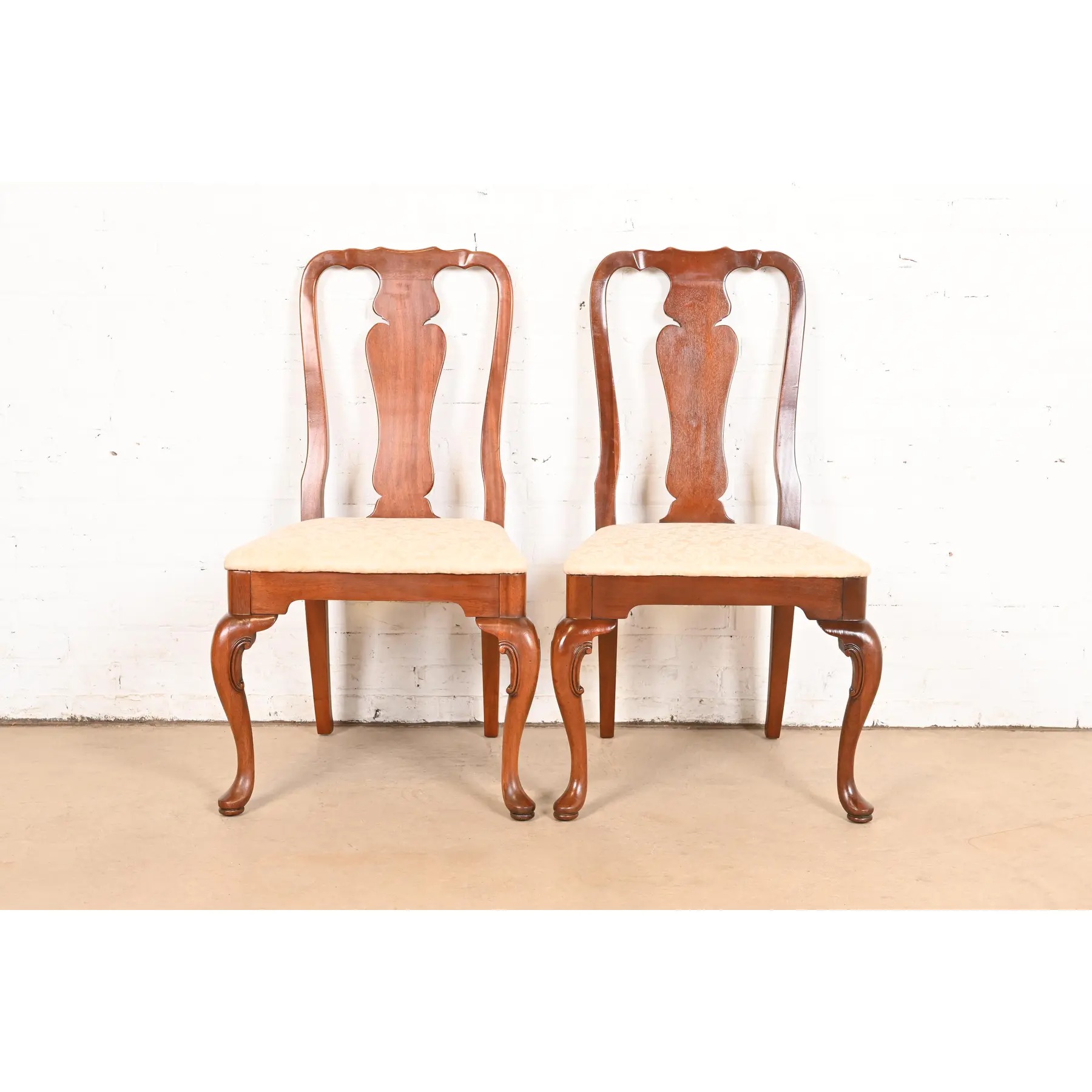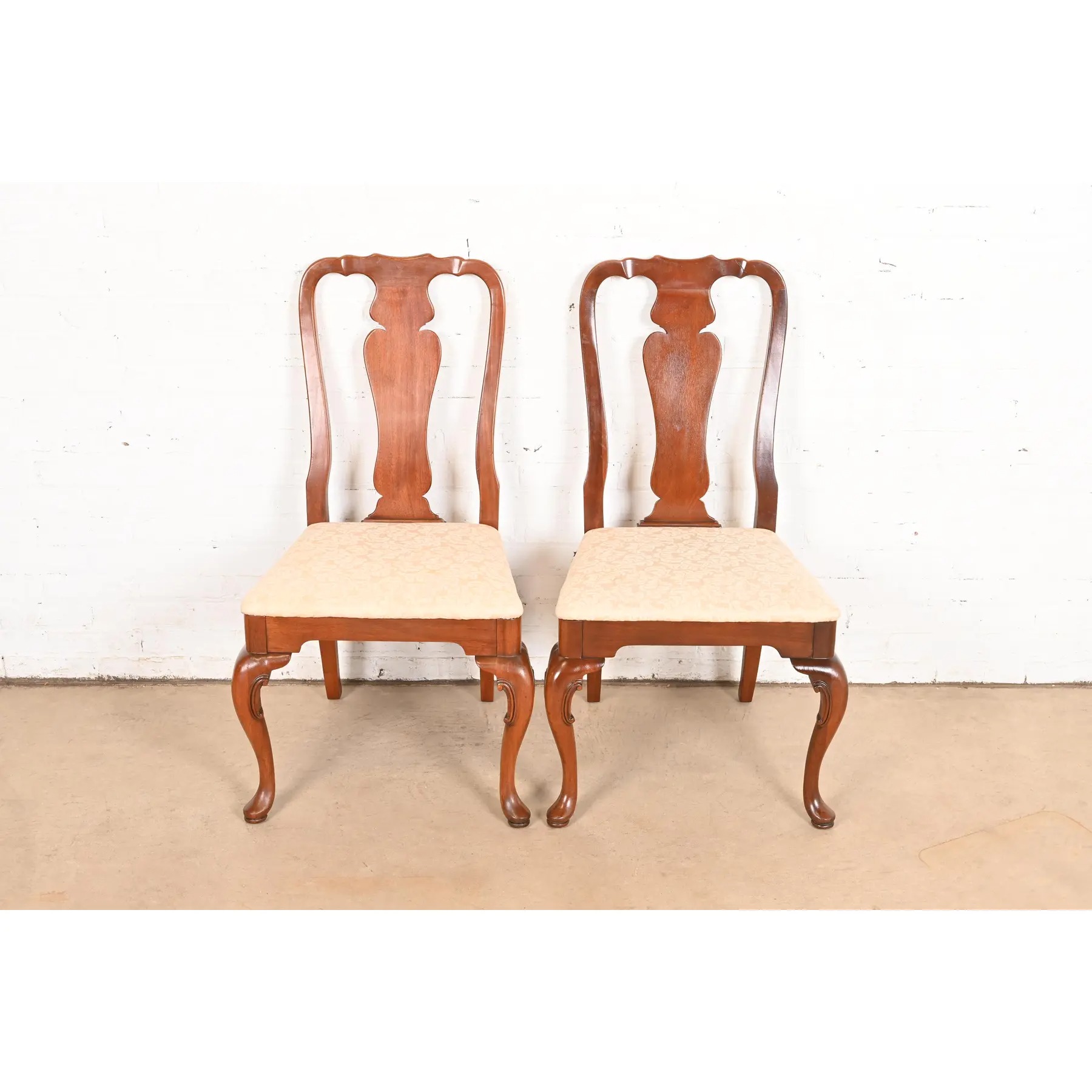 Henkel Harris Style Queen Anne Solid Mahogany Side Chairs or Dining Chairs, Pair