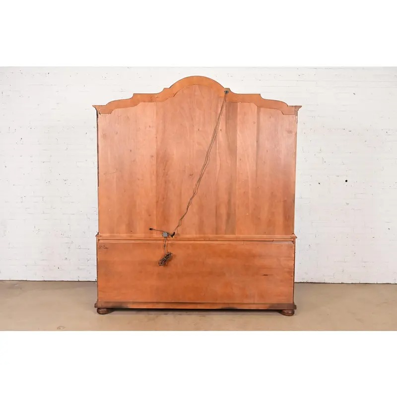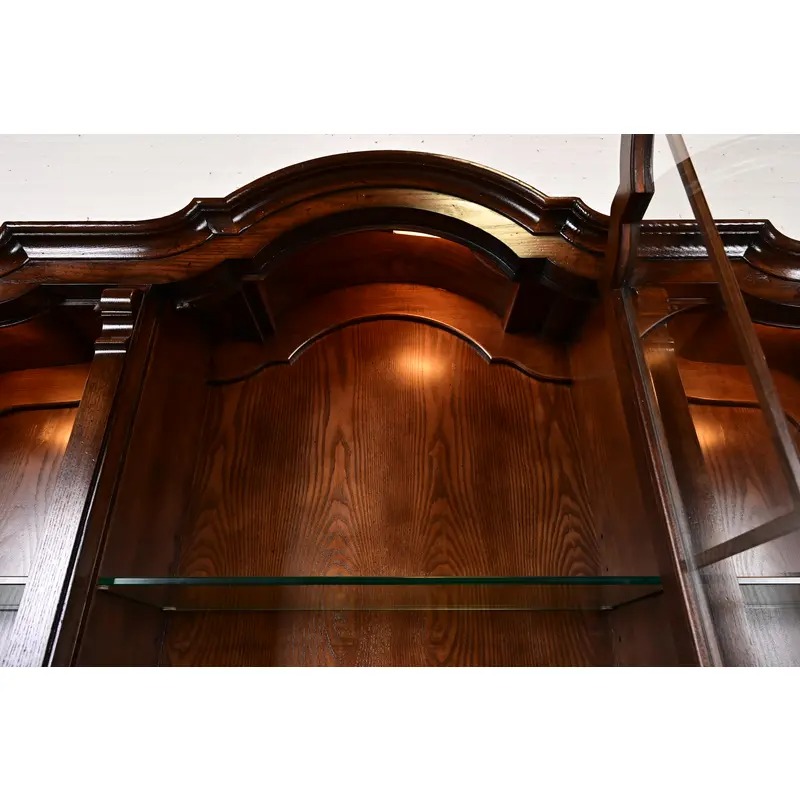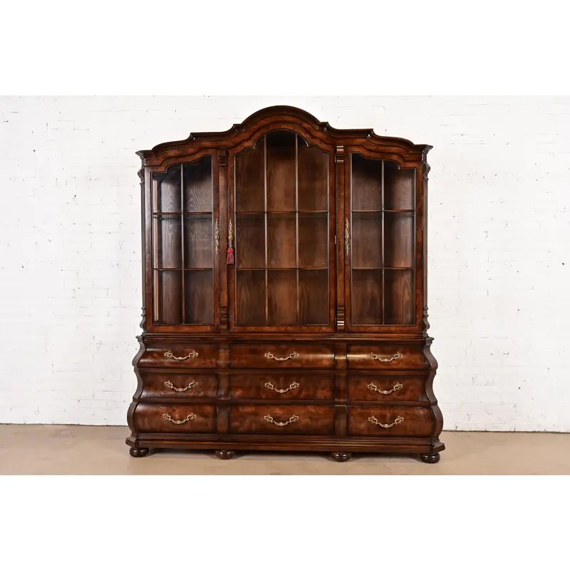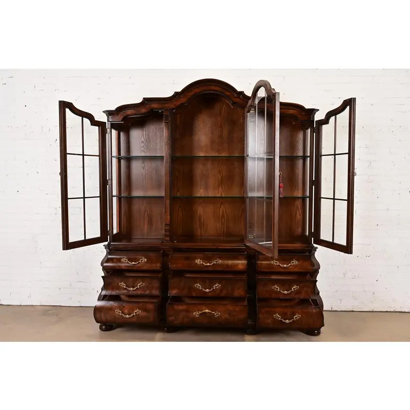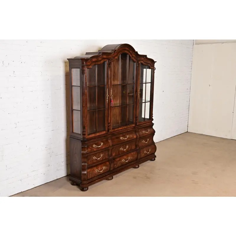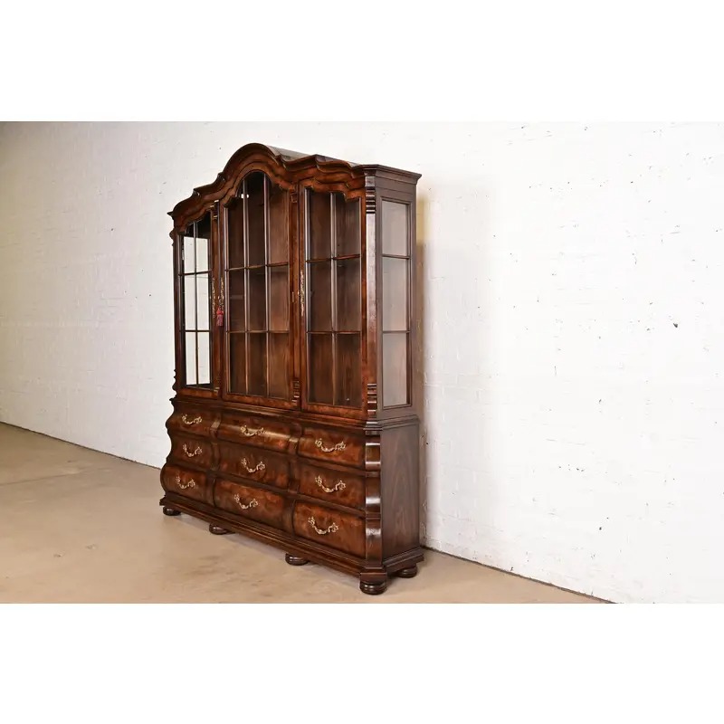 A gorgeous Dutch Louis XV style lighted breakfront bookcase or dining cabinet
