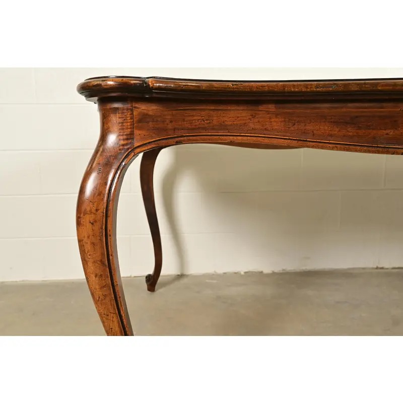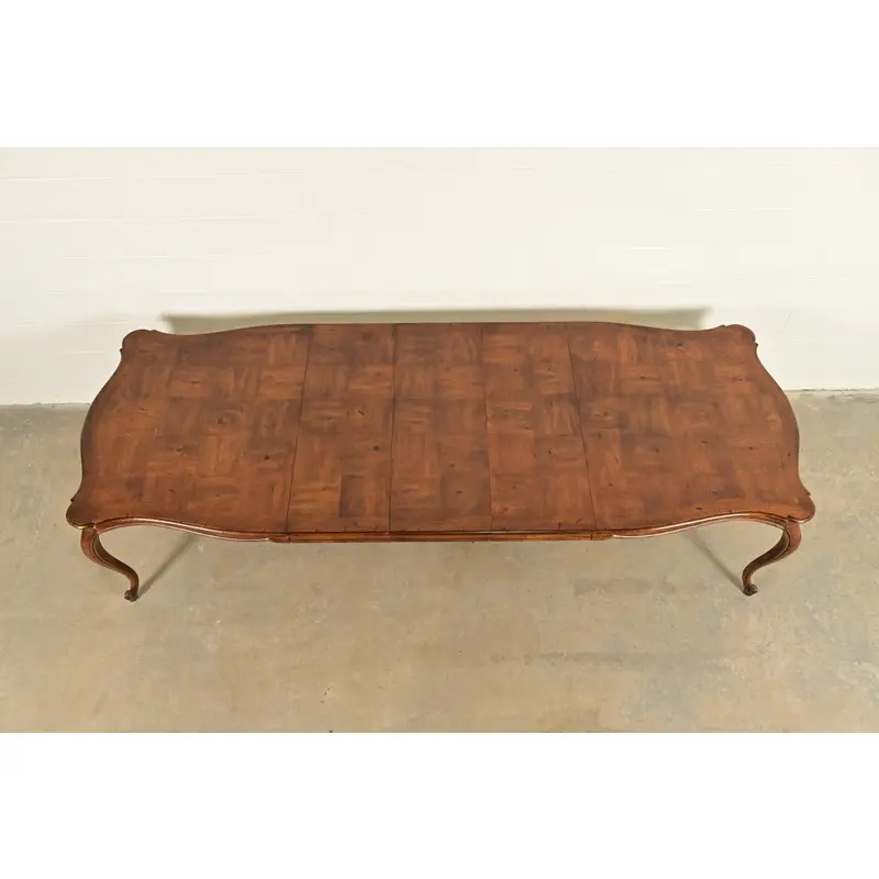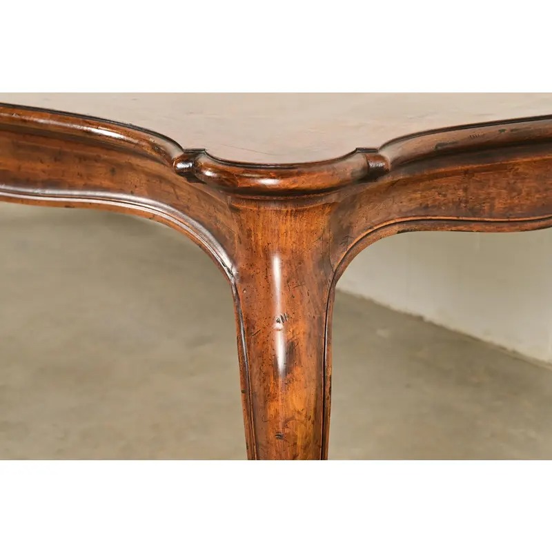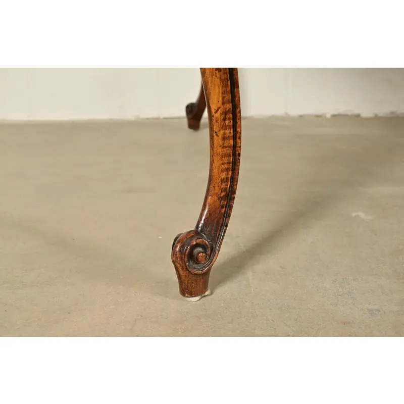 Walnut, with gorgeous inlaid patchwork parquet top, and carved cabriole legs.