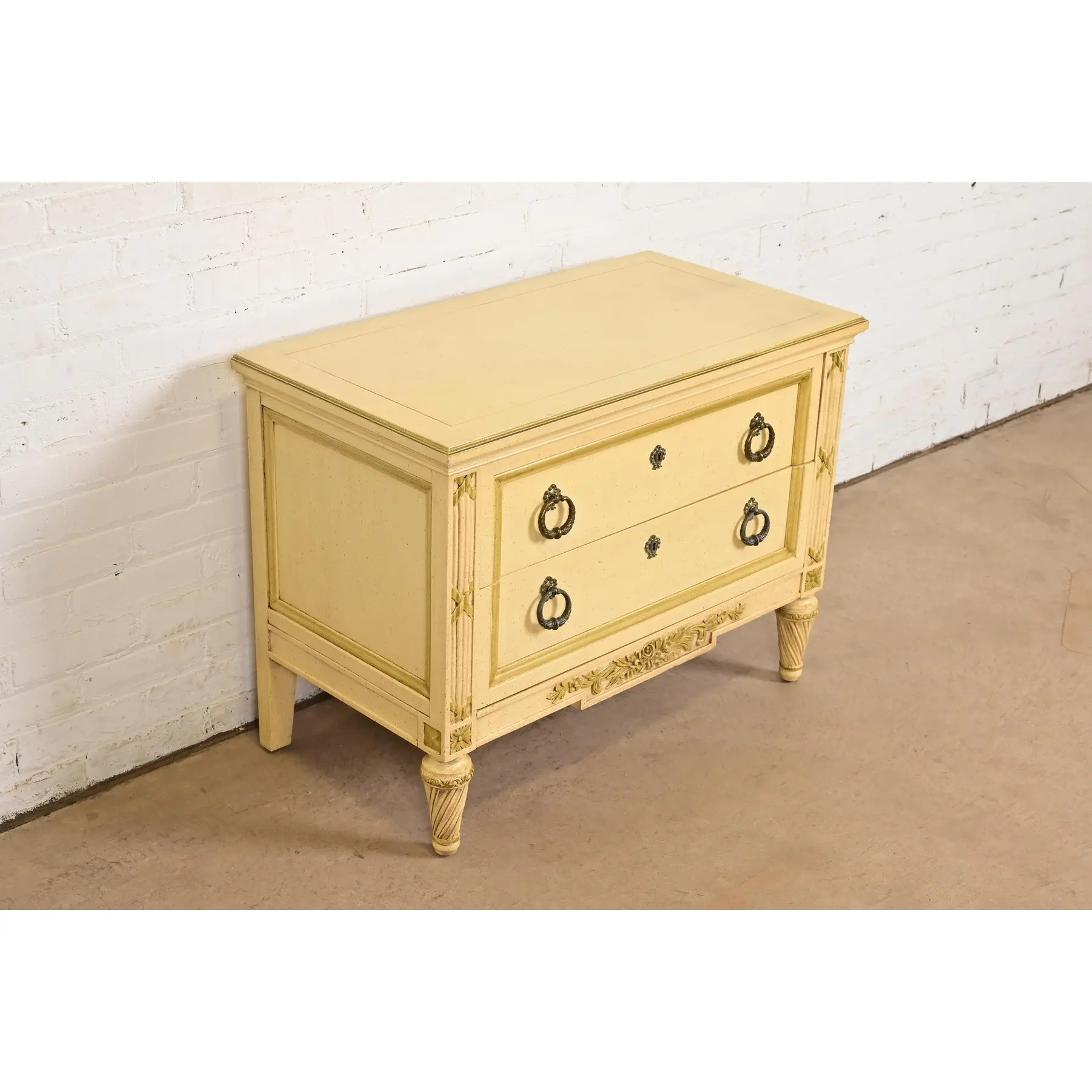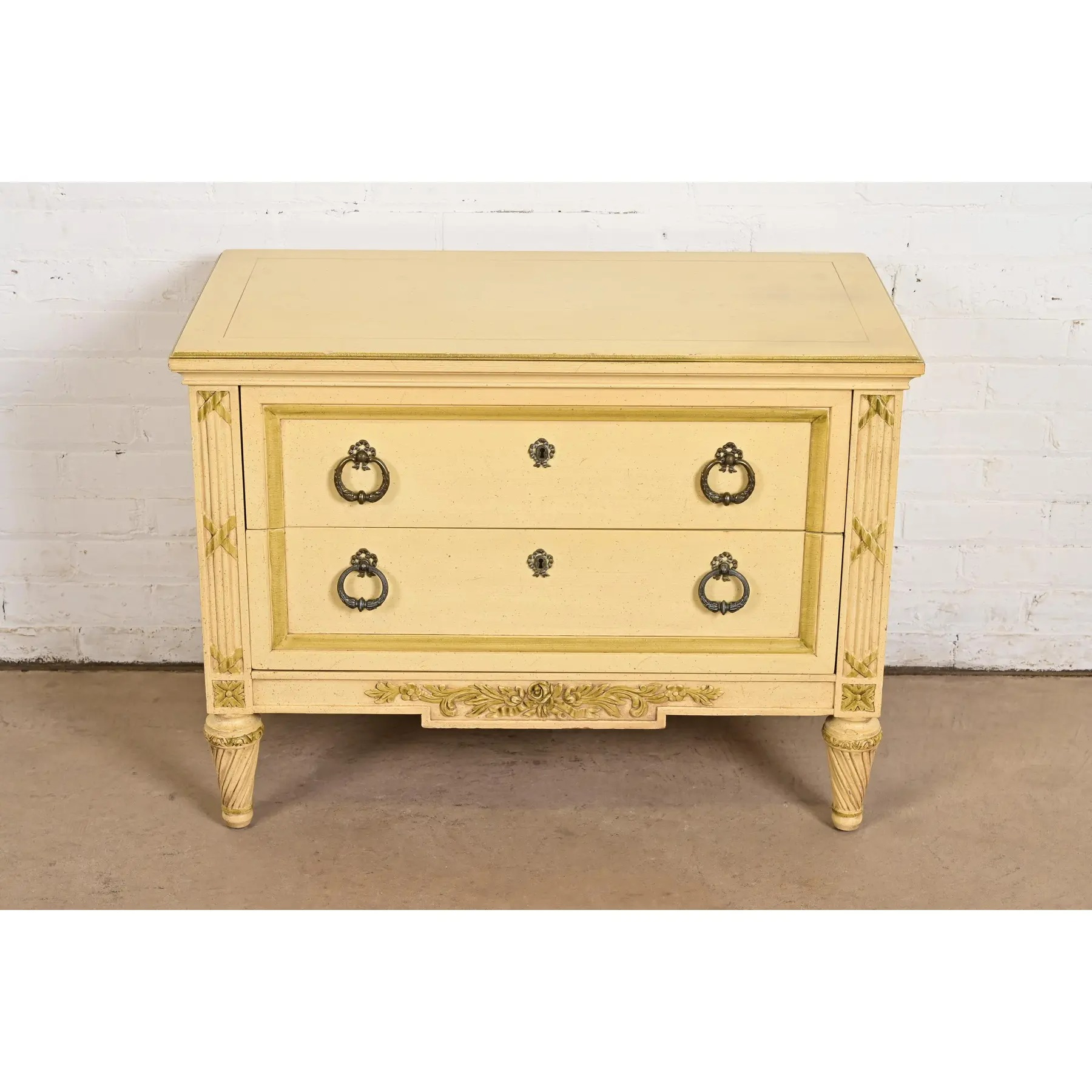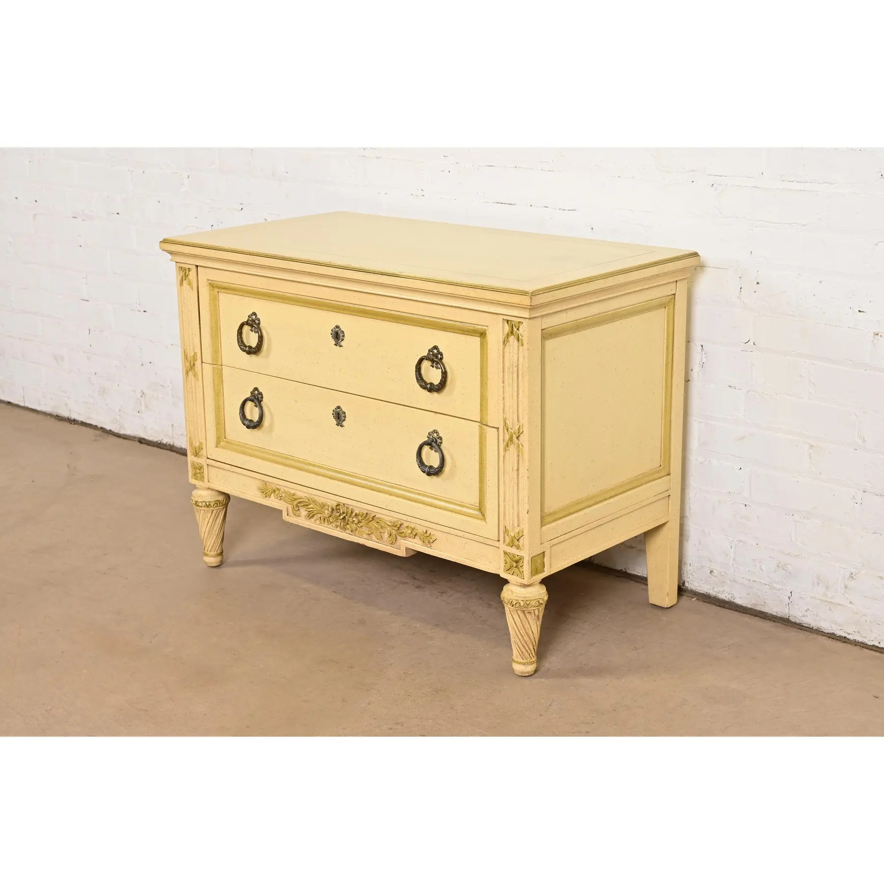 Henredon French Regency Louis XVI Cream Lacquered Bedside Chest, Circa 1960s