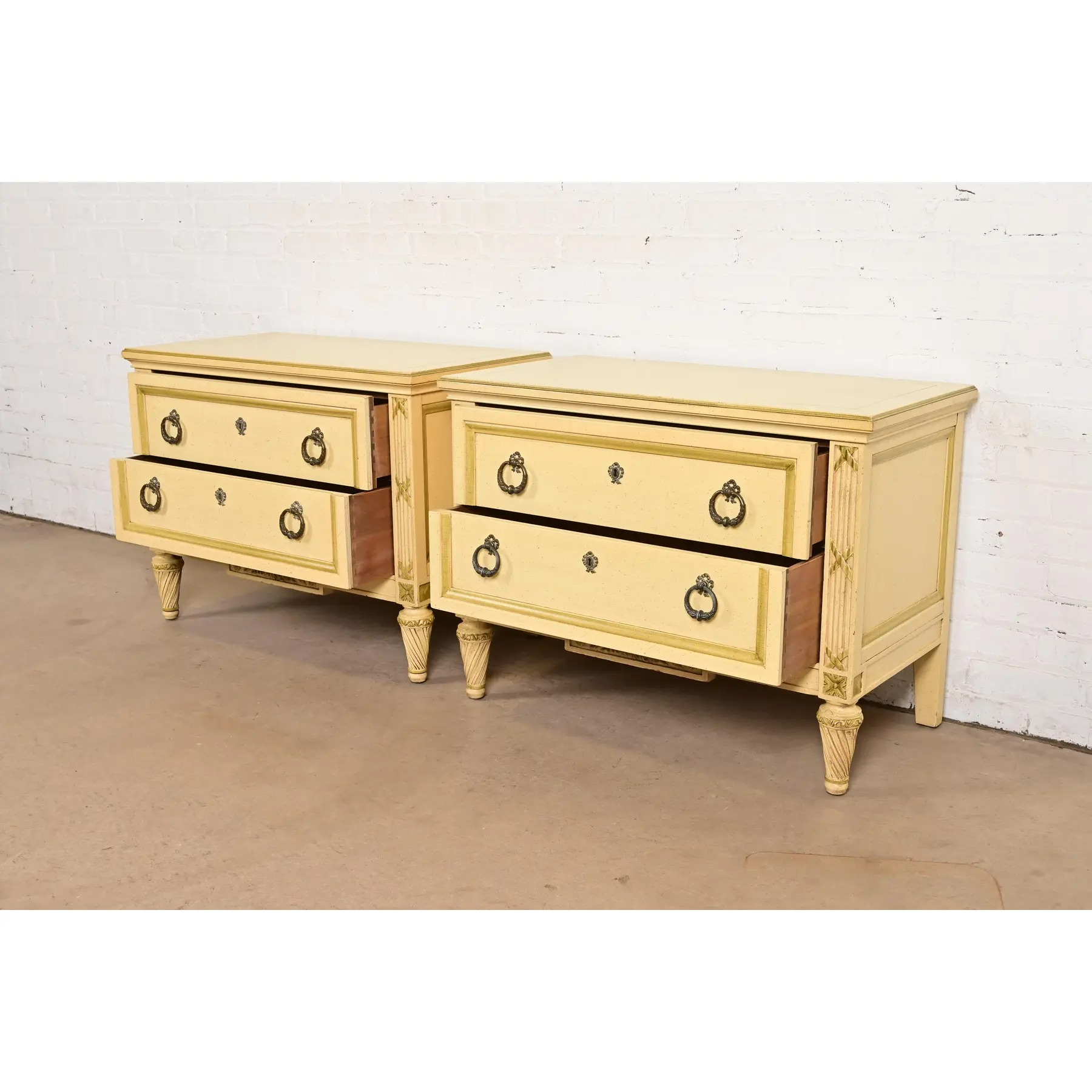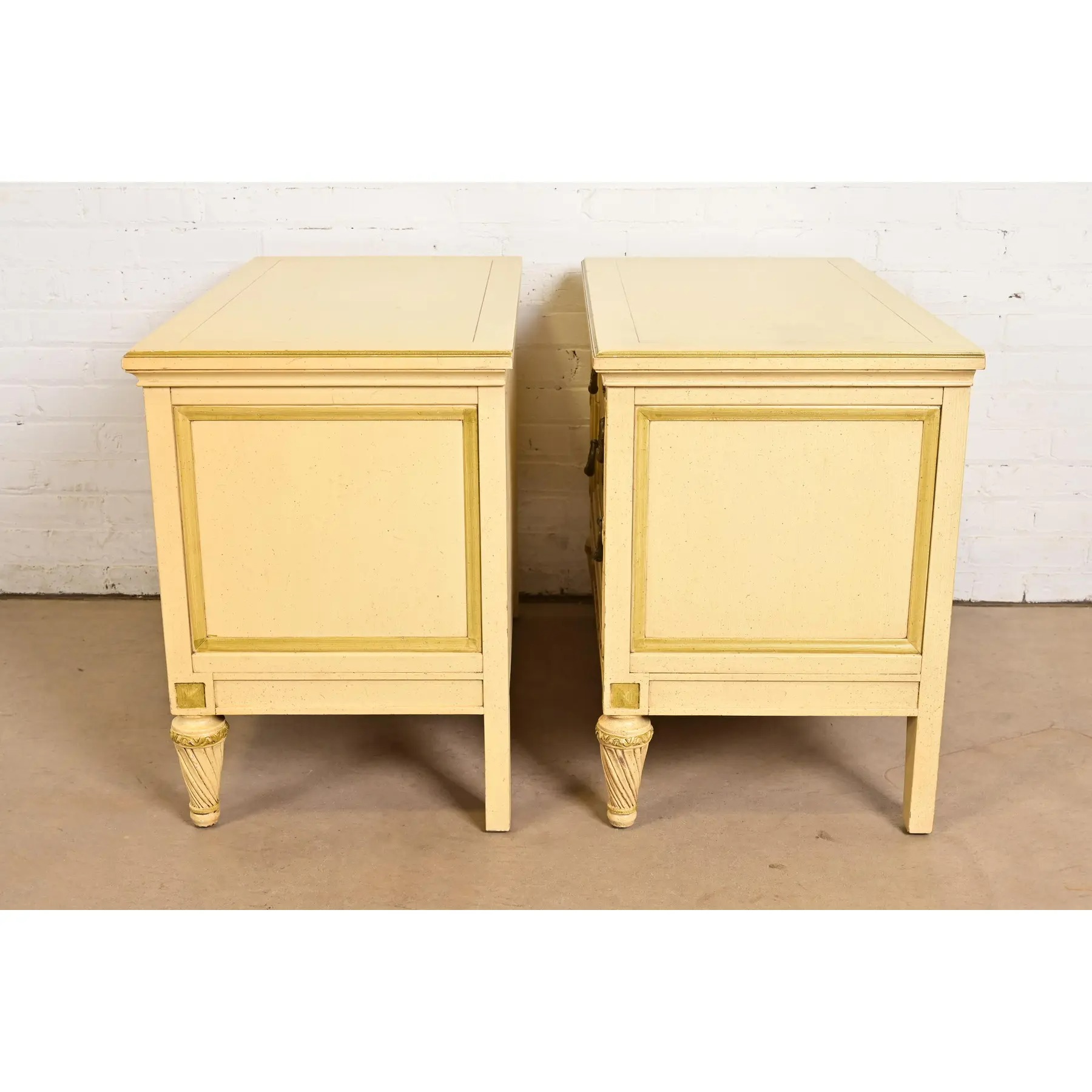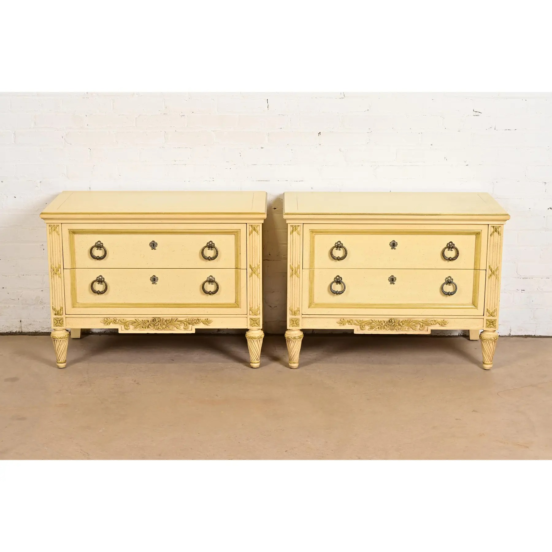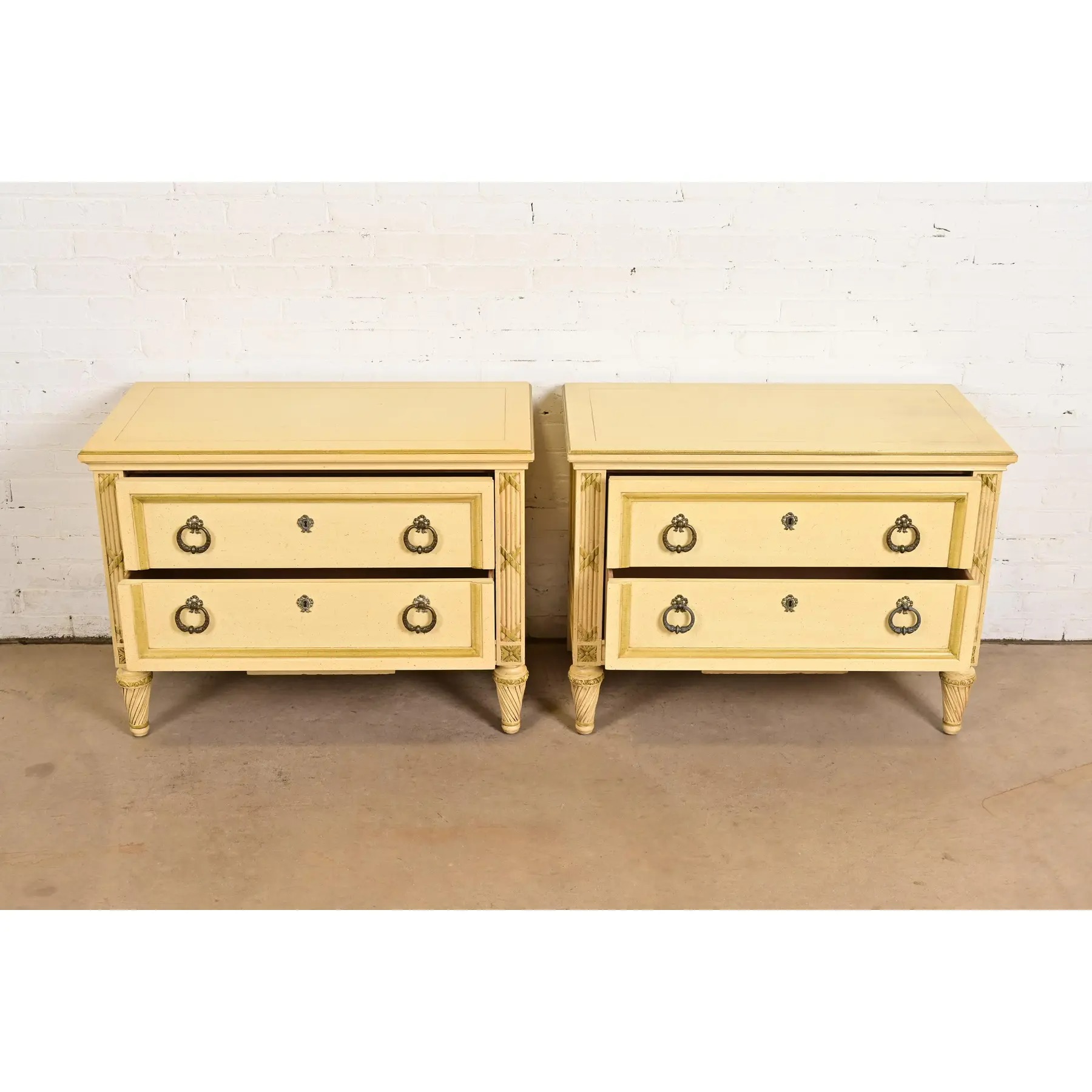 Henredon French Regency Louis XVI Cream Lacquered Bedside Chests, Circa 1960s