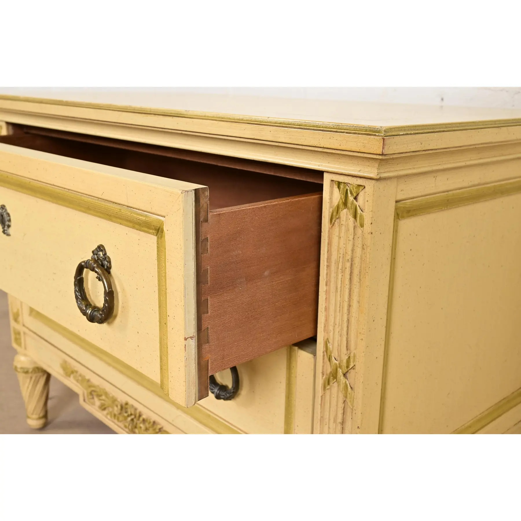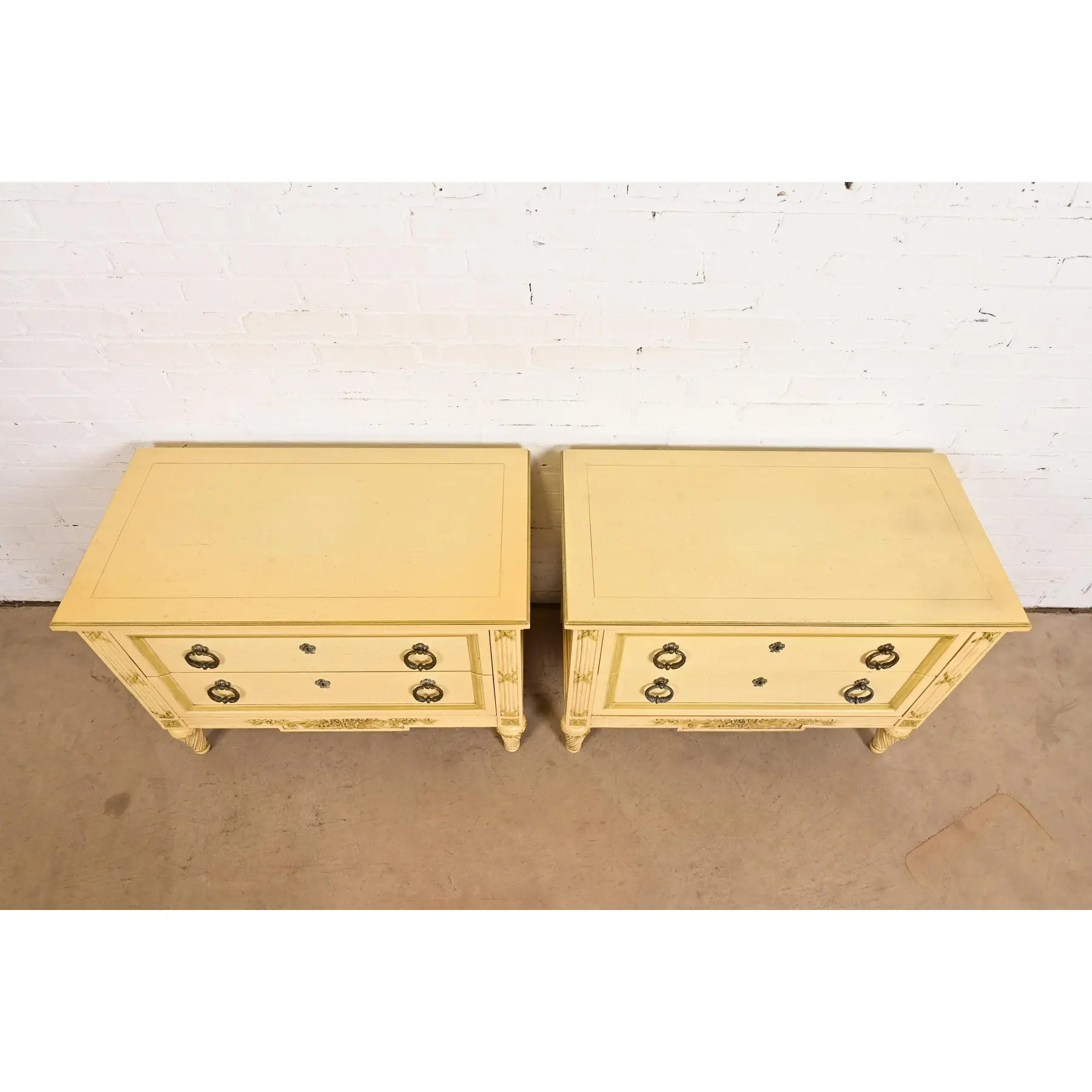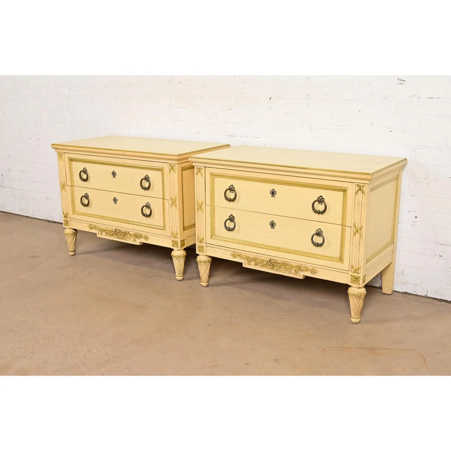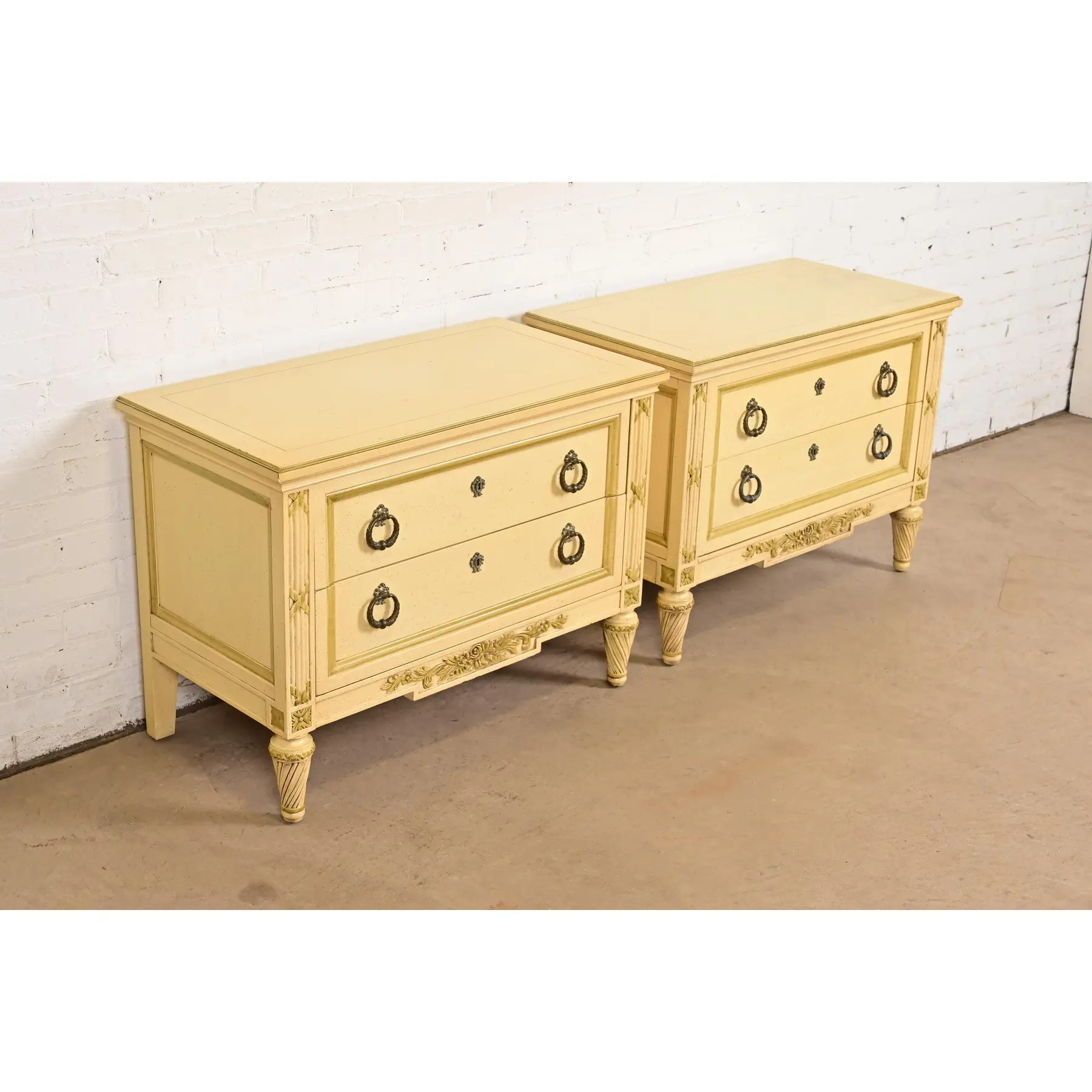 Henredon French Regency Louis XVI Cream Lacquered Bedside Chests, Circa 1960s