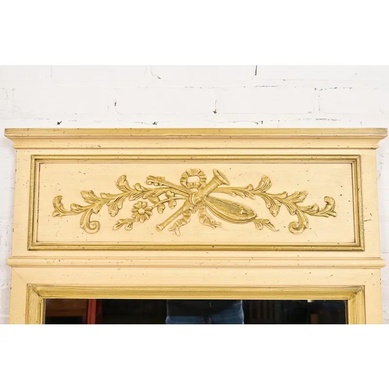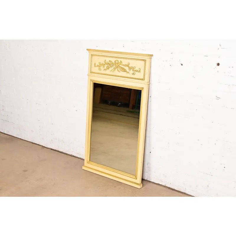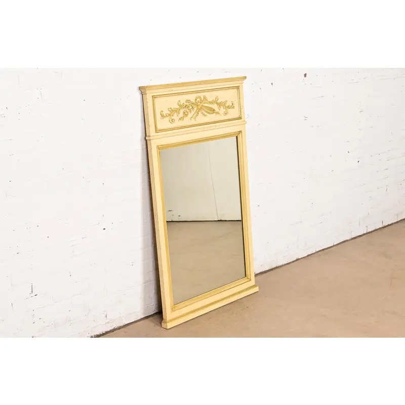 Henredon French Regency Louis XVI Cream Lacquered Tall Wall Mirror, Circa 1960s