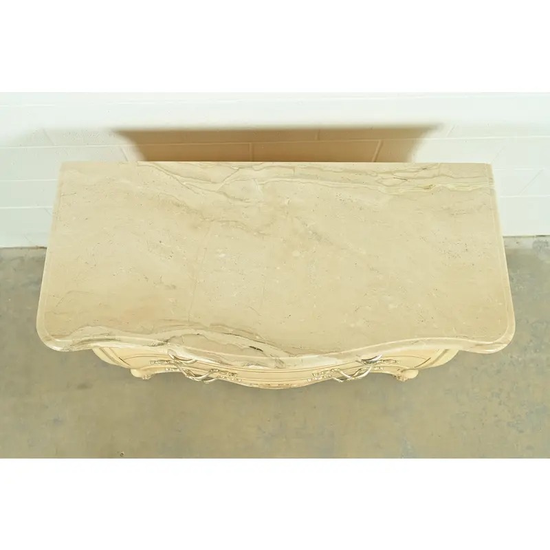 Solid carved white oak, with silver gilt details, and marble top.