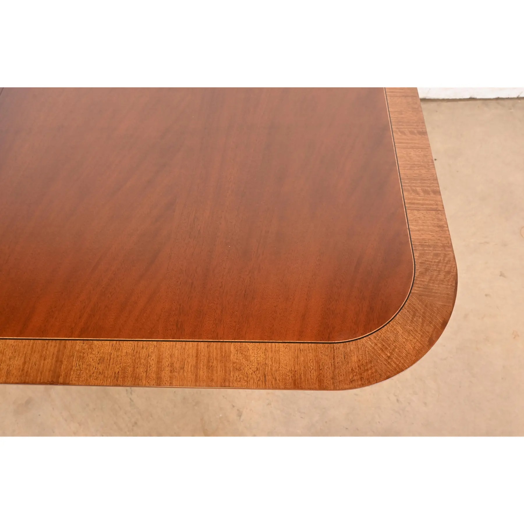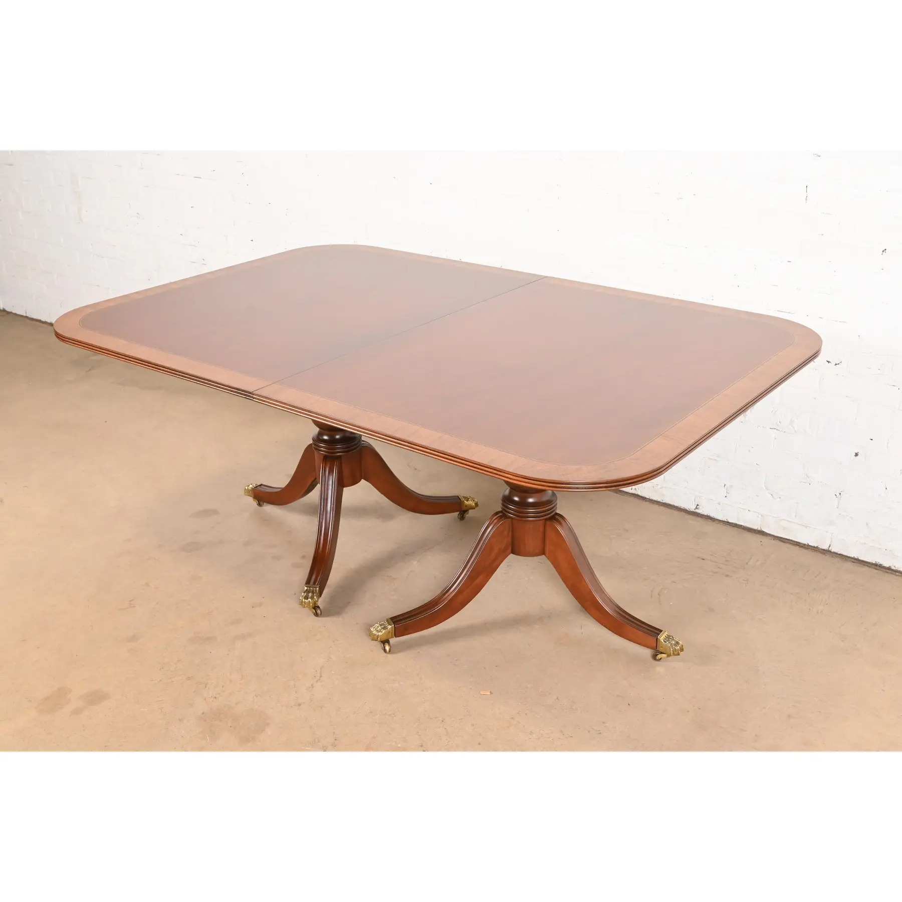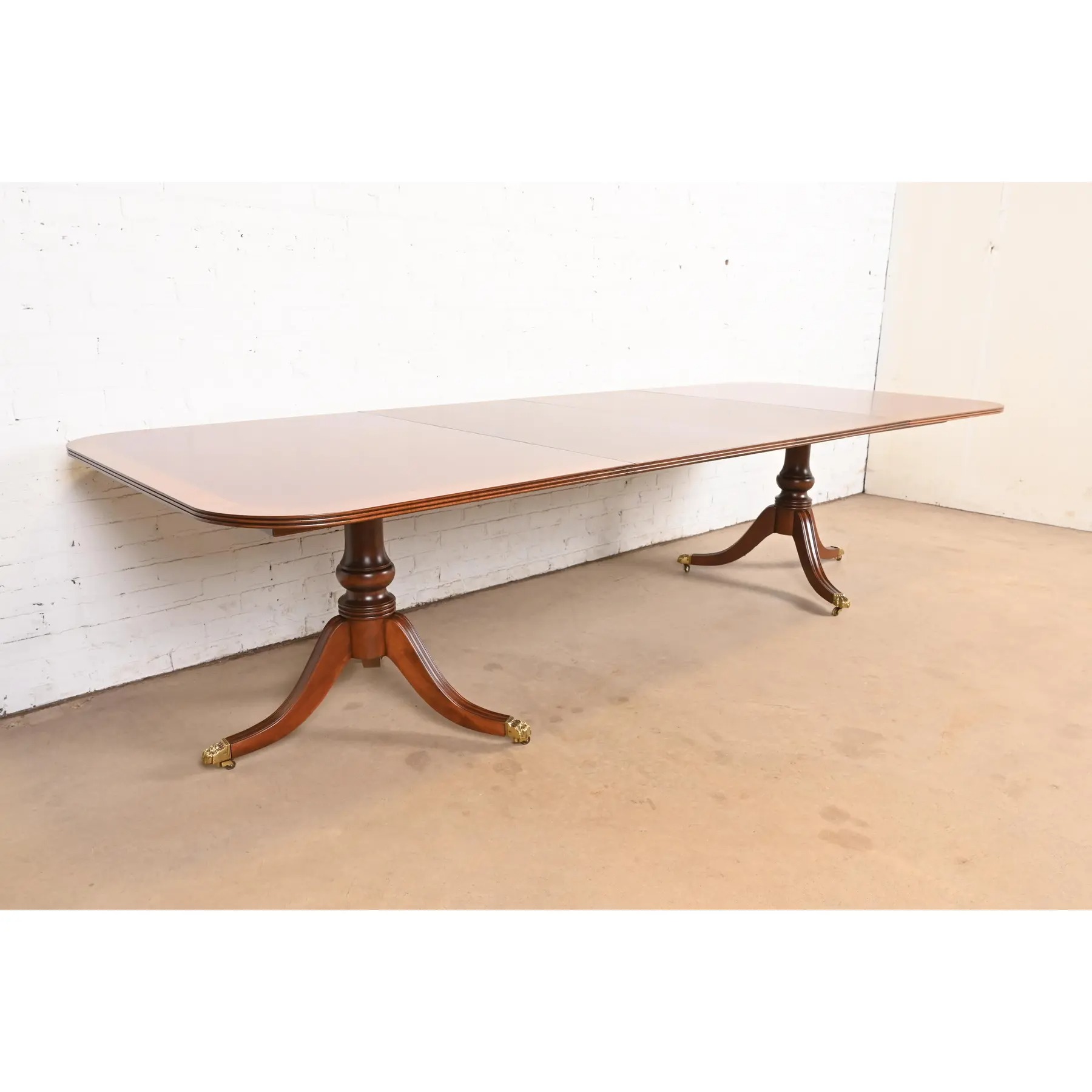 Henredon Georgian Banded Mahogany Double Pedestal Extension Dining Table, Newly Refinished
