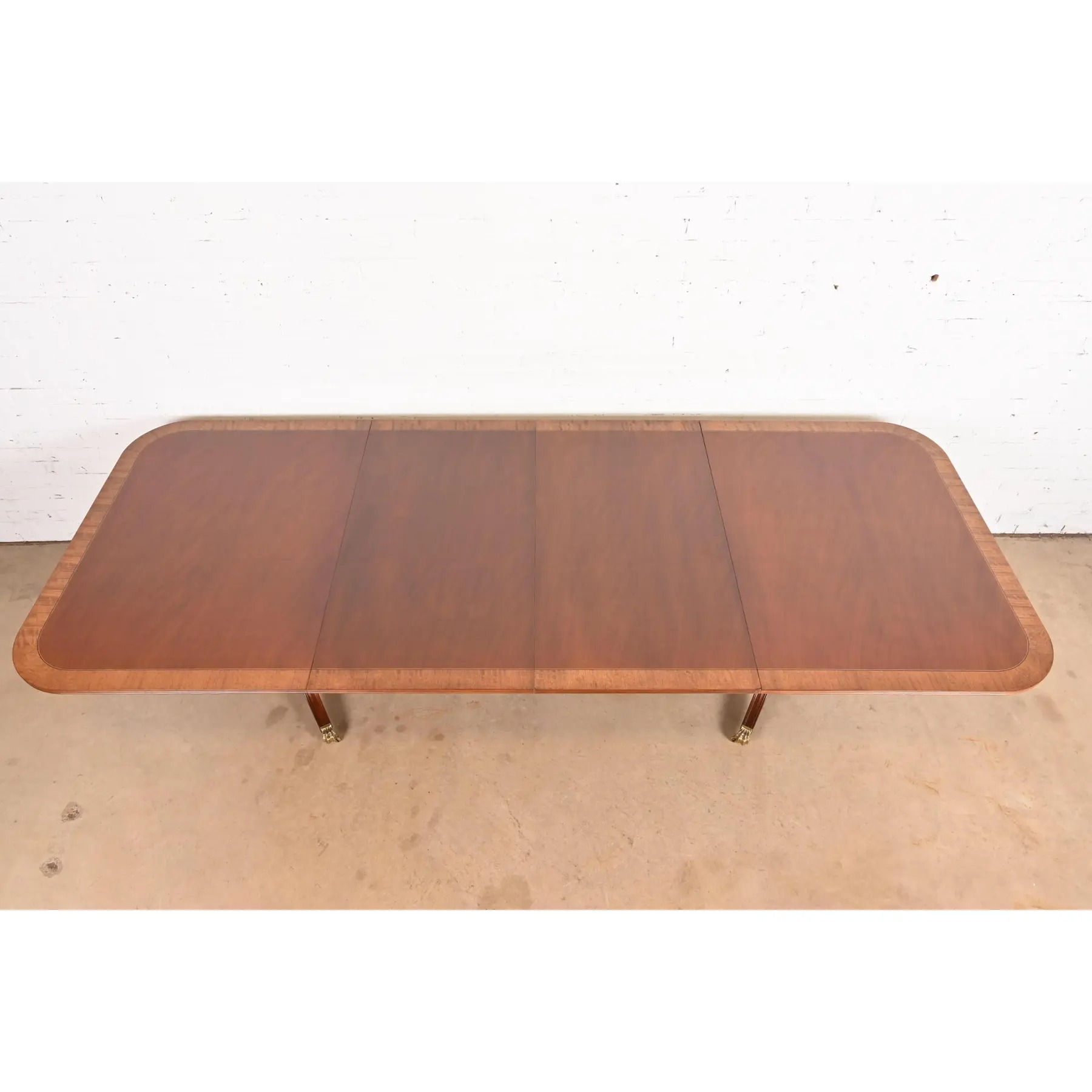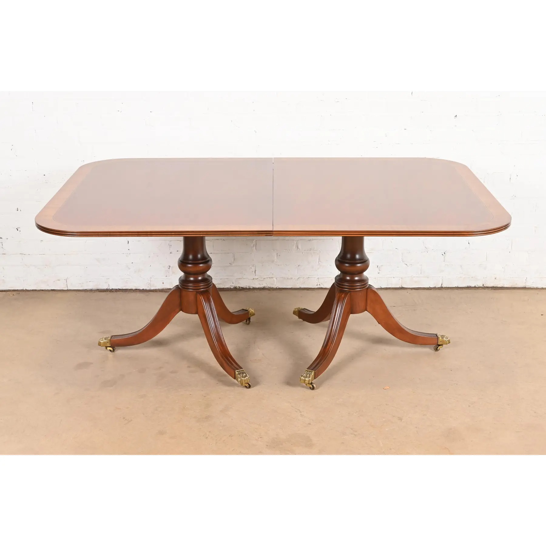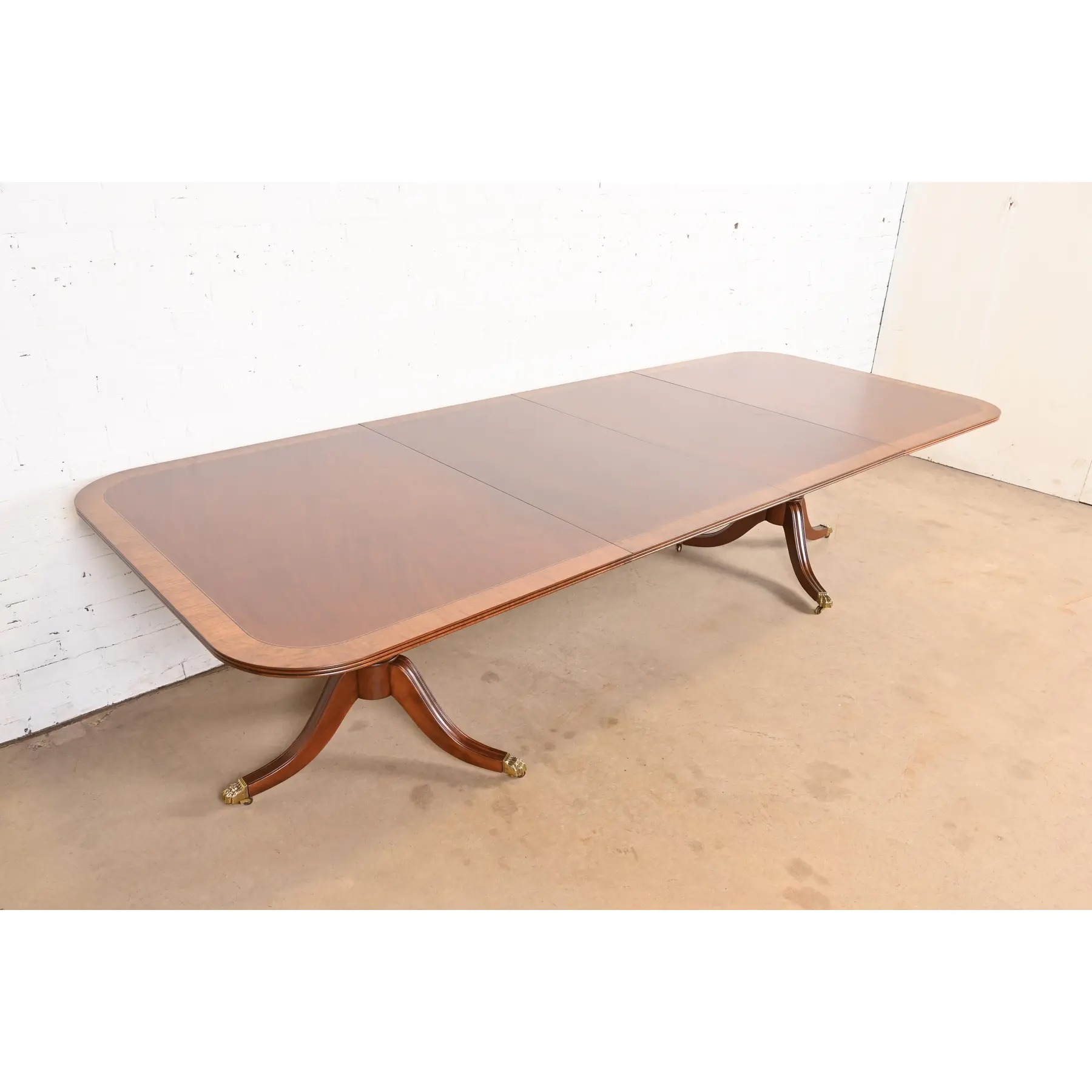 Henredon Georgian Banded Mahogany Double Pedestal Extension Dining Table, Newly Refinished