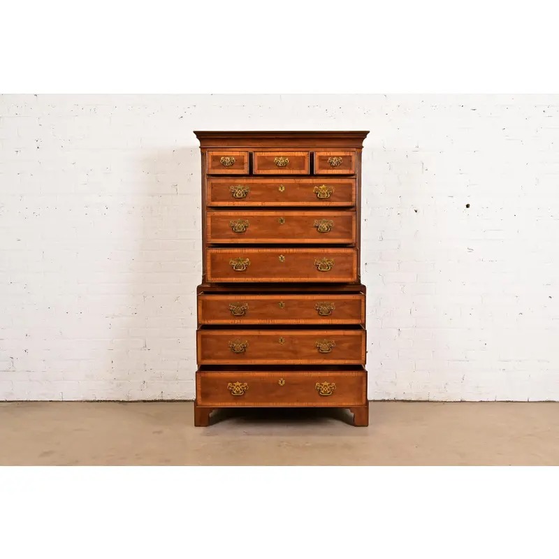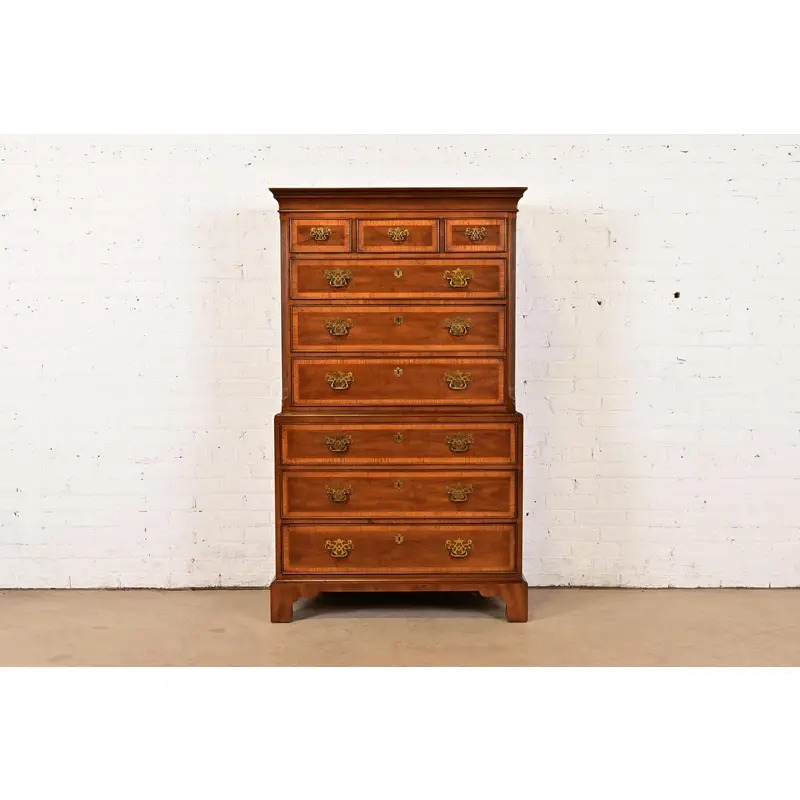 An exceptional Georgian or Chippendale style nine-drawer highboy dresser