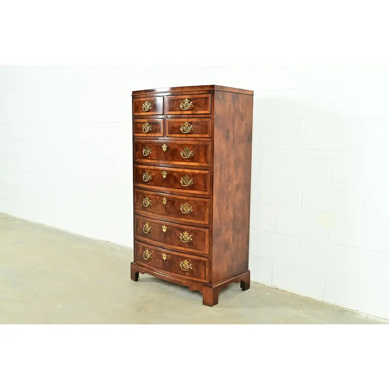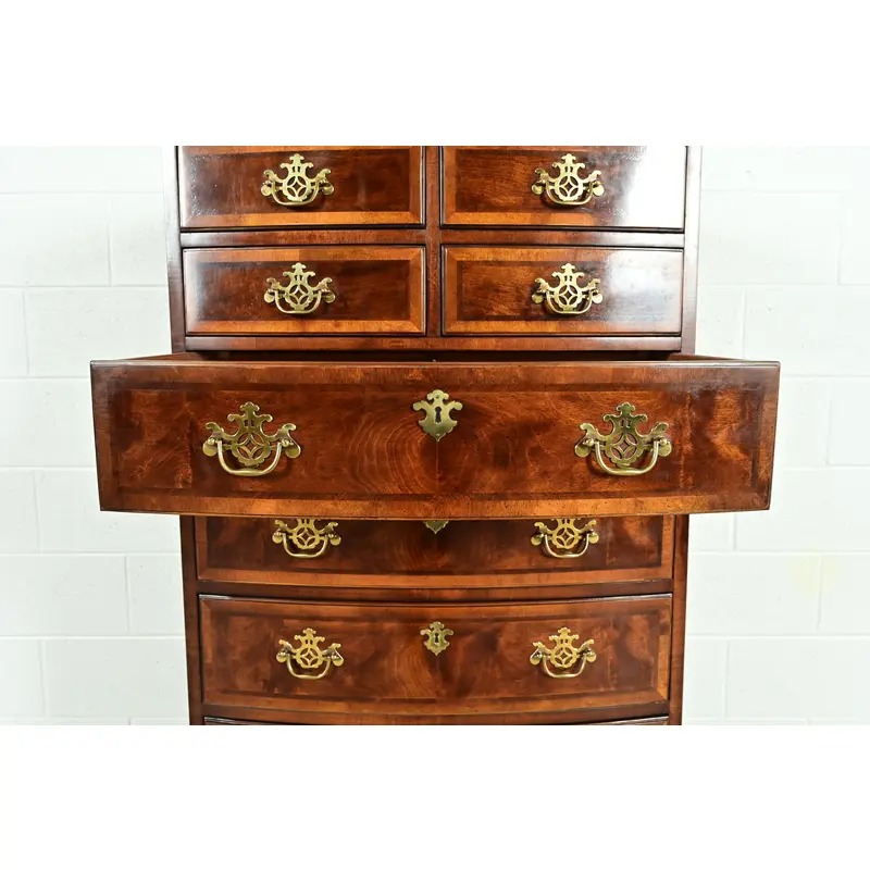 An exceptional Georgian or Chippendale style nine-drawer bow front highboy dresser