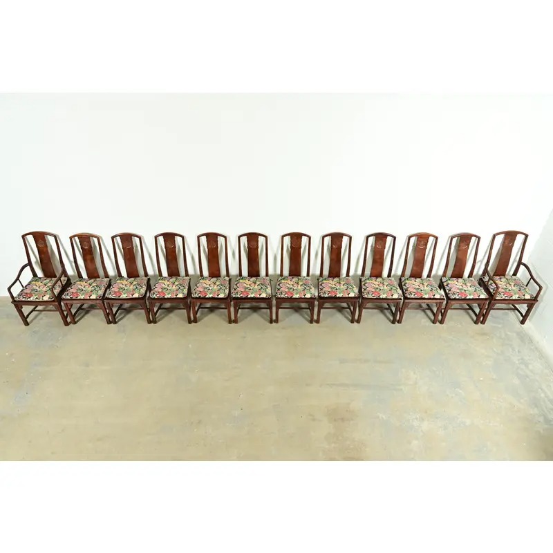 A gorgeous set of twelve mid-century modern Hollywood Regency Chinoiserie dining chairs