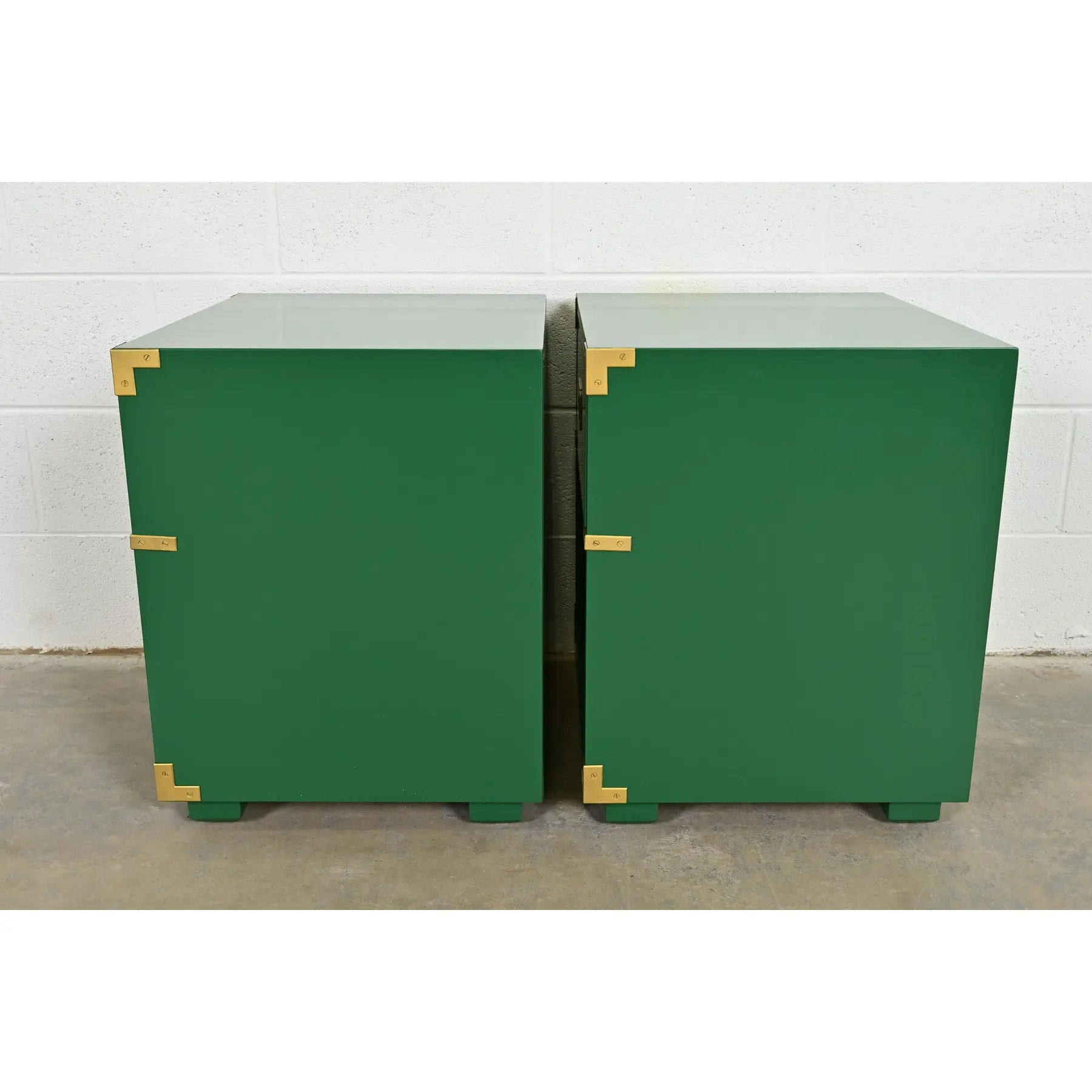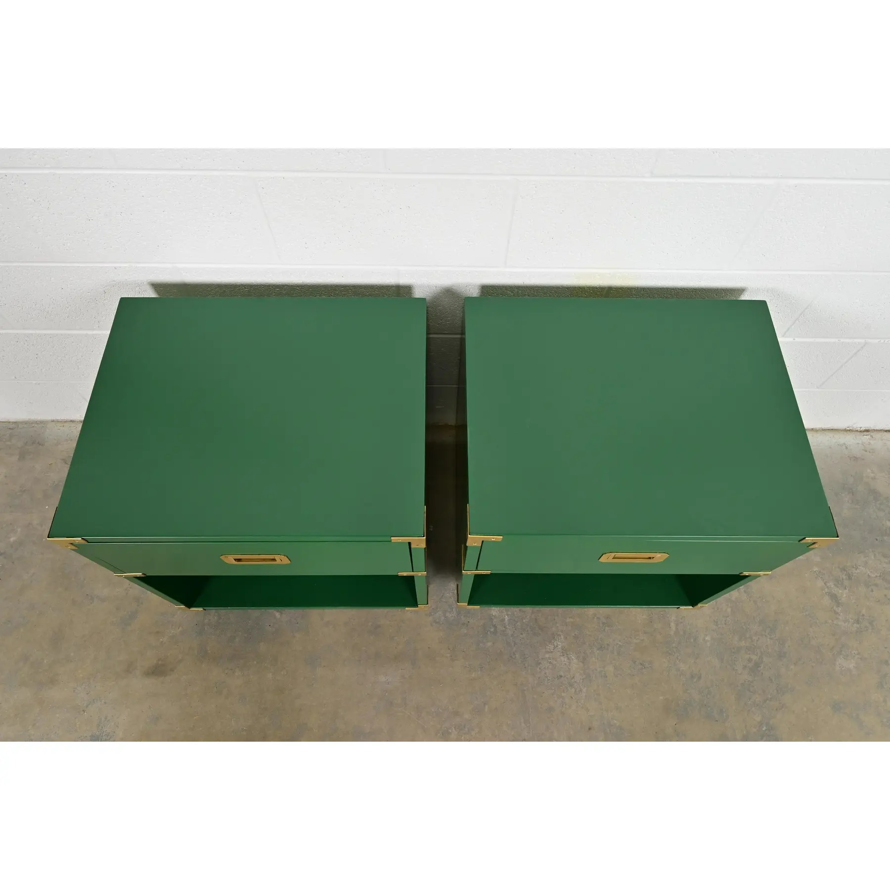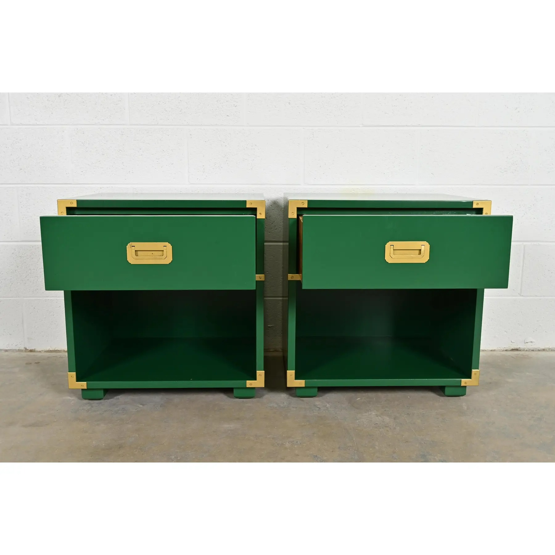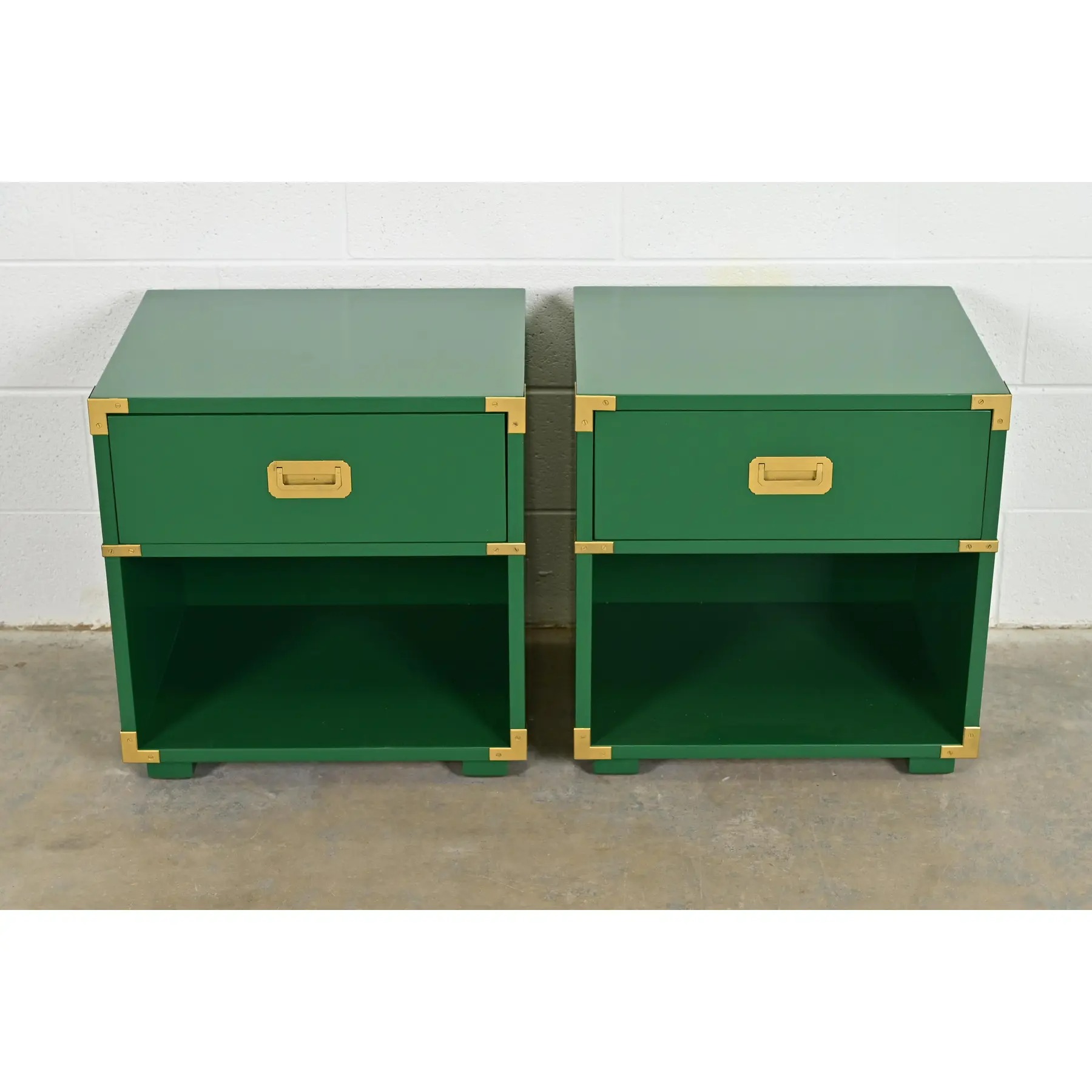 A gorgeous pair of mid-century modern Hollywood Regency Campaign style nightstands