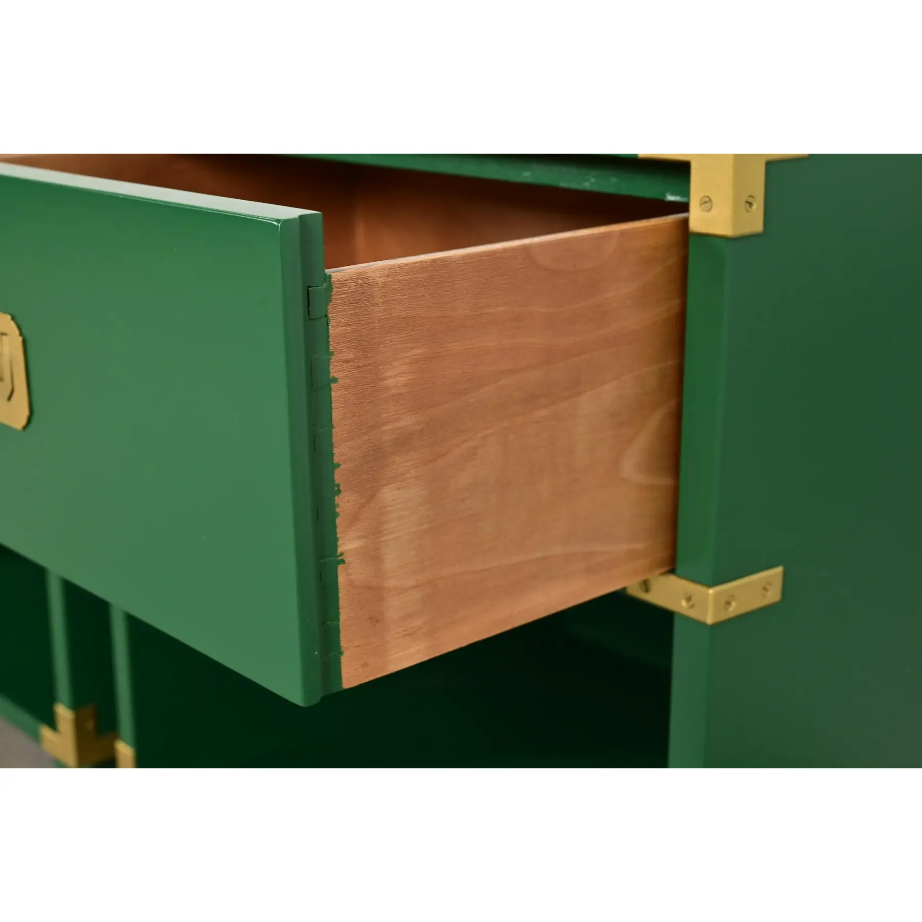Green lacquered oak, with original brass hardware.