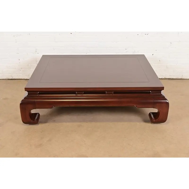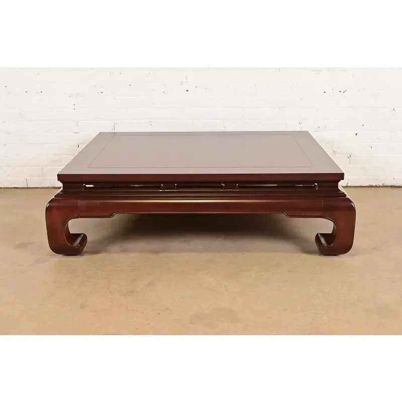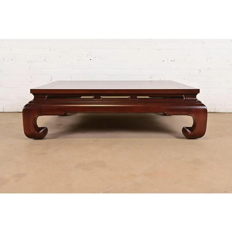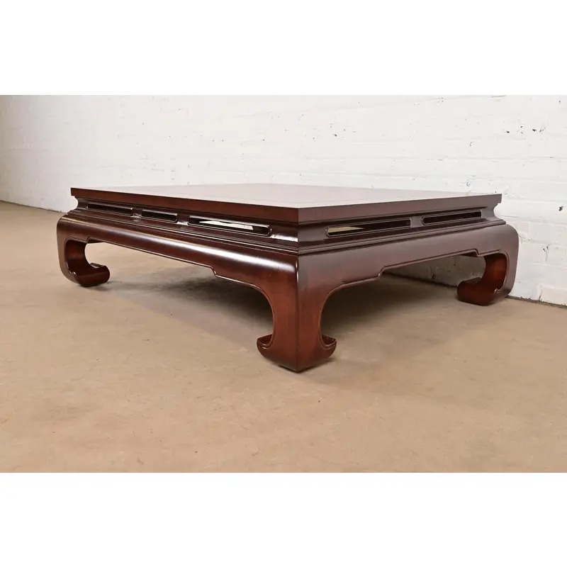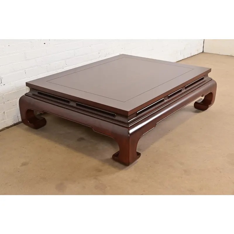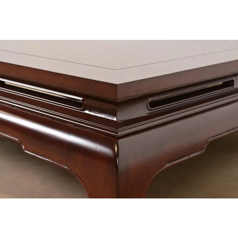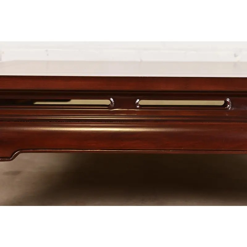 An exceptional mid-century modern Hollywood Regency Chinoiserie carved mahogany coffee table or cocktail table