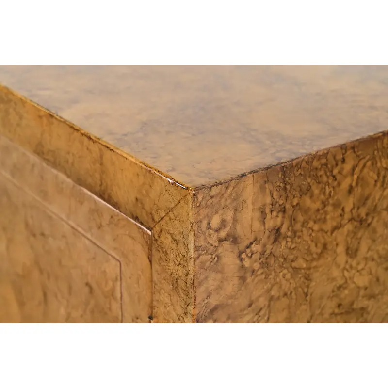 Walnut in faux tortoise shell finish, with original brass hardware.