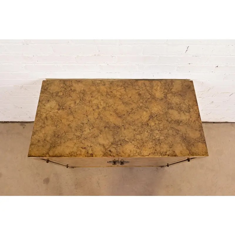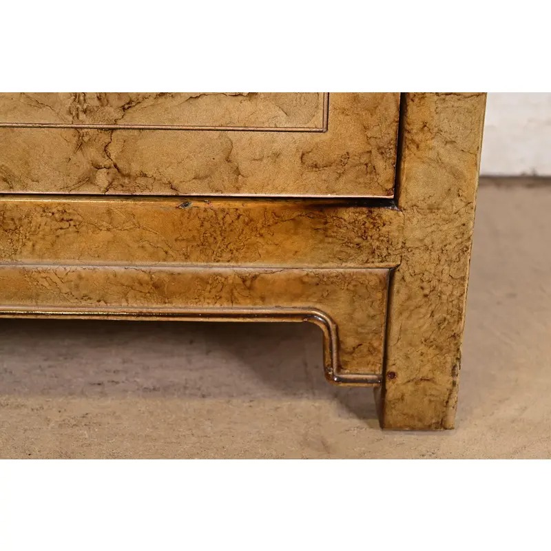 Henredon Mid-Century Hollywood Regency Chinoiserie Faux Tortoise Shell Bar Cabinet, Circa 1970s
