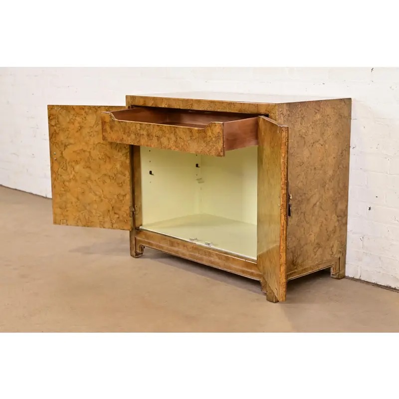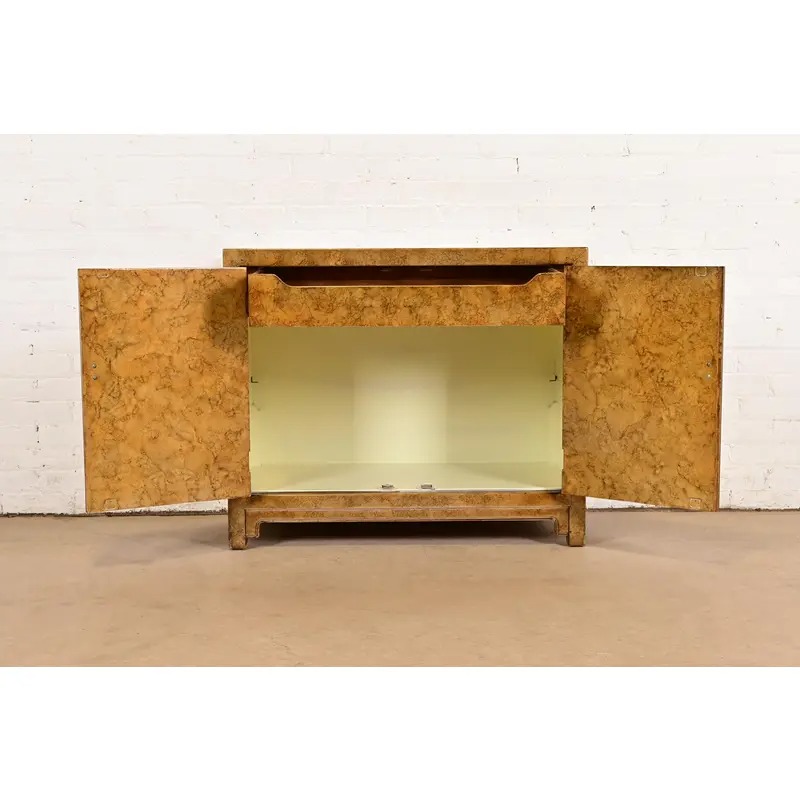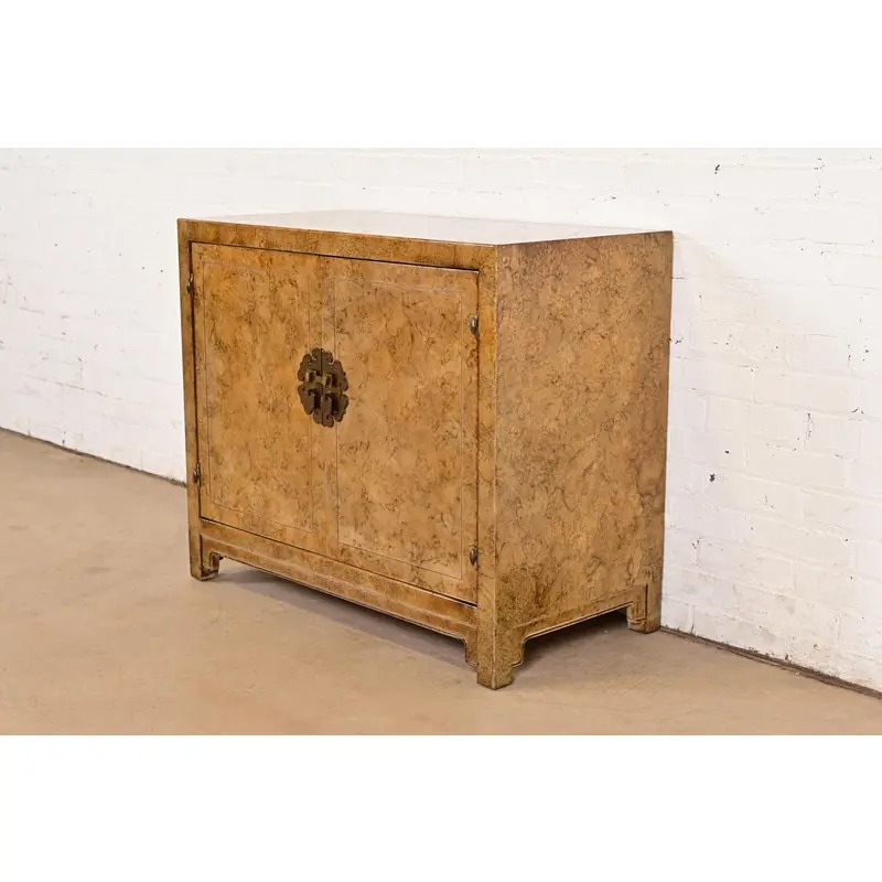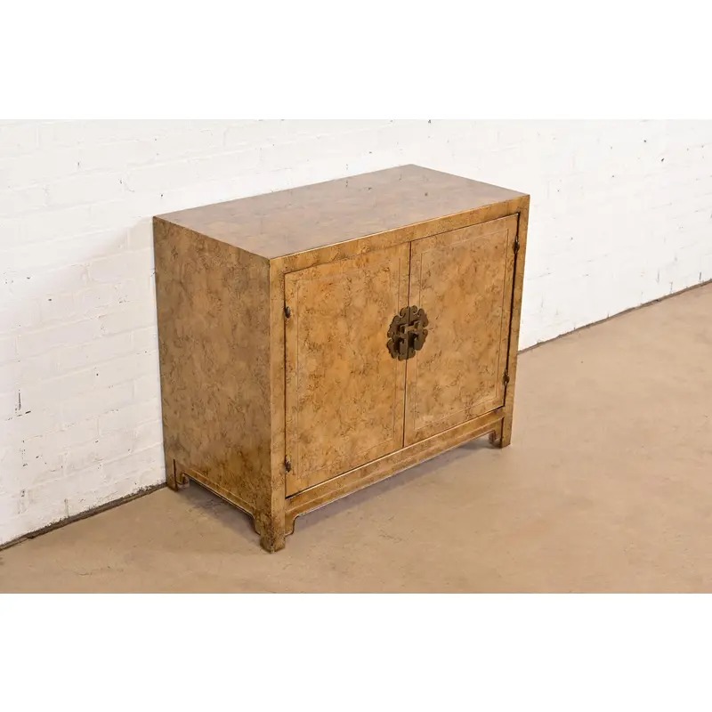 A gorgeous mid-century modern Hollywood Regency Chinoiserie console or bar cabinet