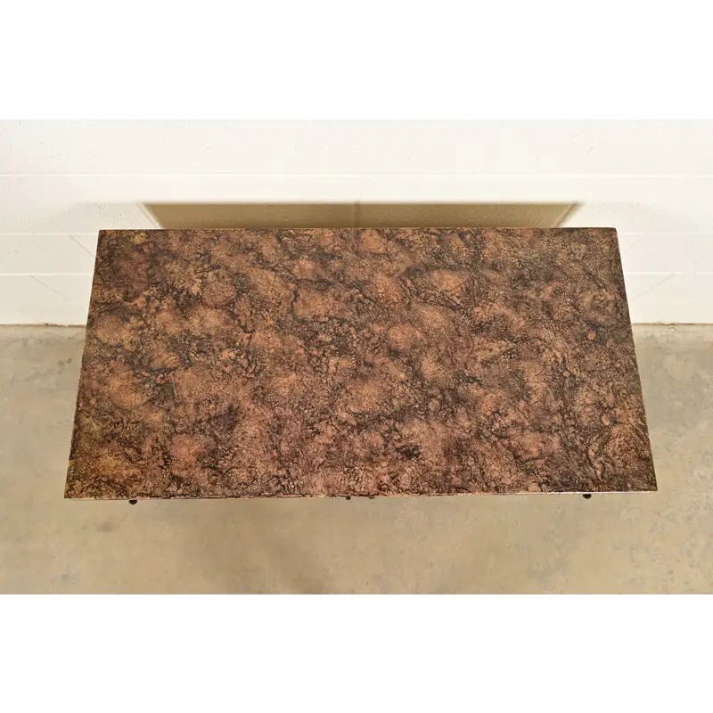 Walnut in faux tortoise shell finish, with original brass hardware.