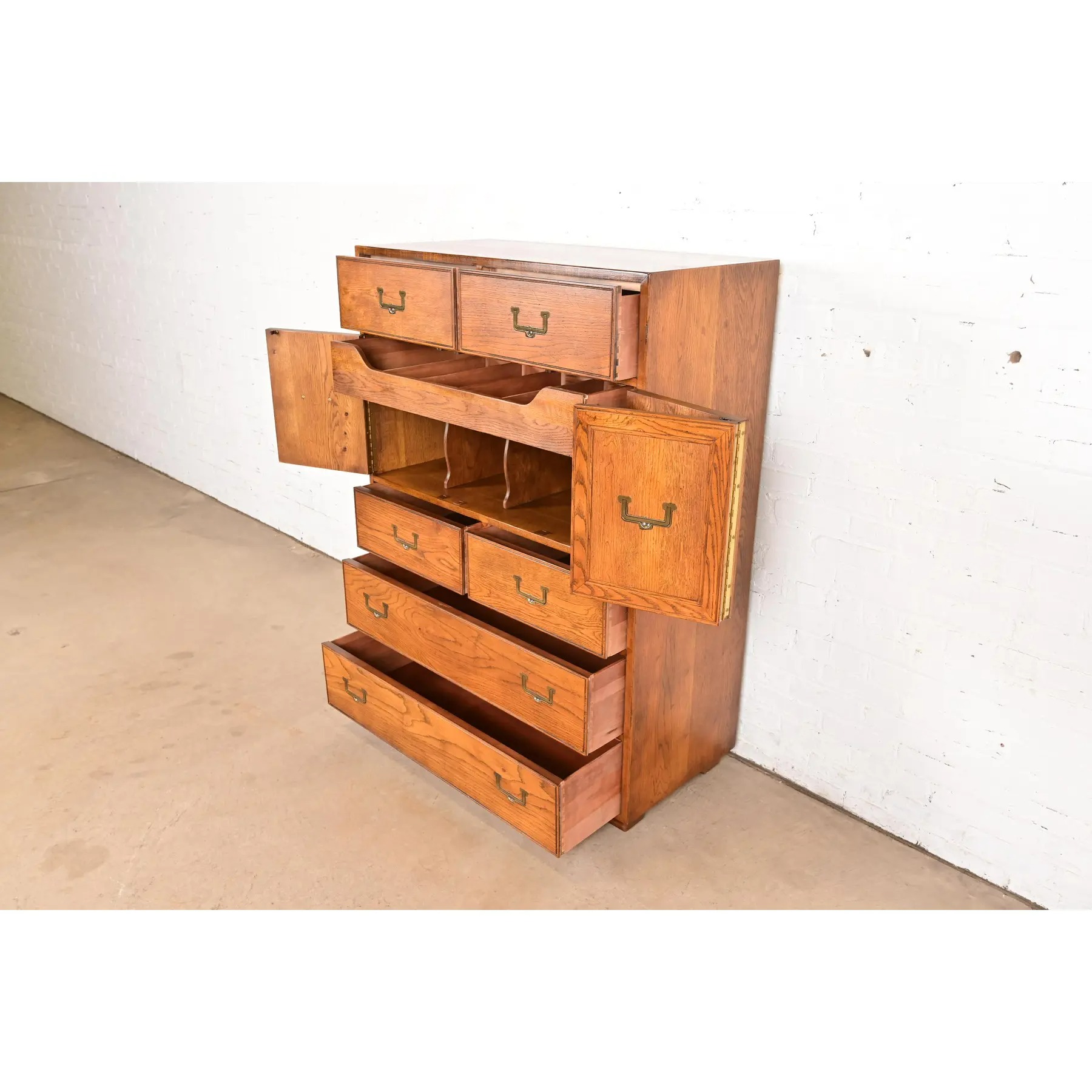 Henredon Mid-Century Modern Campaign Oak Gentleman’s Chest, Circa 1970s