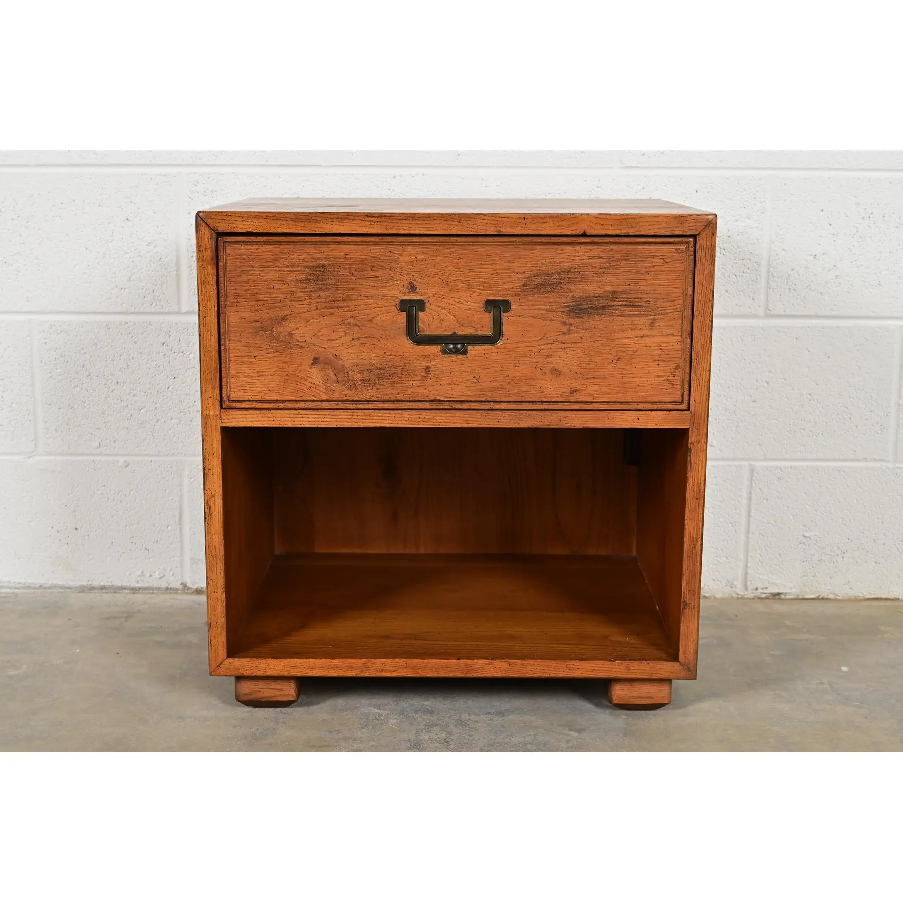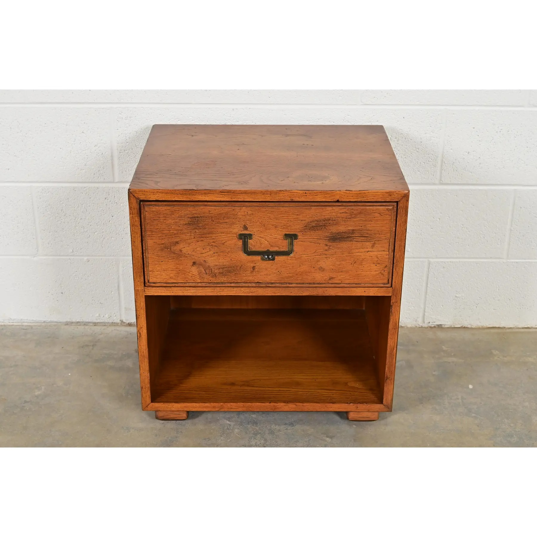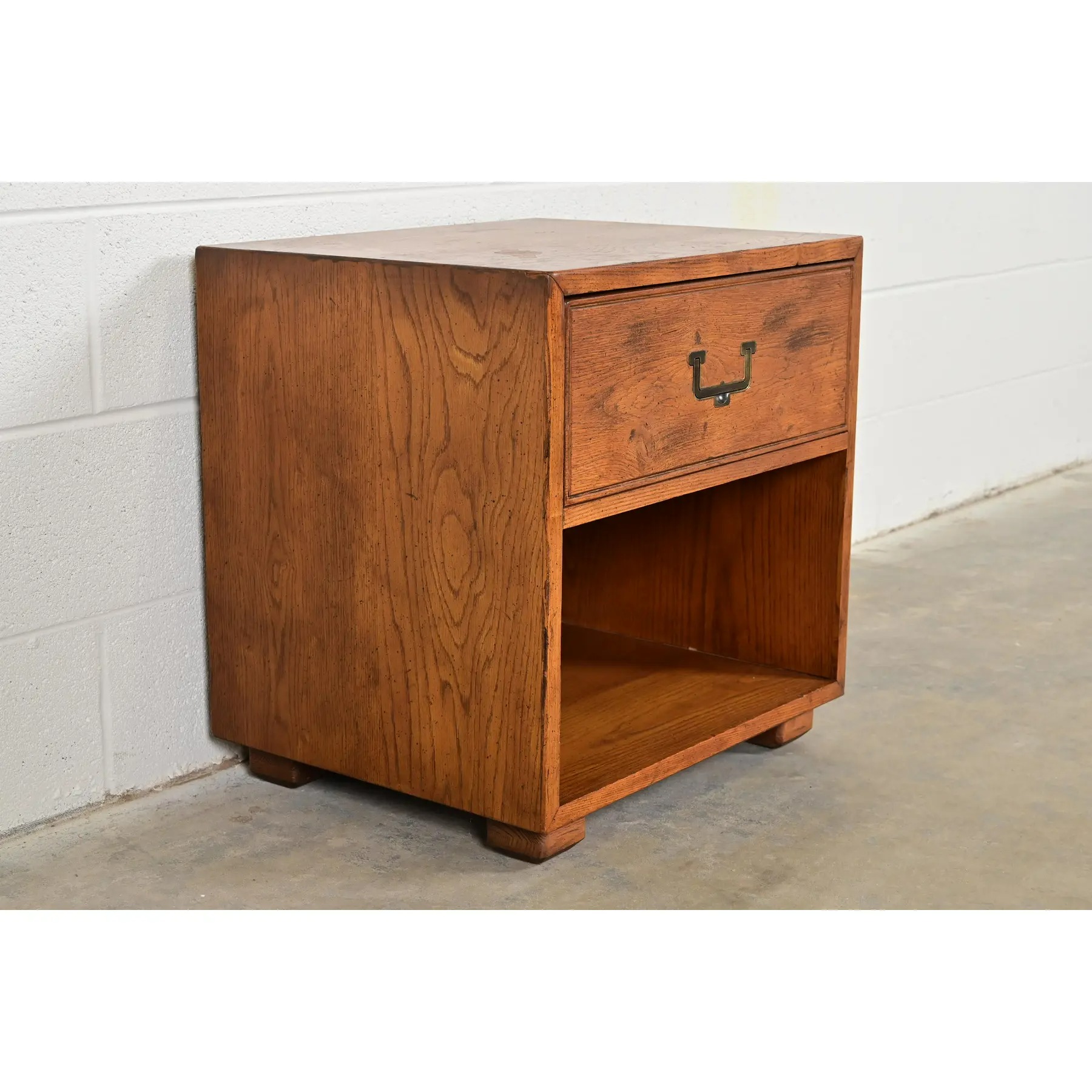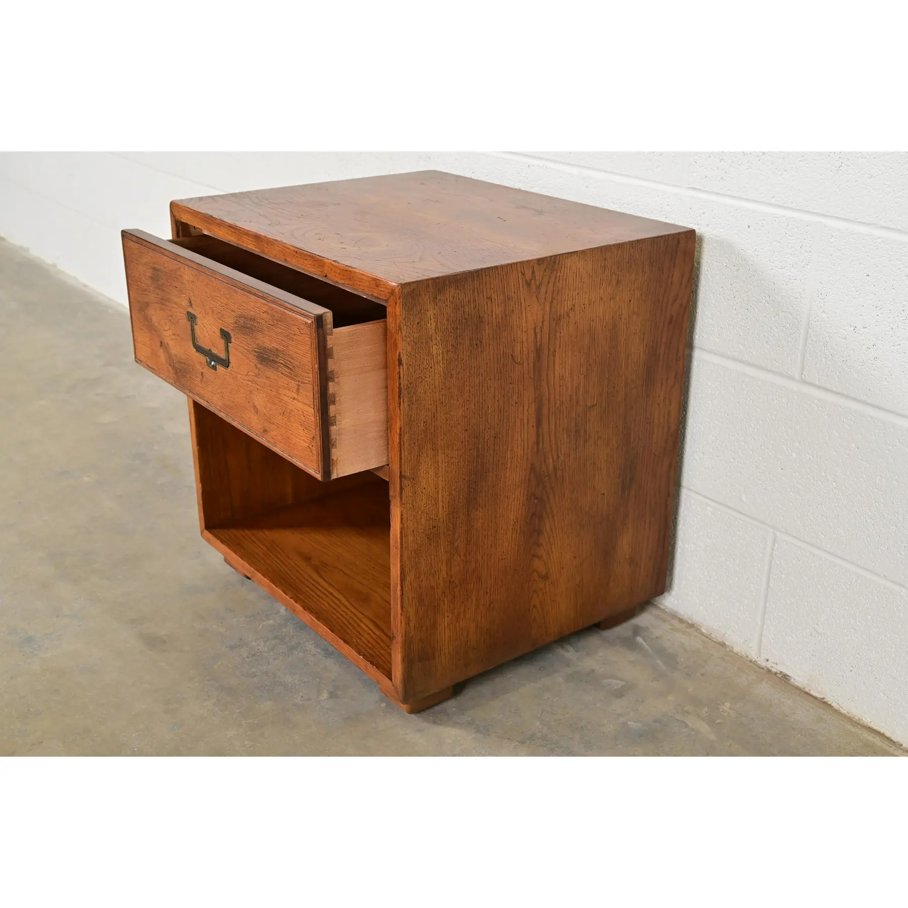 Henredon Mid-Century Modern Campaign Oak Nightstand, Circa 1970s