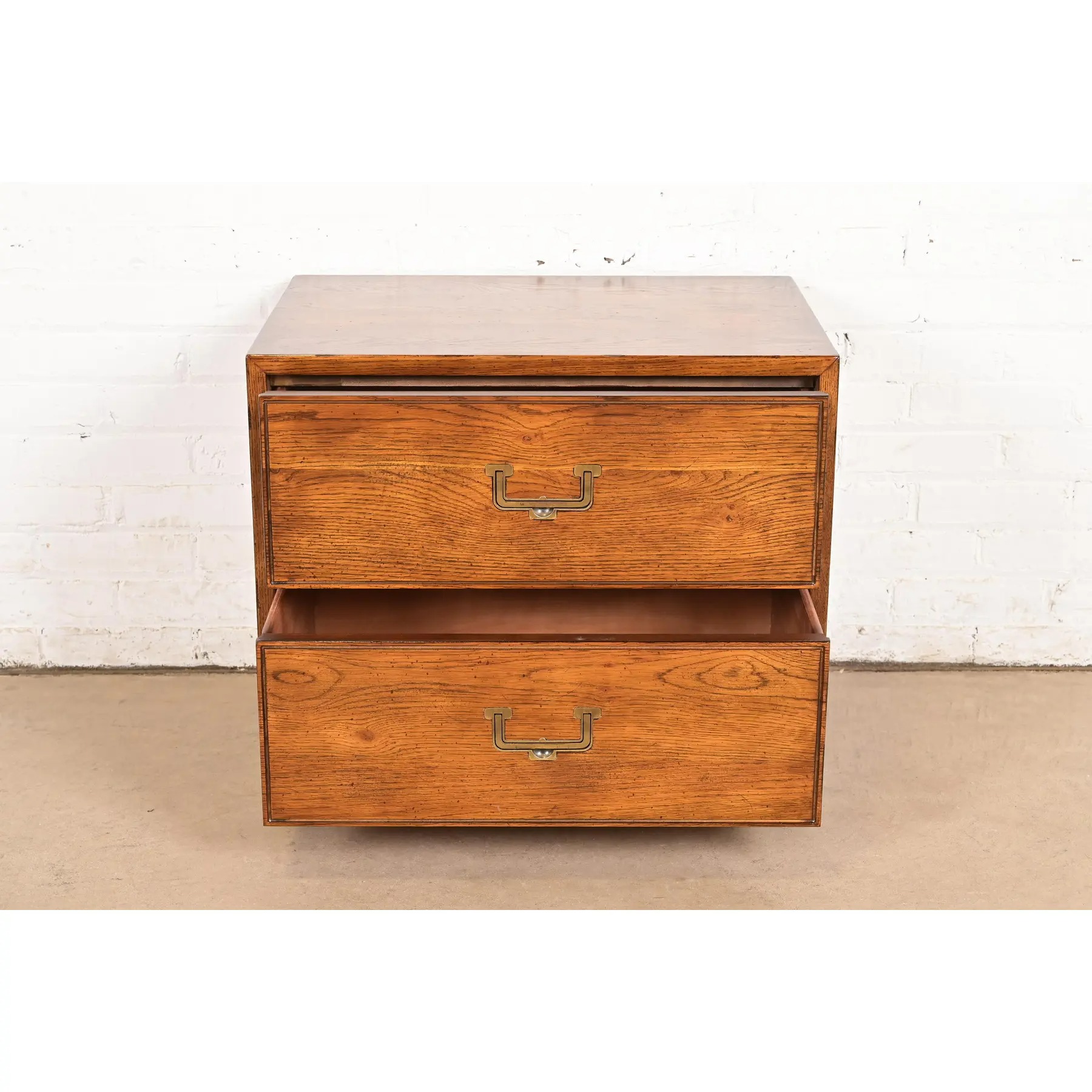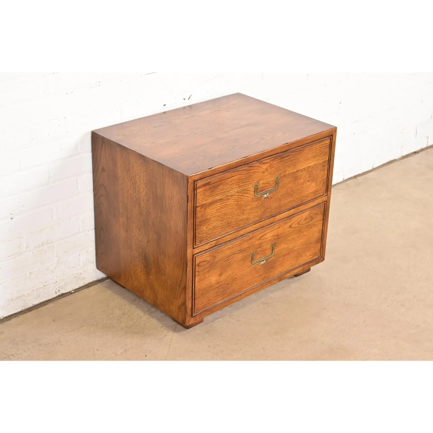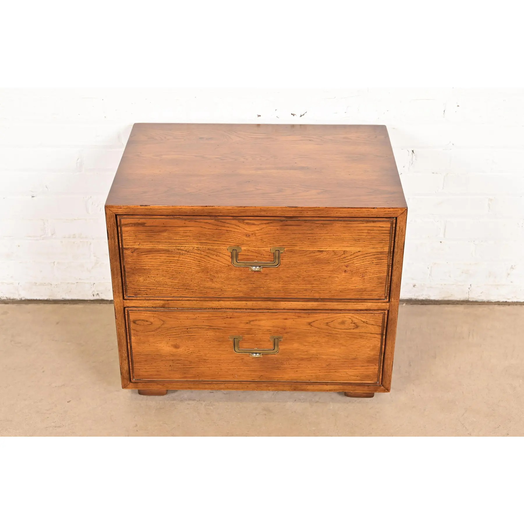 A gorgeous Mid-Century Modern Campaign style nightstand or end table