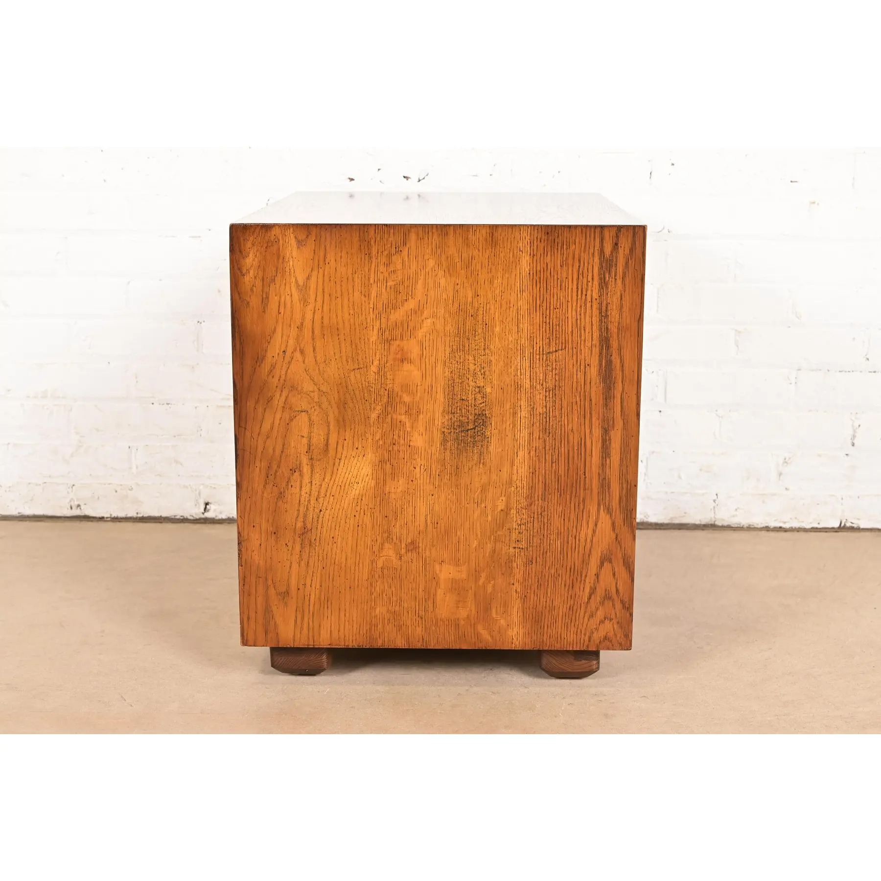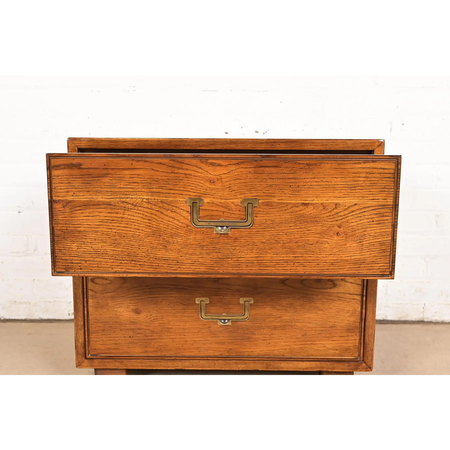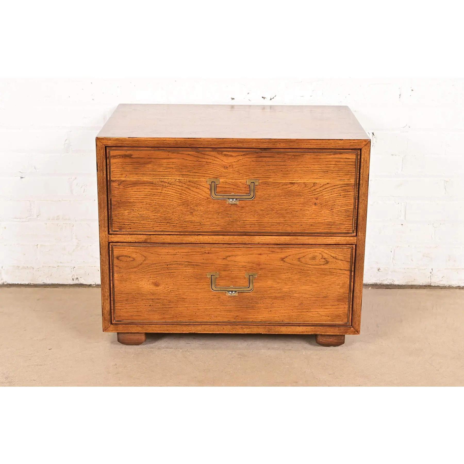 A gorgeous Mid-Century Modern Campaign style nightstand or end table