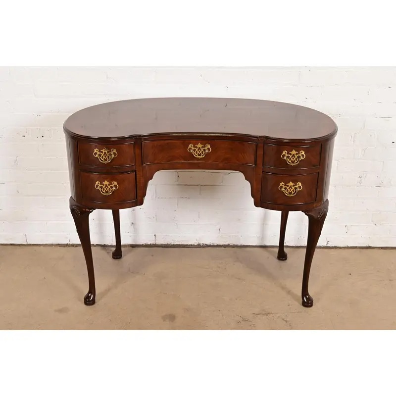 Henredon Queen Anne Mahogany Kidney Shaped Desk or Vanity