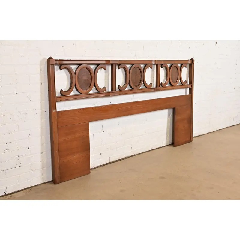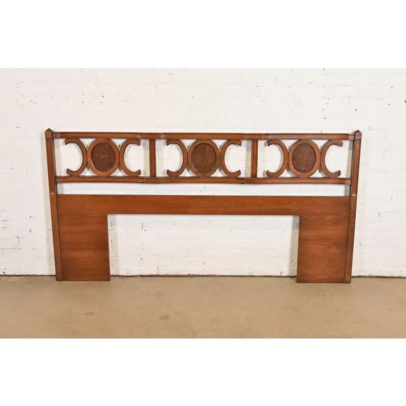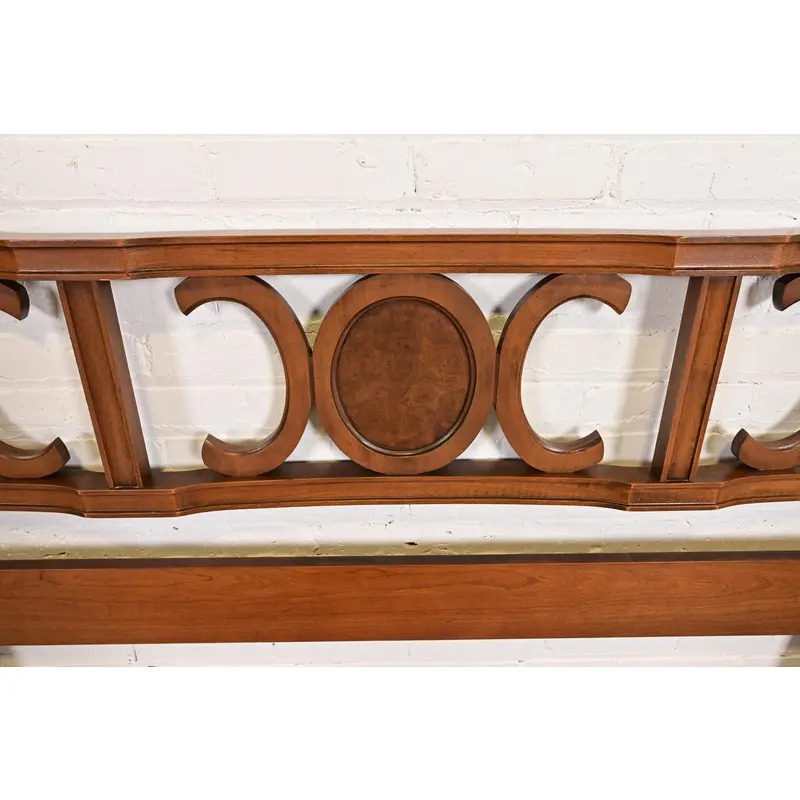 Henredon Style Mid-Century Hollywood Regency Cherry and Burl Wood King Size Headboard, 1960s