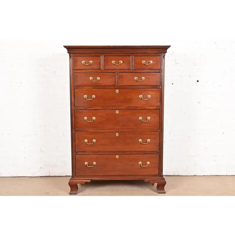 An exceptional Georgian or Chippendale style nine-drawer highboy dresser or chest of drawers