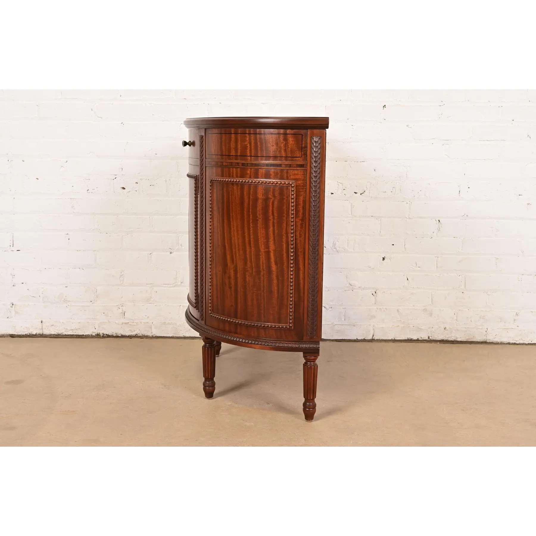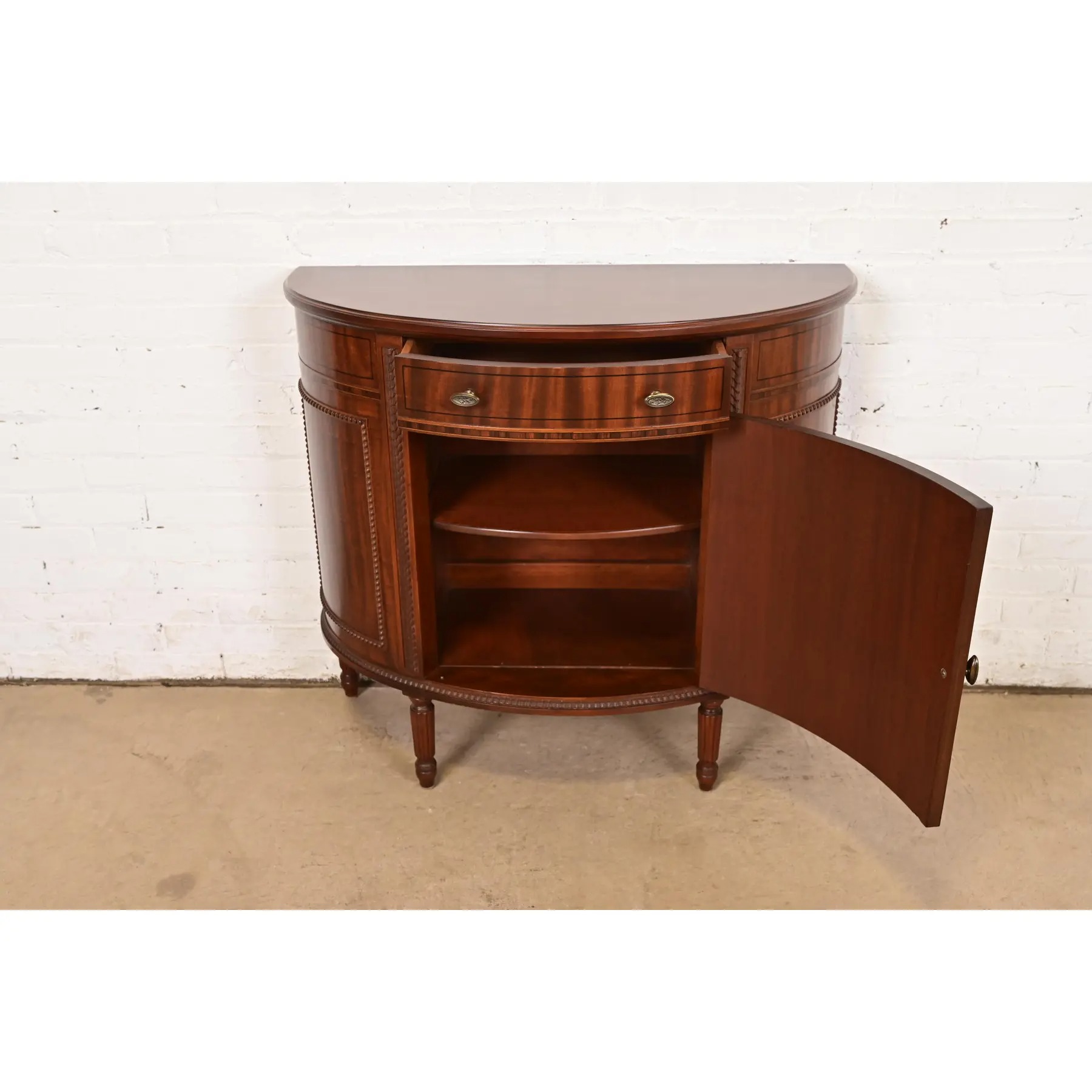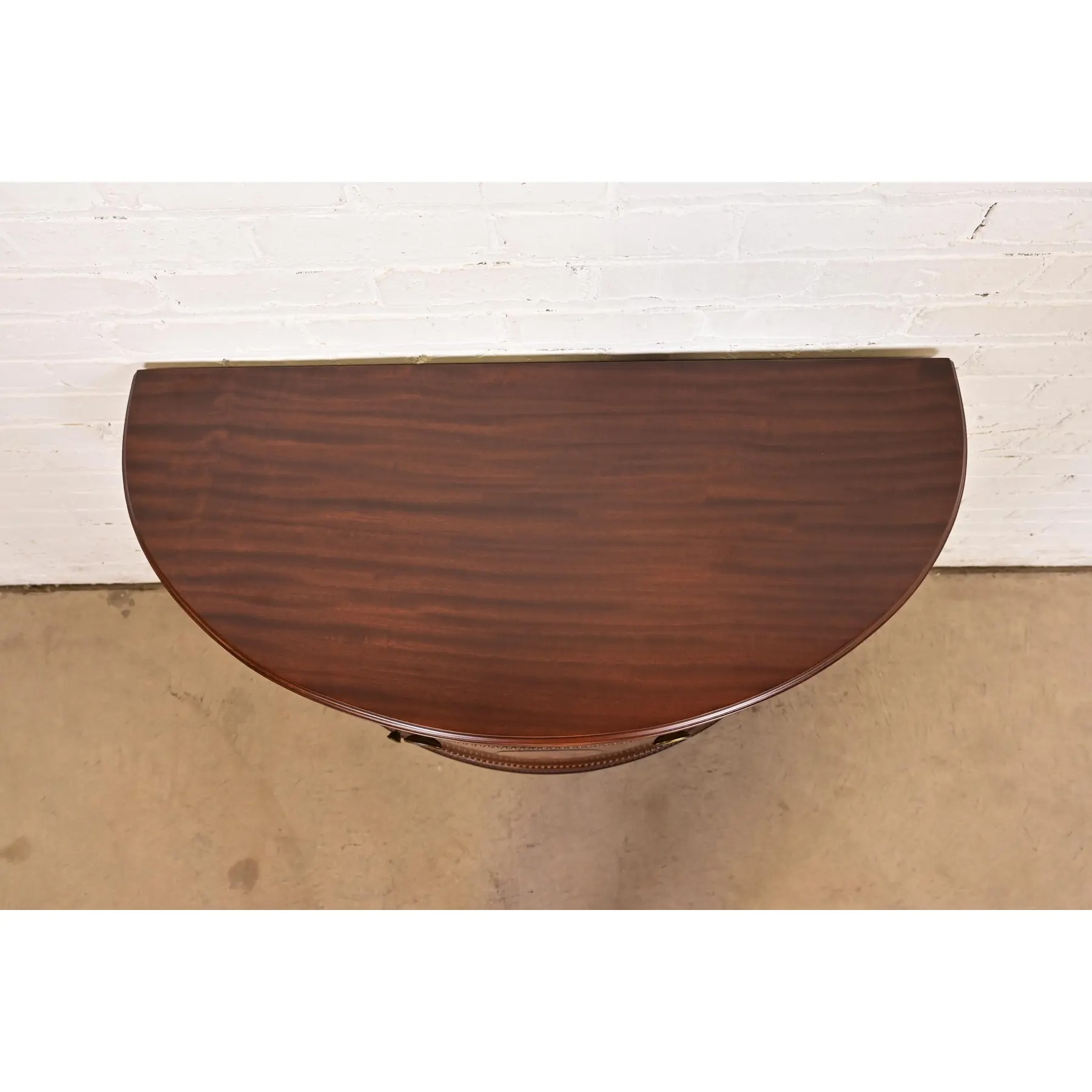 An exceptional French Regency Louis XVI style demilune cabinet or console table