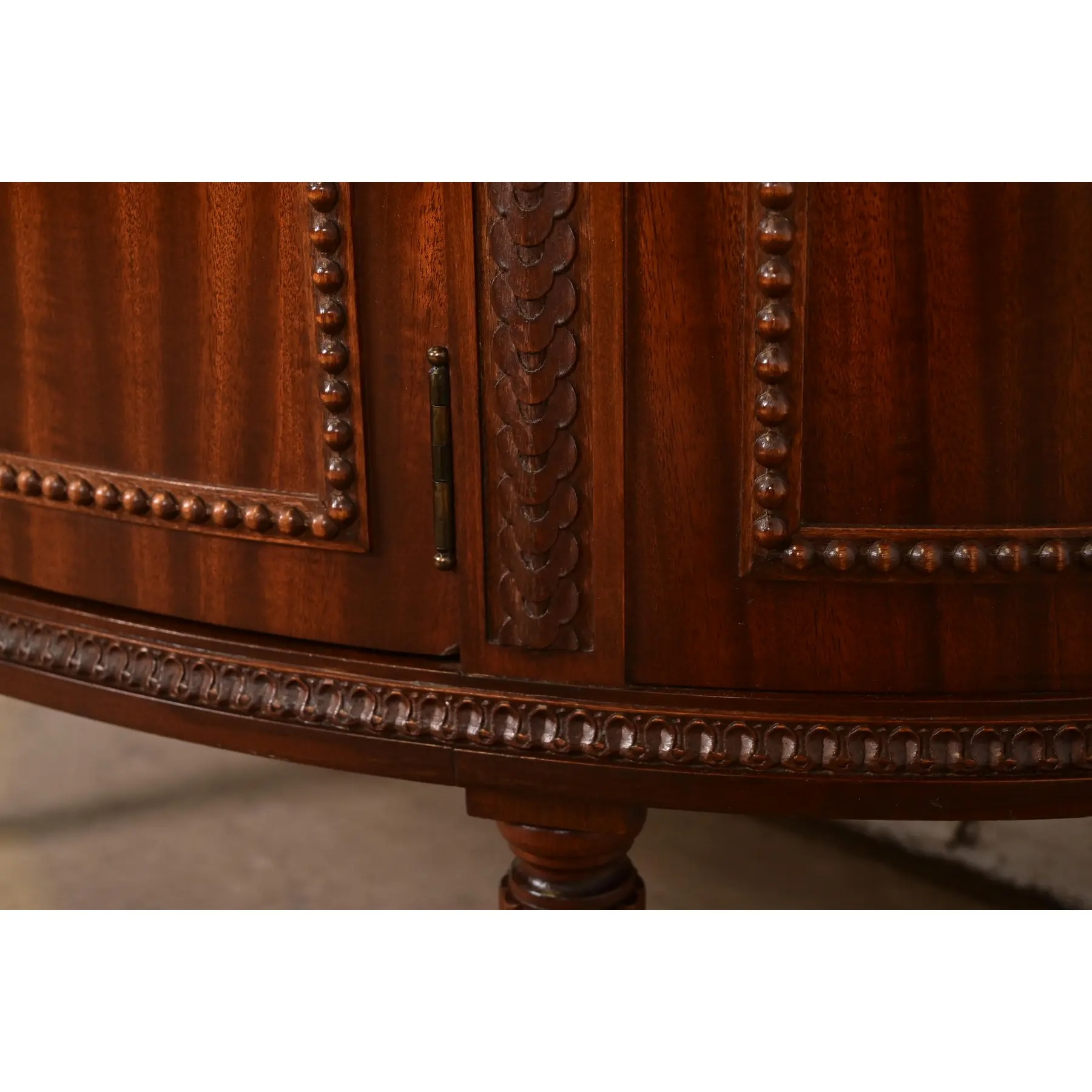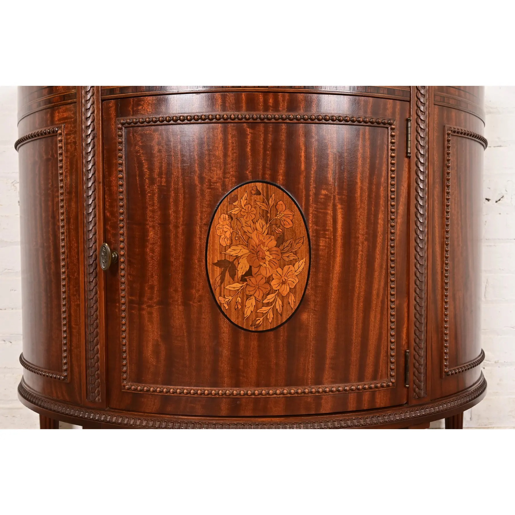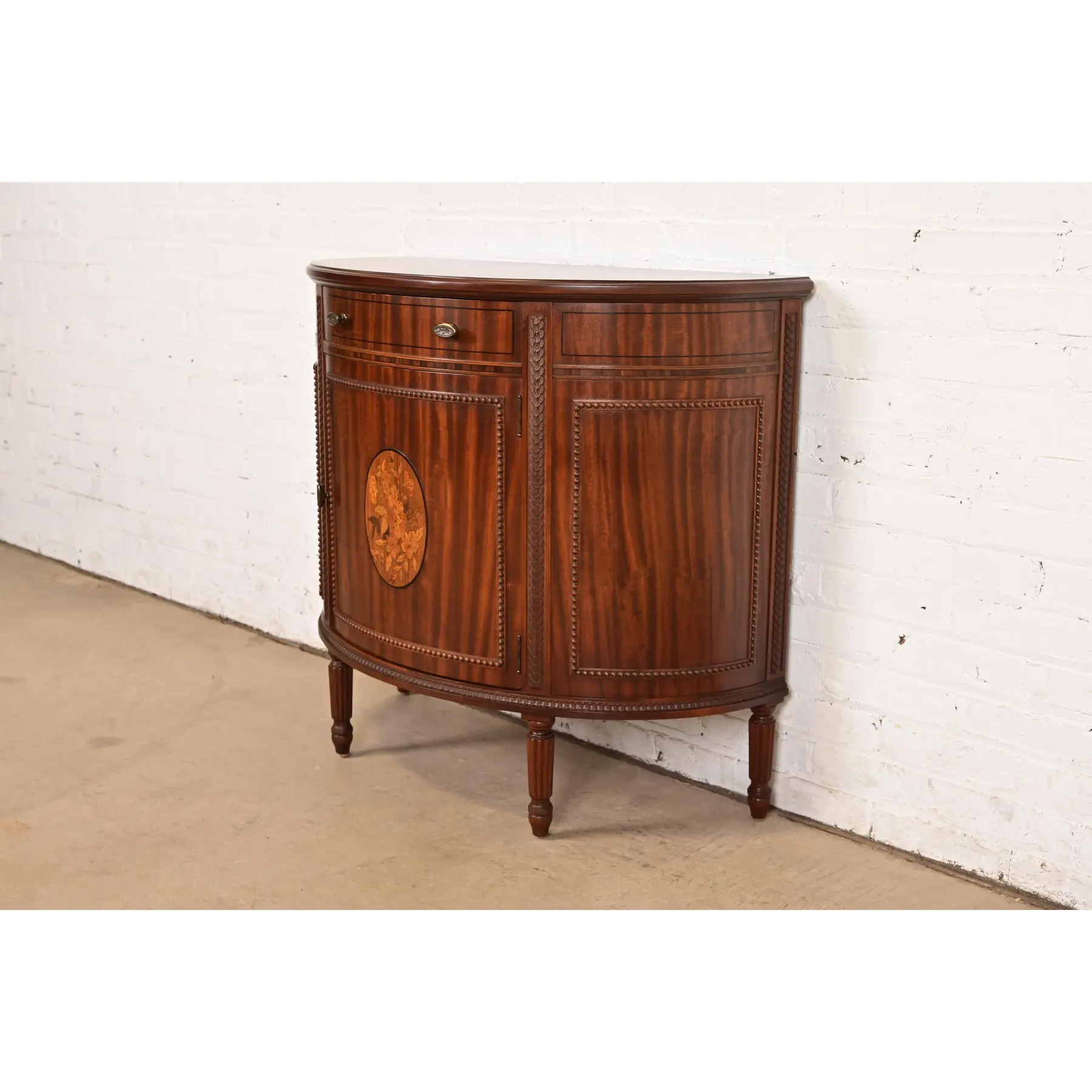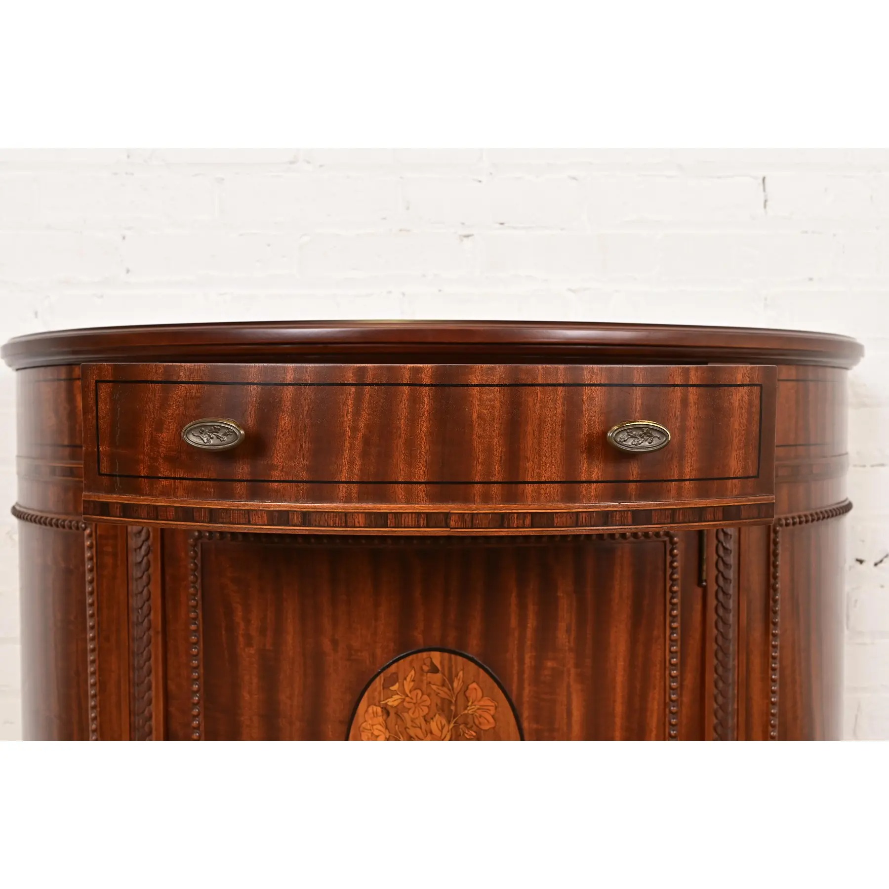Stunning mahogany, with inlaid satinwood marquetry, and original brass hardware.