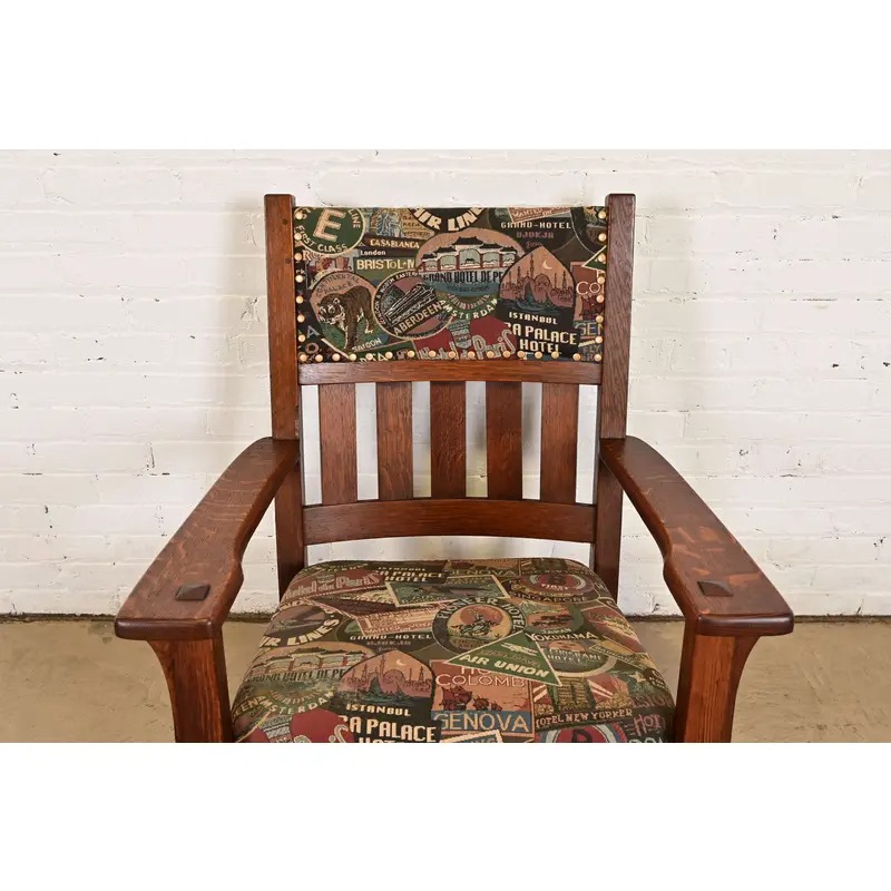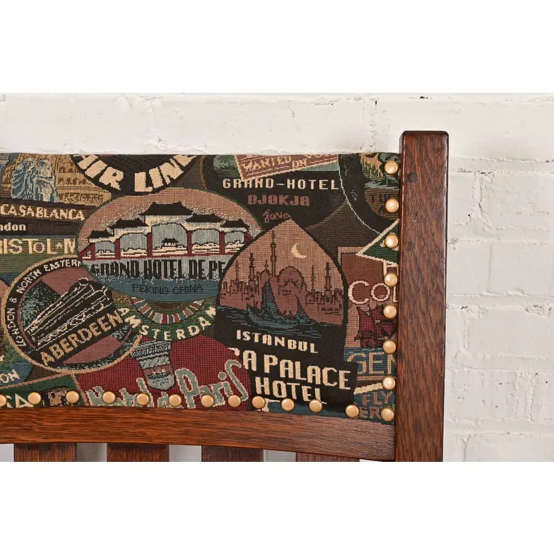 Solid quarter sawn oak, with custom upholstered seat and back.