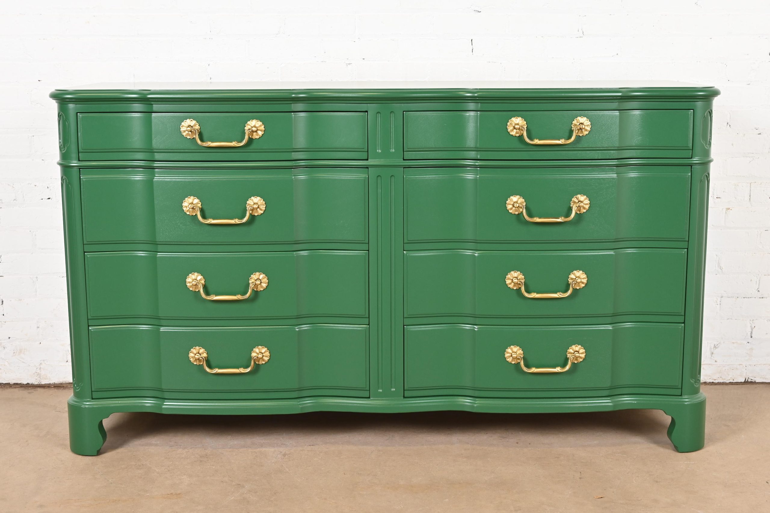 An exceptional Georgian or Regency style eight-drawer double dresser or chest of drawers